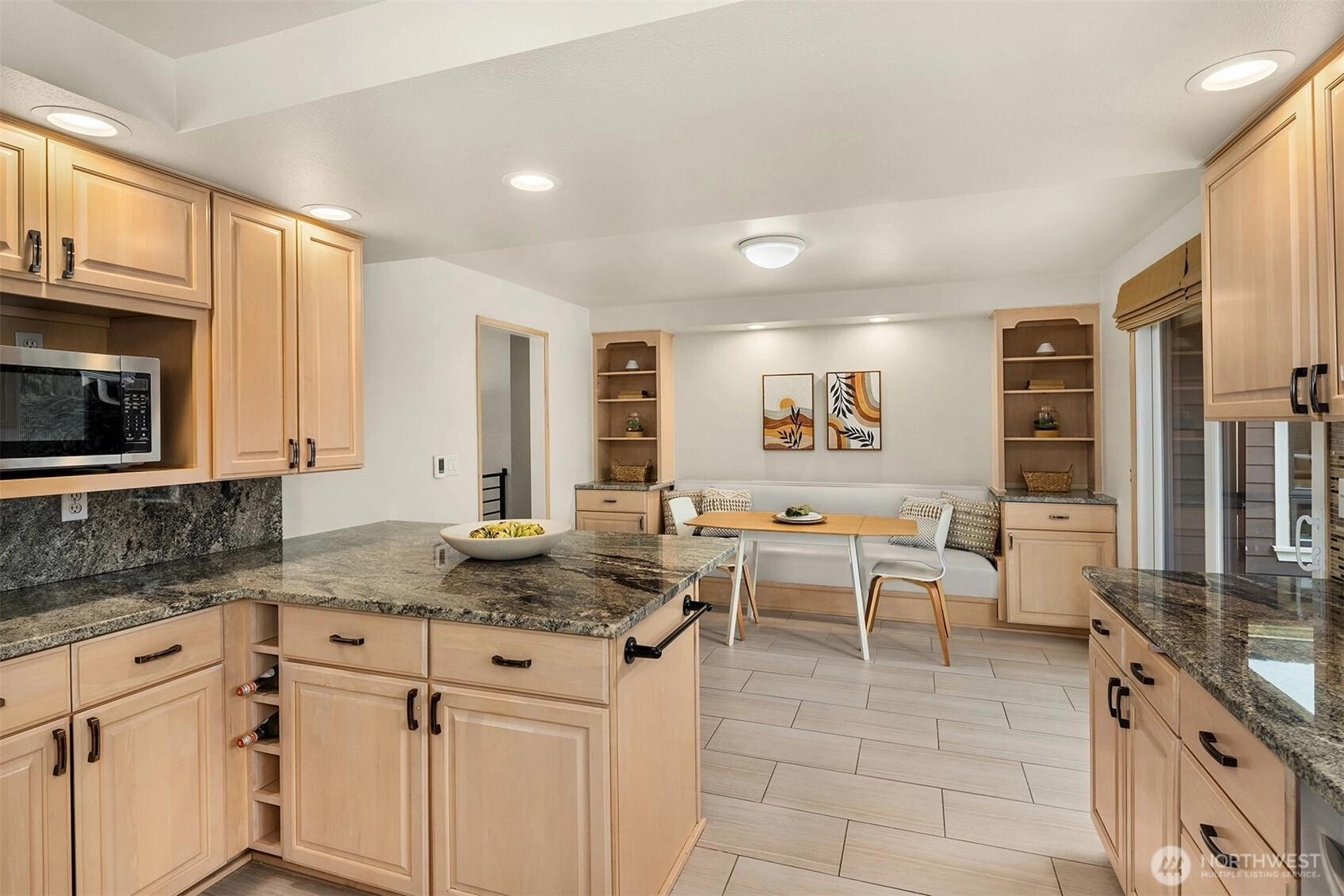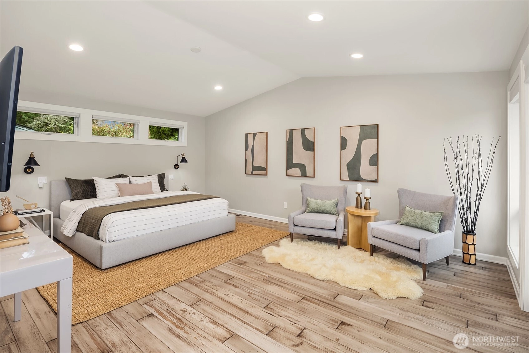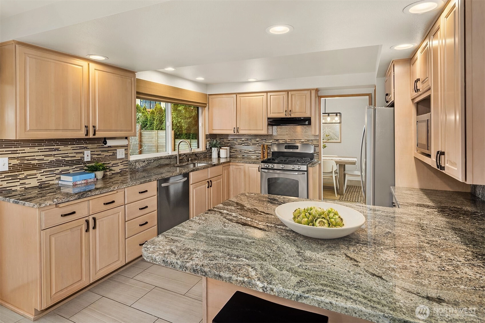 Tucked away at the end of a quiet cul-de-sac in coveted Houghton, this nearly 3,000-square-foot home captures sweeping Lake and Olympic Mountain views. A great room you will never want to leave, featuring a recently updated fireplace with SureCrete MicroTek that creates a sophisticated focal point beneath vaulted ceilings while enhancing the views. Expansive western-facing windows frame the outlook beautifully. The kitchen is designed for gathering; it features updated granite countertops, a mosaic tile backsplash, heated floors, and an oversized island that flows seamlessly to the deck and private backyard retreat. Indoor and outdoor living unfolds effortlessly, whether hosting summer evenings or enjoying sunsets from your front deck. The primary suite offers a seating area, deck access, and a spa-inspired bath with thoughtful details and custom-built closets. Two additional bedrooms and an updated full bath complete the main level. The lower level offers an office, a spacious and flexible bonus room with a fireplace, a game area, and a newer full bath, creating an ideal space for guests, work-from-home needs, fitness, or media. Walk a block to the Cross Kirkland Corridor and enjoy being just minutes from downtown Kirkland’s waterfront, dining, and more. Award-winning Lake Washington Schools. Easy access to SR-520, I-405, Bellevue, Redmond, and Seattle.