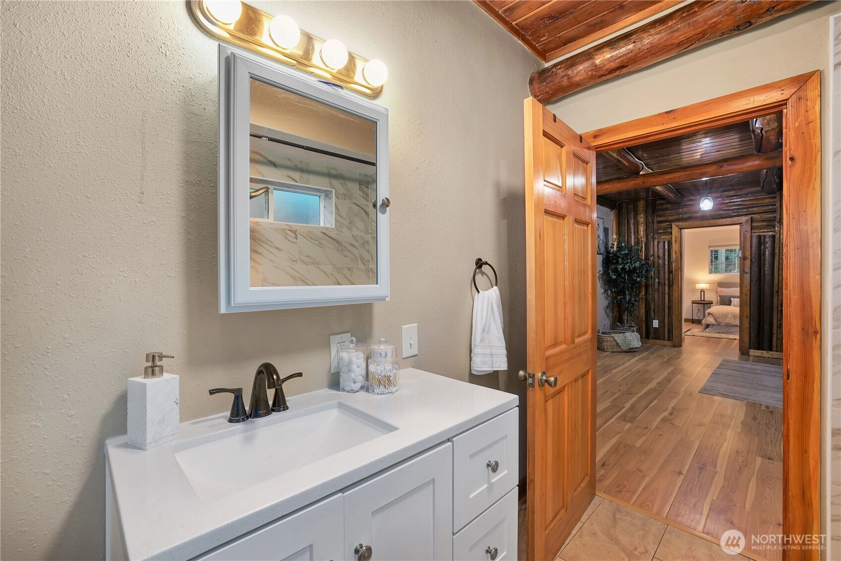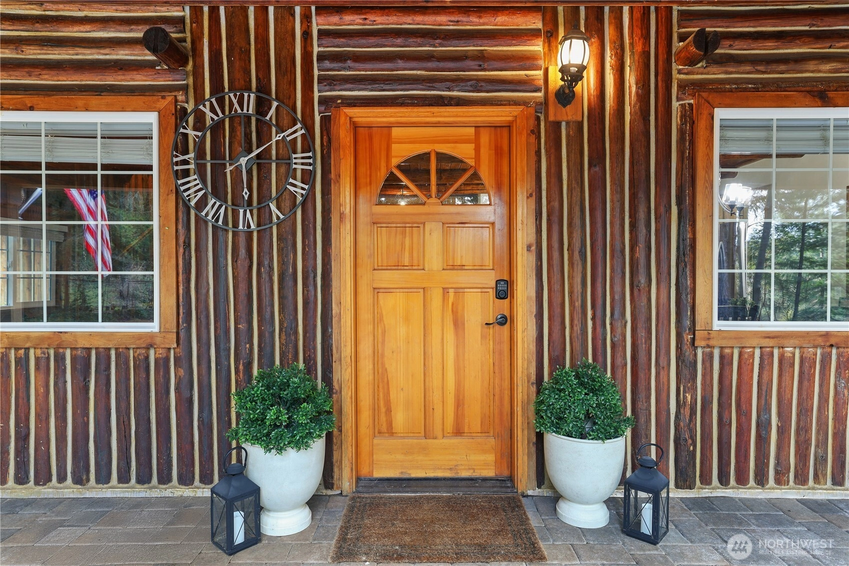 Tucked among the evergreens of Olalla, this distinctive log home sits on 2.55 private acres, offering character, warmth, and seclusion rarely found today. A welcoming covered front porch opens to inviting wood interiors showcasing timeless craftsmanship and a true Pacific Northwest feel. The refreshed open concept living space w/wood stove offers a cozy retreat feel, perfect for relaxing on cooler nights, while the updated kitchen blends rustic charm w/modern convenience for everyday living & entertaining. Large windows frame peaceful views of the surrounding landscape, allowing natural light to pour in and creating a seamless connection to the outdoors. A durable metal roof enhances longevity & low maintenance appeal while complementing the home’s classic log design. Outside, the acreage functions beautifully as a mini farm w/open pasture suited for animals, gardening, or hobby farming w/Fruit Trees. Multiple outdoor entertaining areas including two fire pit spaces create perfect settings for hosting guests or quiet evenings. The detached shop/garage offers flexible space for projects, storage, or recreational gear, while extensive uncovered parking provides room for RVs, boats, trailers, and additional vehicles. This one of a kind Olalla property delivers a peaceful retreat lifestyle w/easy access to nearby amenities, ferries, and commuter routes, offering privacy, versatility, and timeless Northwest living for those seeking something special beyond a cookie cutter home.
