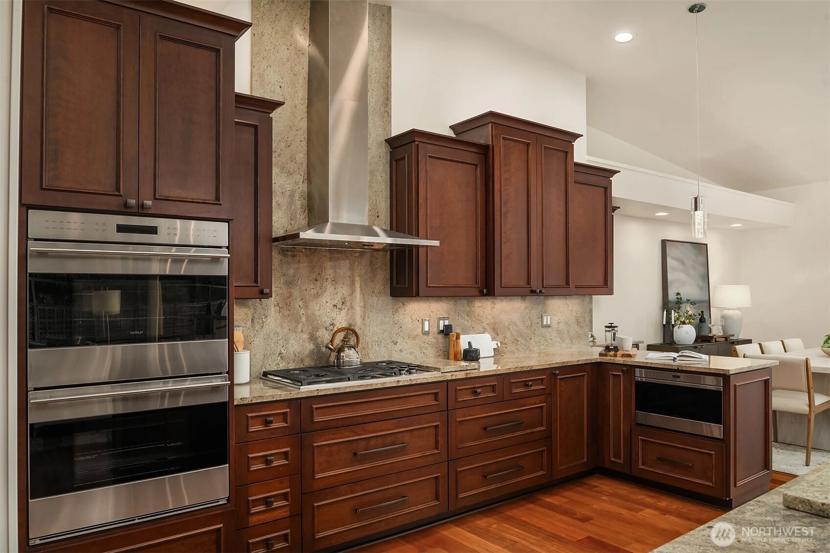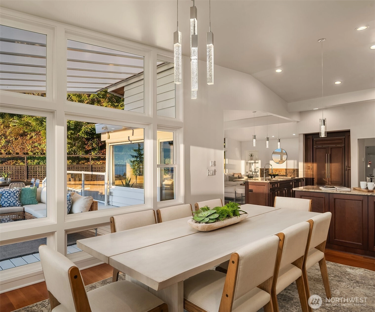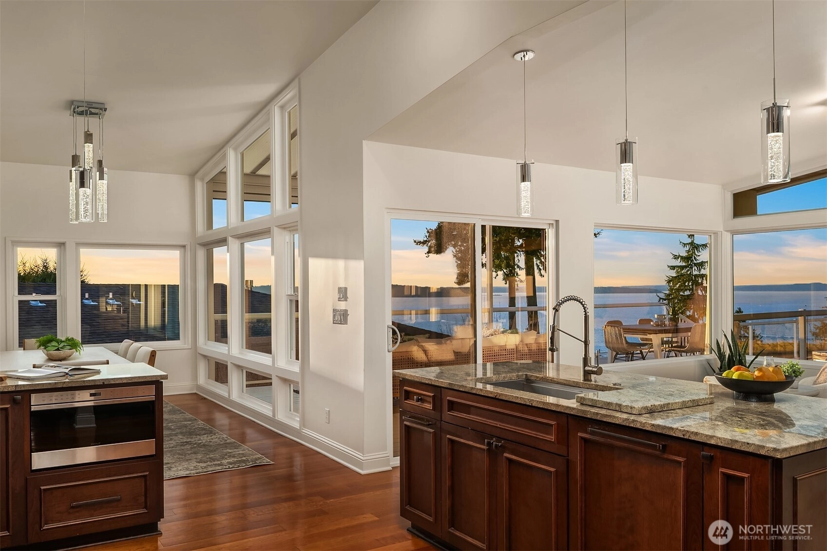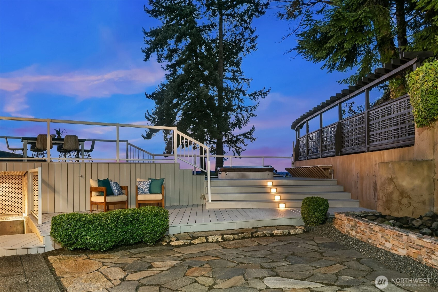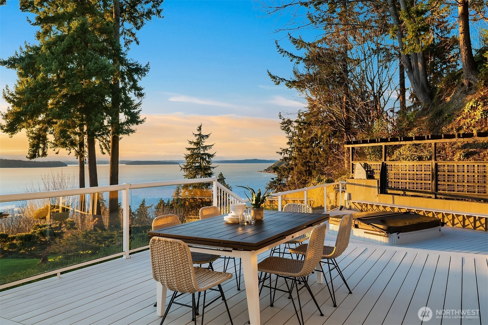 Perched high above the shoreline in coveted Seahurst/Hurstwood, this extraordinary retreat captures sweeping, unobstructed views of the Puget Sound stretching all the way to the majestic Olympic Mountains. Watch ferries glide across the water as sunsets paint the sky from your own private sanctuary. Designed for both grand entertaining and effortless everyday living, the home features a chef’s kitchen outfitted with Wolf and Sub-Zero appliances, seamlessly flowing into a covered outdoor living space complete with automated sunshades, Trex decking, a tranquil water feature, and a hot tub — creating a year-round resort experience. The luxurious primary suite is a true escape, showcasing a custom walk-in closet with its own private washer and dryer, offering elevated convenience and indulgence. Downstairs, a fully permitted ADU with private entrance and second kitchen provides exceptional flexibility for guests, multi-generational living, or income potential. Above the garage, a massive loft offers abundant storage. Commercial-grade air conditioning, solar panels, a Tesla whole-home battery system, and a whole-house water filtration system ensure comfort, efficiency, clean living, and uninterrupted power. The low-maintenance, drought-tolerant landscaping complements the eco-conscious design, allowing you to spend more time enjoying the view and less time on upkeep. A rare and distinctive offering where luxury, sustainability, and breathtaking scenery converge. Welcome home.