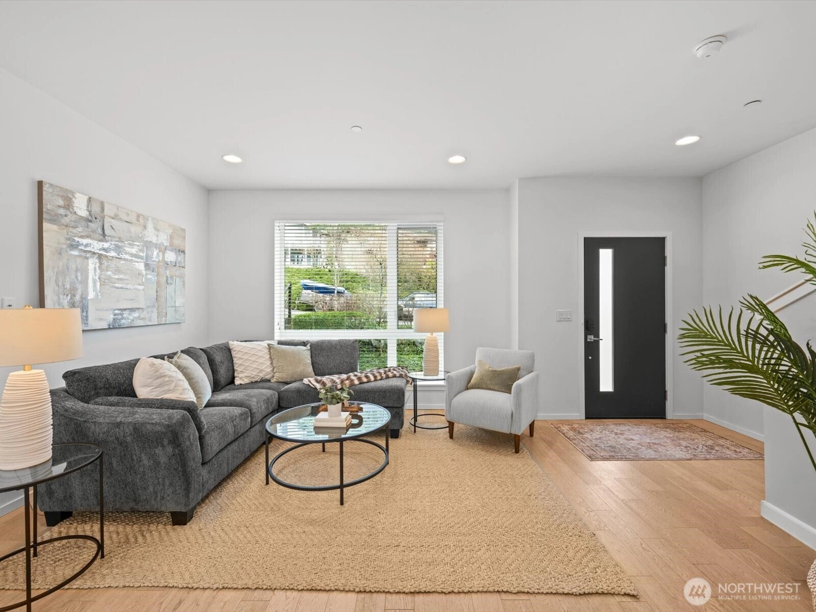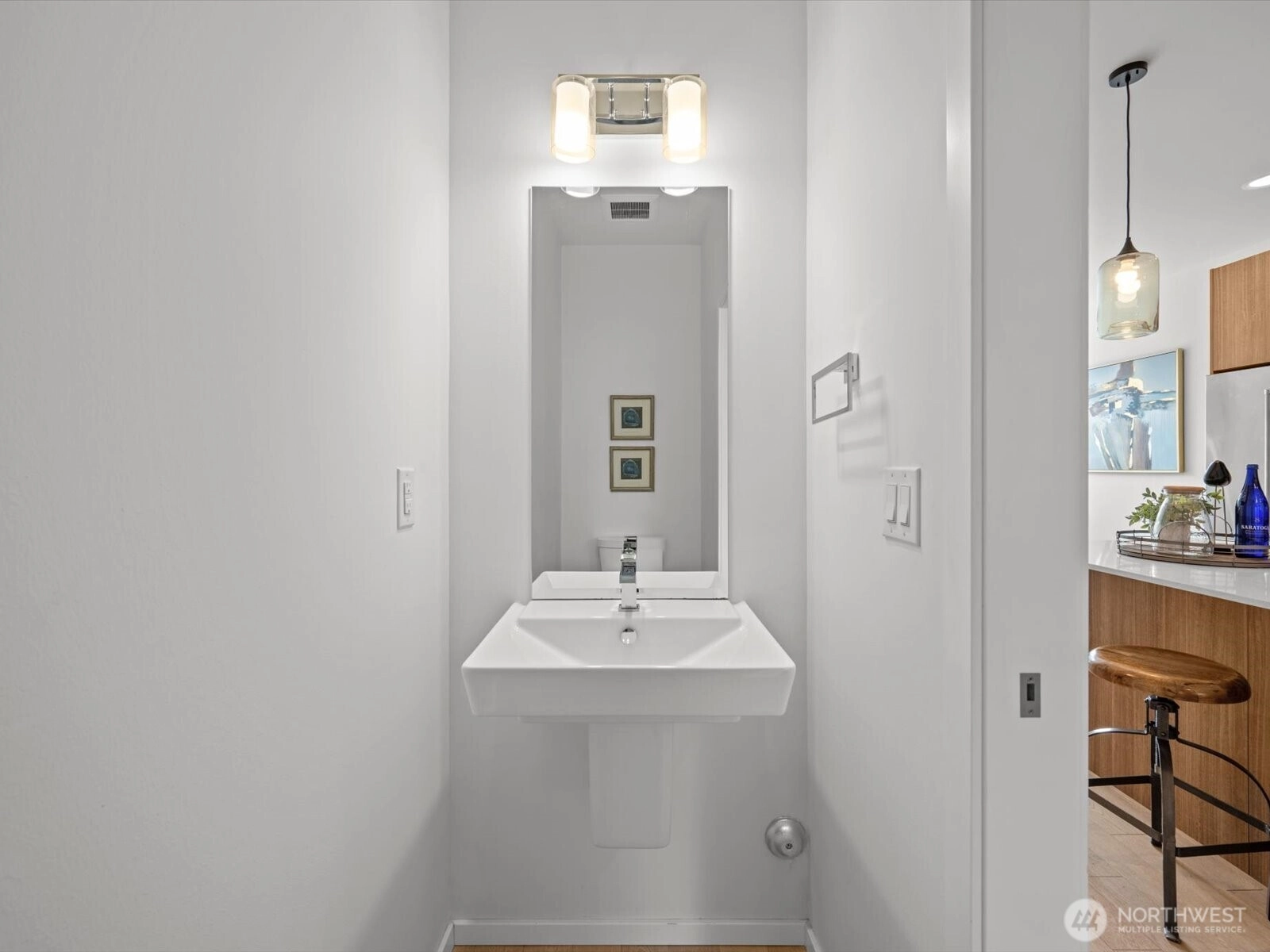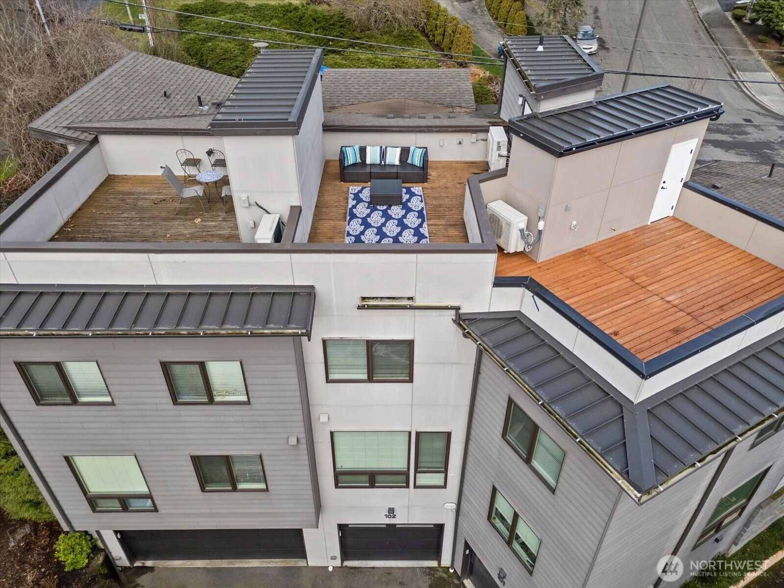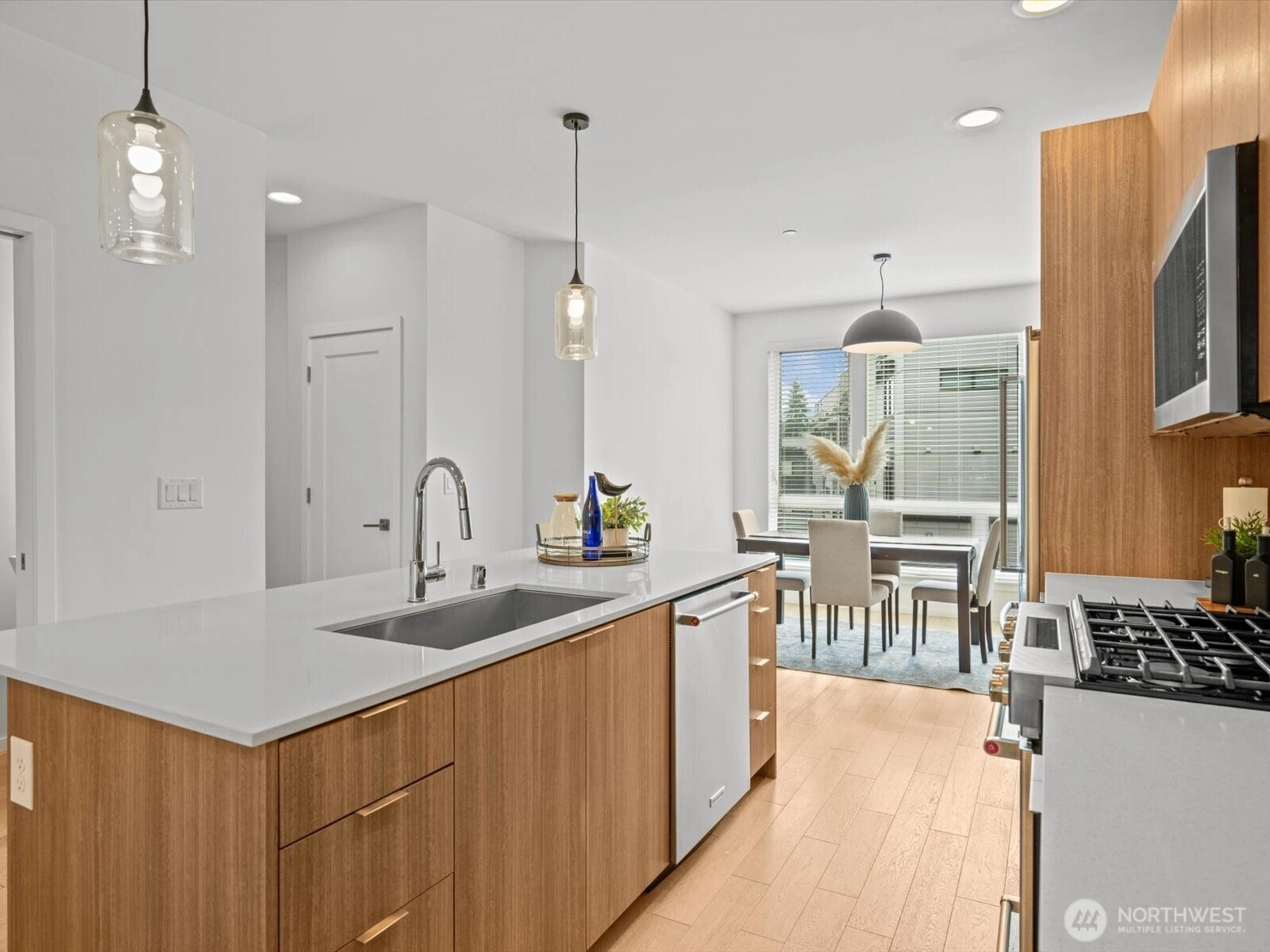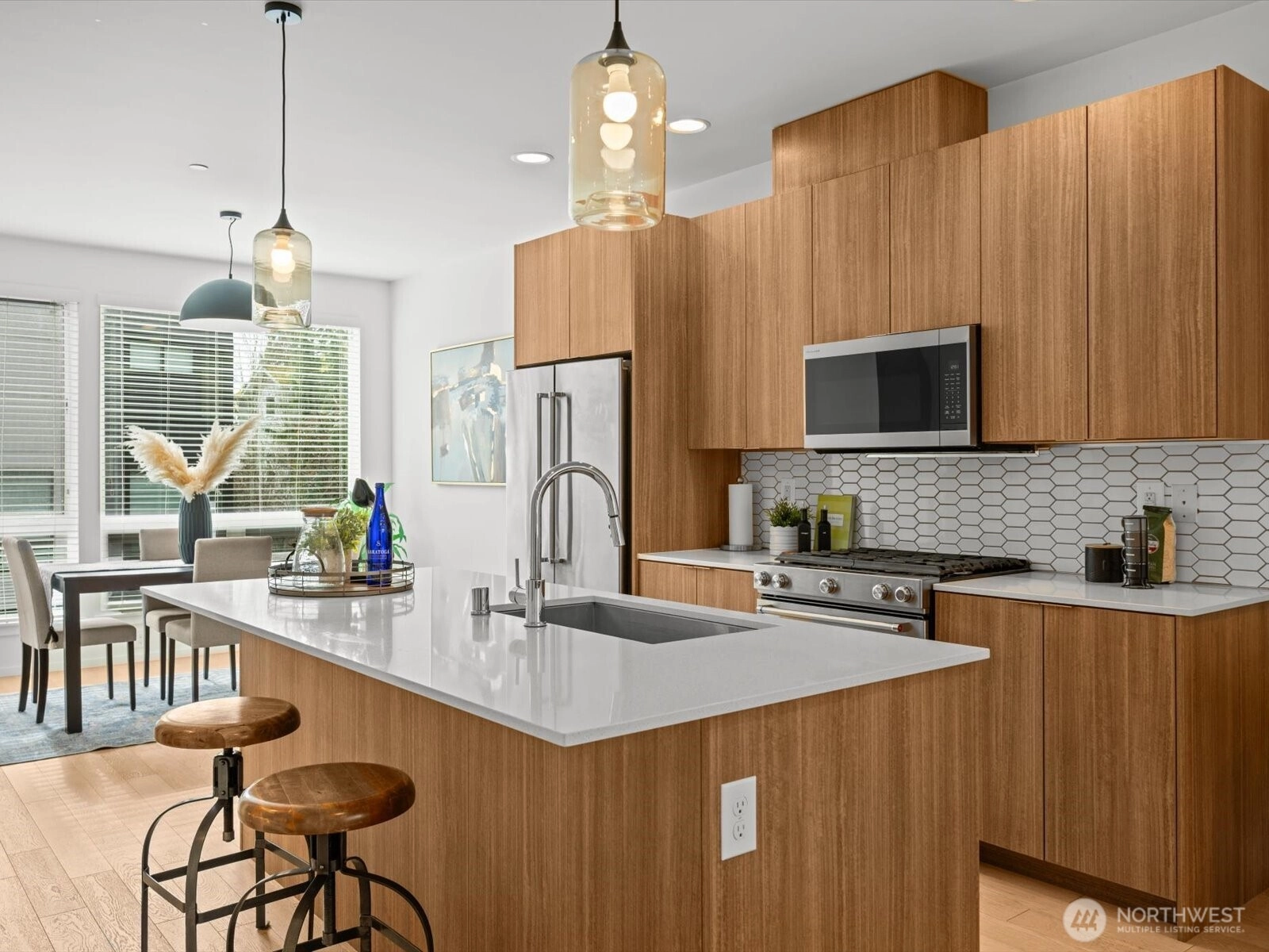 Modern 2 bdrm townhouse offering elevated design and effortless urban living - complete with AC and a rooftop deck with partial lake views. The open-concept main level is filled with natural light and clean, contemporary finishes. Seamless flow between living, dining and kitchen spaces create an inviting environment for both every day living and entertaining. Upstairs, both bedrooms are ensuite providing flexibility for guests or a home office. The private rooftop deck extends your living space outdoors, offering a pleasant outlook toward the lake - an ideal setting for morning coffee or relaxed evenings at home. Set in a highly walkable location, you're just steps to neighborhood cafes, restaurants, parks and daily conveniences. Enjoy comfortable low maintenance living, and the ease of having everything within reach. Clean design. Comfortable living. Exceptional convenience. 2 car attached garage. Welcome Home!