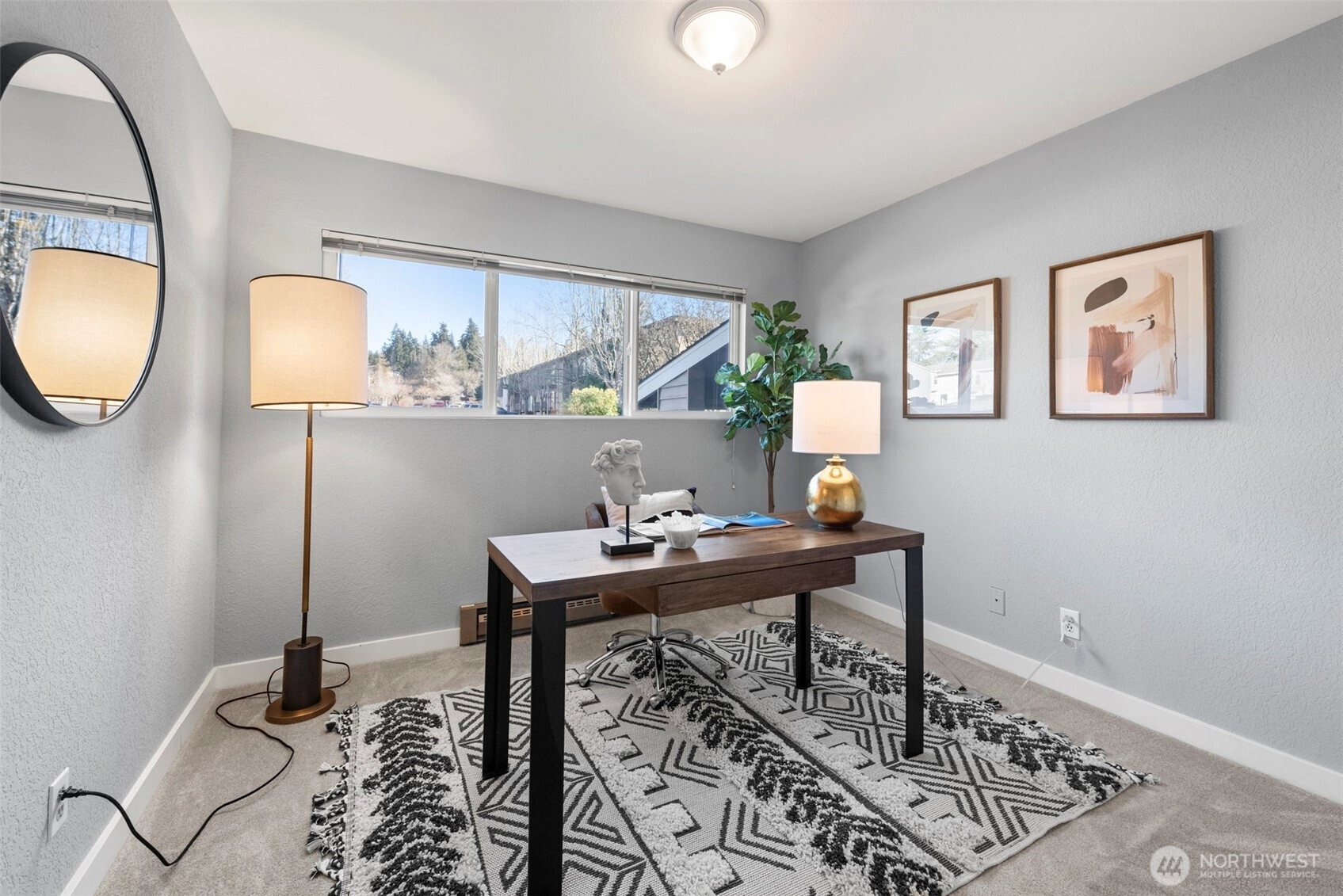 Charming & Updated 2-Bedroom Condo in Prime Houghton Location! Tucked away in a private, serene setting, this beautifully updated 2-bedroom, 1.5-bath condo offers both comfort and convenience. The modern kitchen features new countertops and cabinetry, while the bathroom shines with a new vanity, mirror, and ceiling light. Designed for bright and airy living, this home boasts large windows, a generous private patio, and a cozy fireplace. The spacious primary suite includes a walk-in closet, while the second bedroom is perfect as a guest room or home office. Move-in ready and this home is conveniently located across from Google! Enjoy easy access to I-405, two reserved parking spots, and no rental cap!!