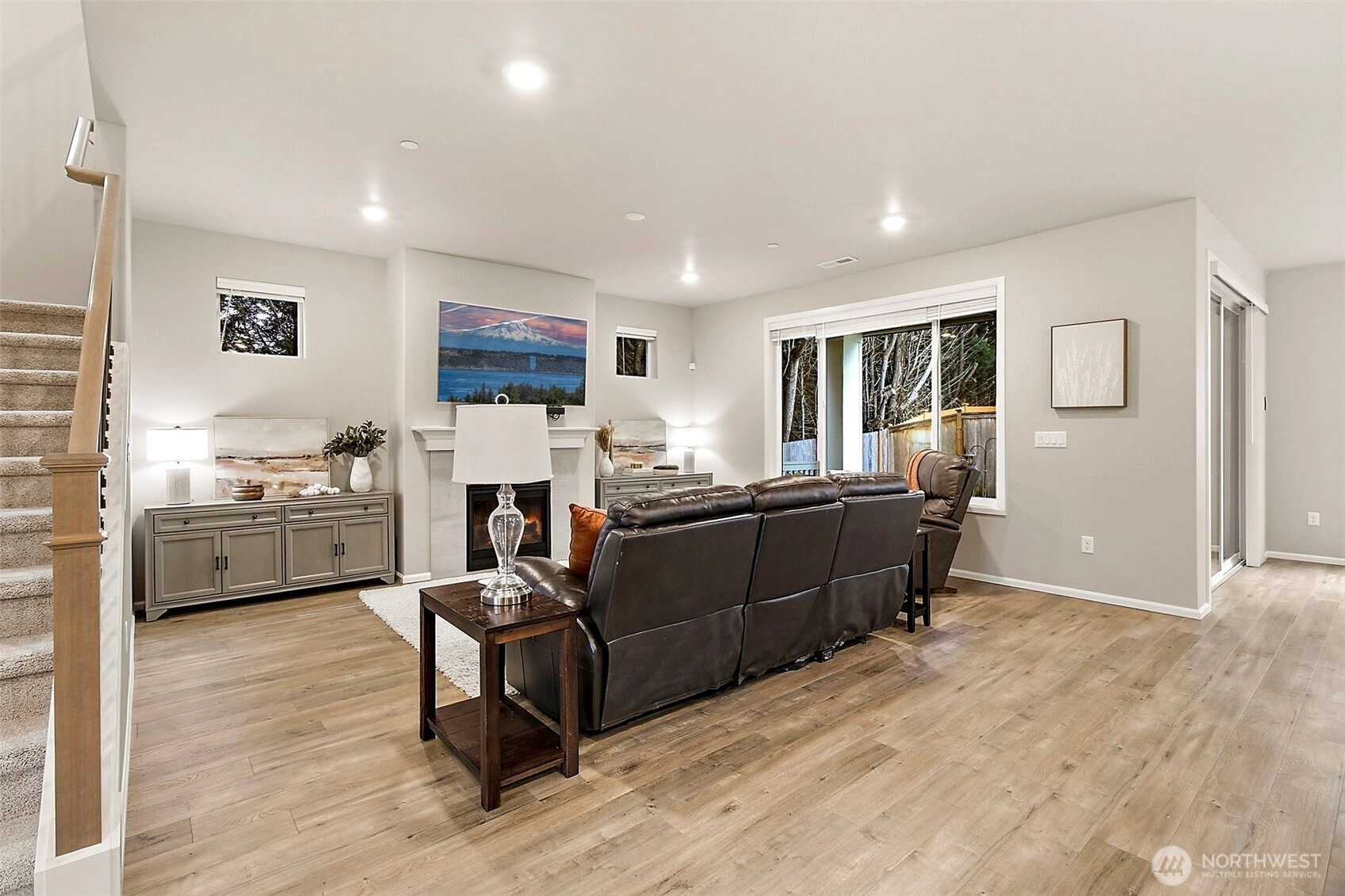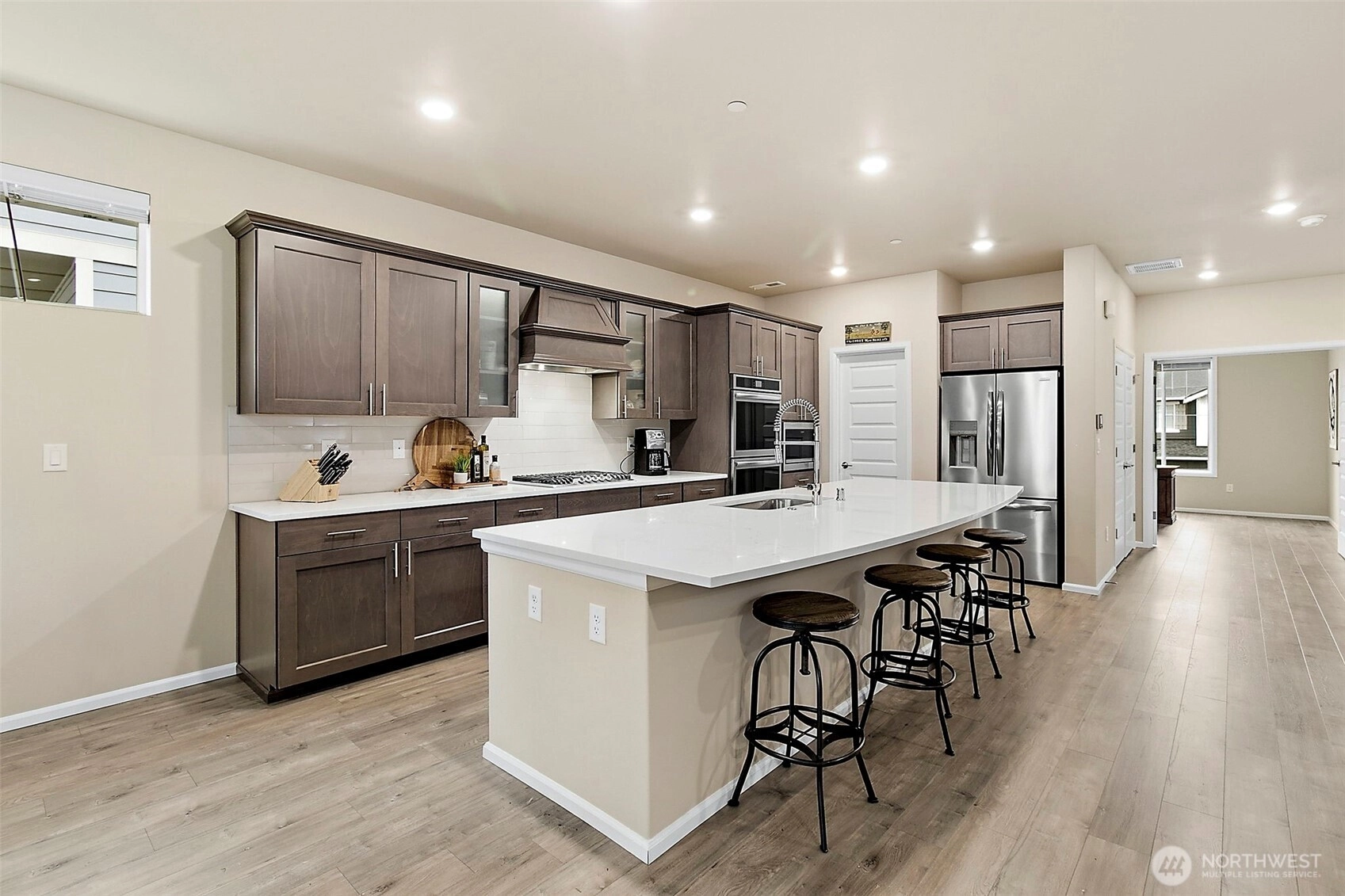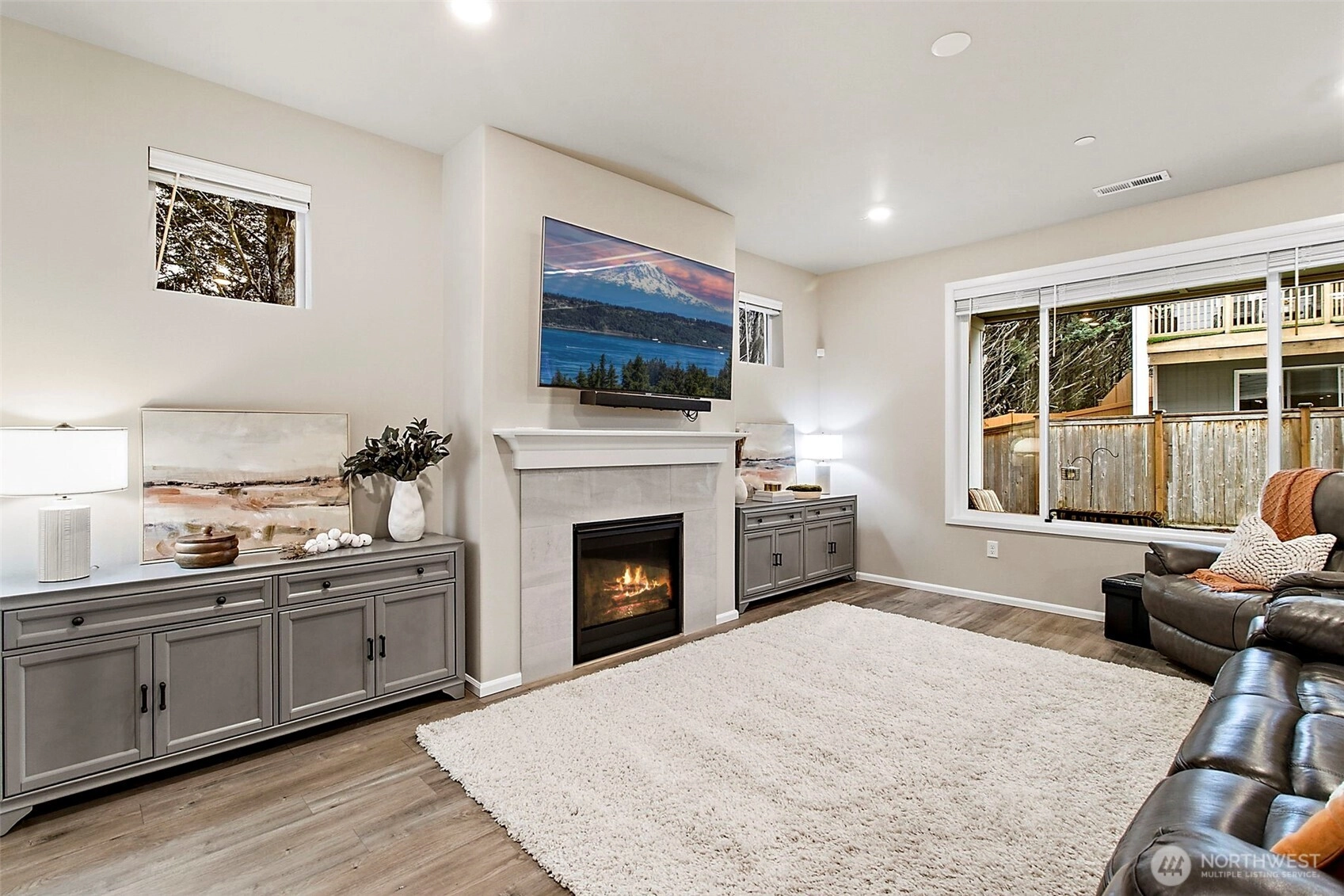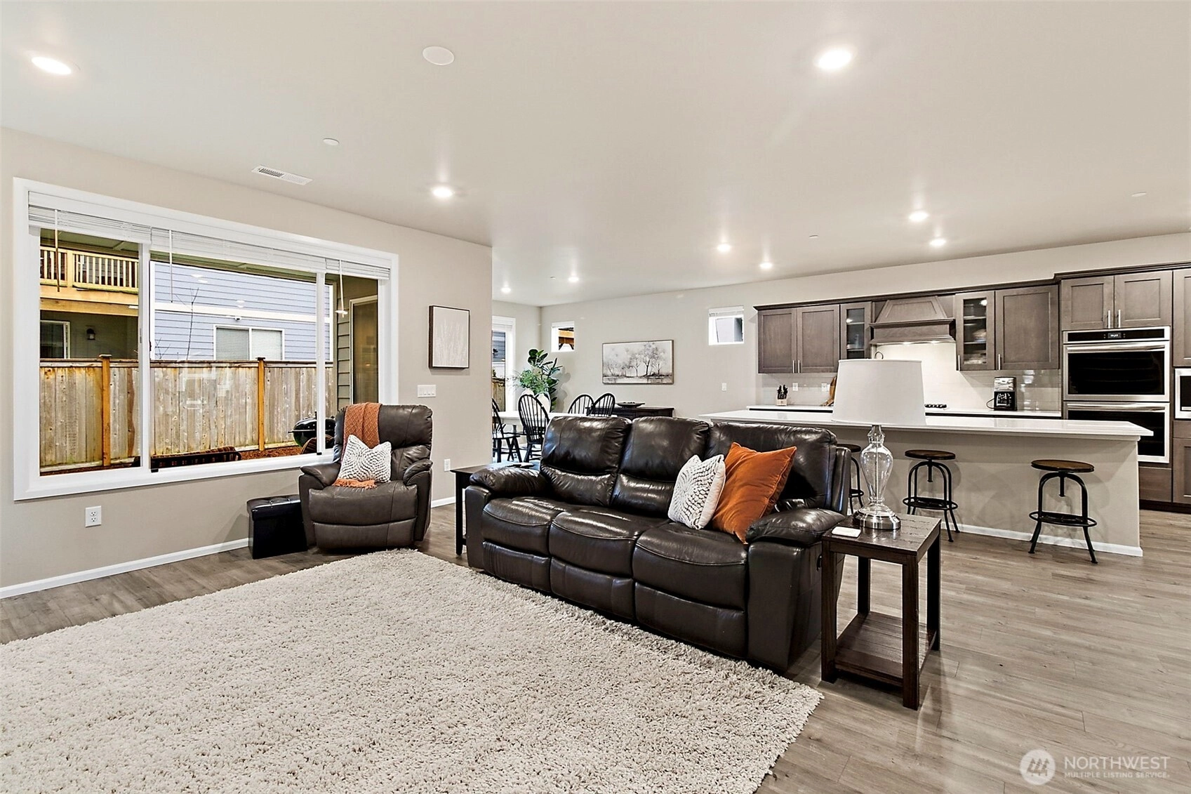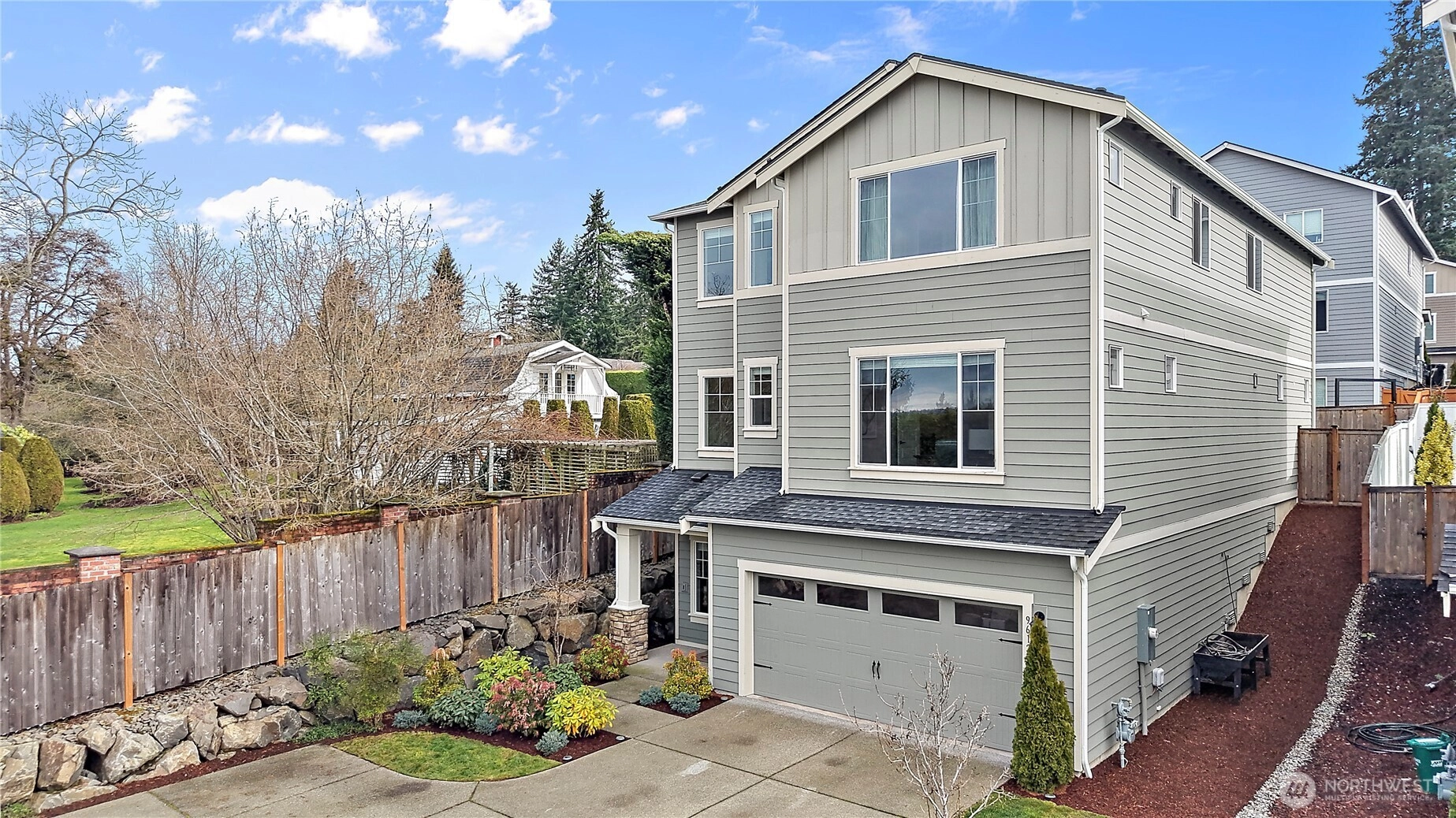 Experience elevated luxury living in this better-than-new 4-bedroom, 2.5-bath Lennar home in the highly desirable Oberon community. This stunning three-story residence offers refined design, thoughtful functionality & exceptional craftsmanship throughout. The open great-room floor plan features elegant sight lines & abundant natural light, creating a seamless flow ideal for both entertaining & everyday living. At the heart of the home is the chef-inspired kitchen, showcasing gleaming quartz countertops, an oversized island, double ovens, walk-in pantry, & all appliances included. Designer details abound with white millwork, 5-panel doors & sophisticated finishes at every turn. A private main-floor office provides the perfect work-from-home retreat. The great room off the kitchen boasts a cozy gas fireplace. The dining area opens to entertainment-sized covered patio with electric SunSaver screen, extending your living space year-round, plus a fully fenced yard for added privacy. Upstairs, unwind in the luxurious primary suite, complemented by three additional spacious bedrooms & generous bonus loft—ideal for media, play, or relaxation. Large two-car garage with additional driveway parking adds convenience. Located in newer community with large neighborhood park & excellent commuter access to freeways, SeaTac Airport, major retail, & business hubs, this exceptional home offers the perfect blend of luxury, comfort, & location. ***Check out AWESOME VIDEO in virtual tour link.