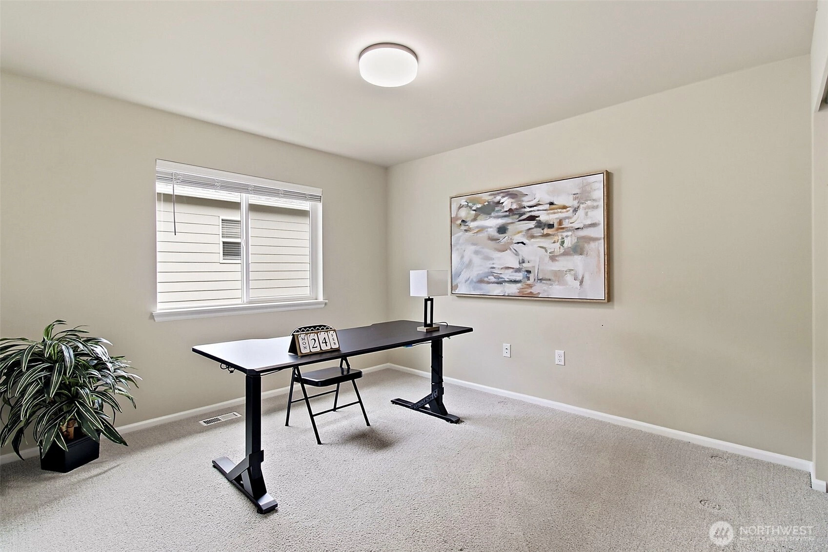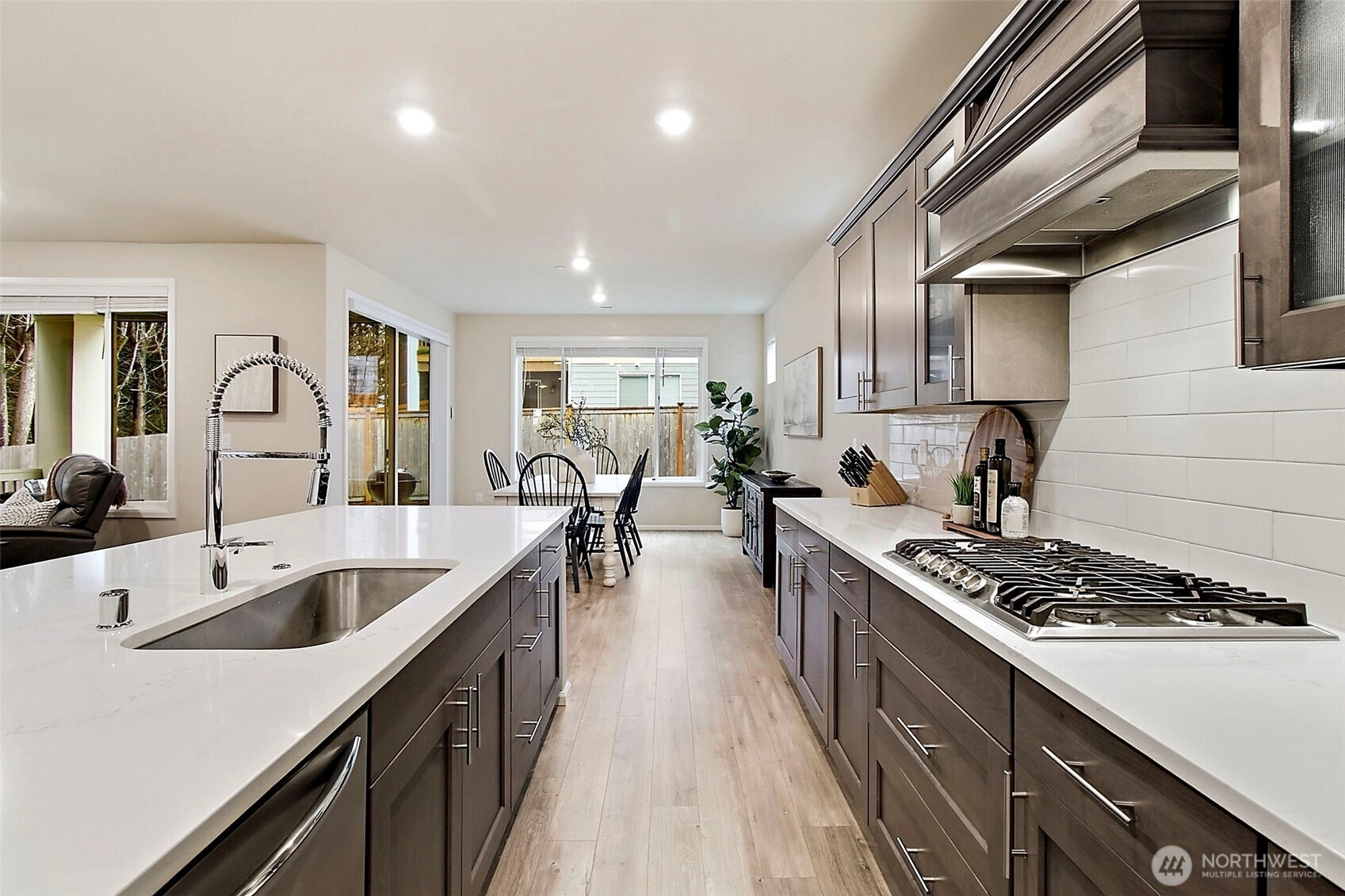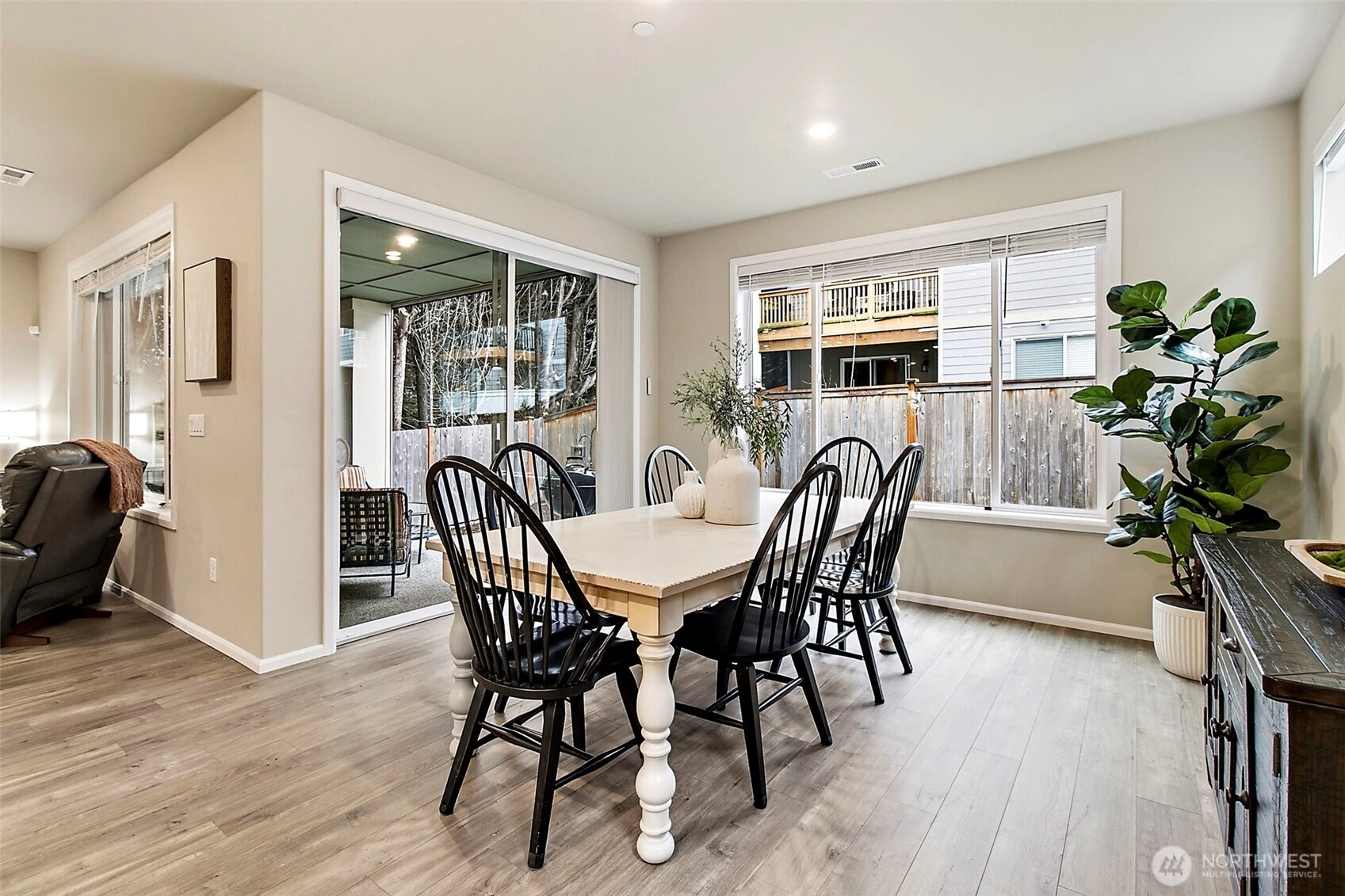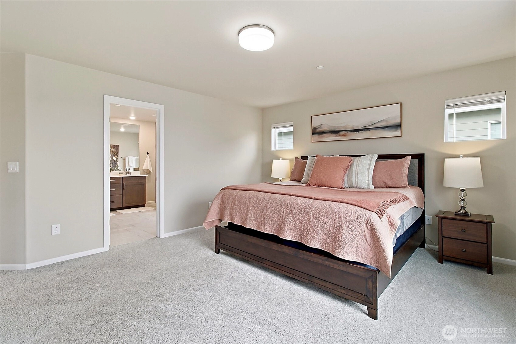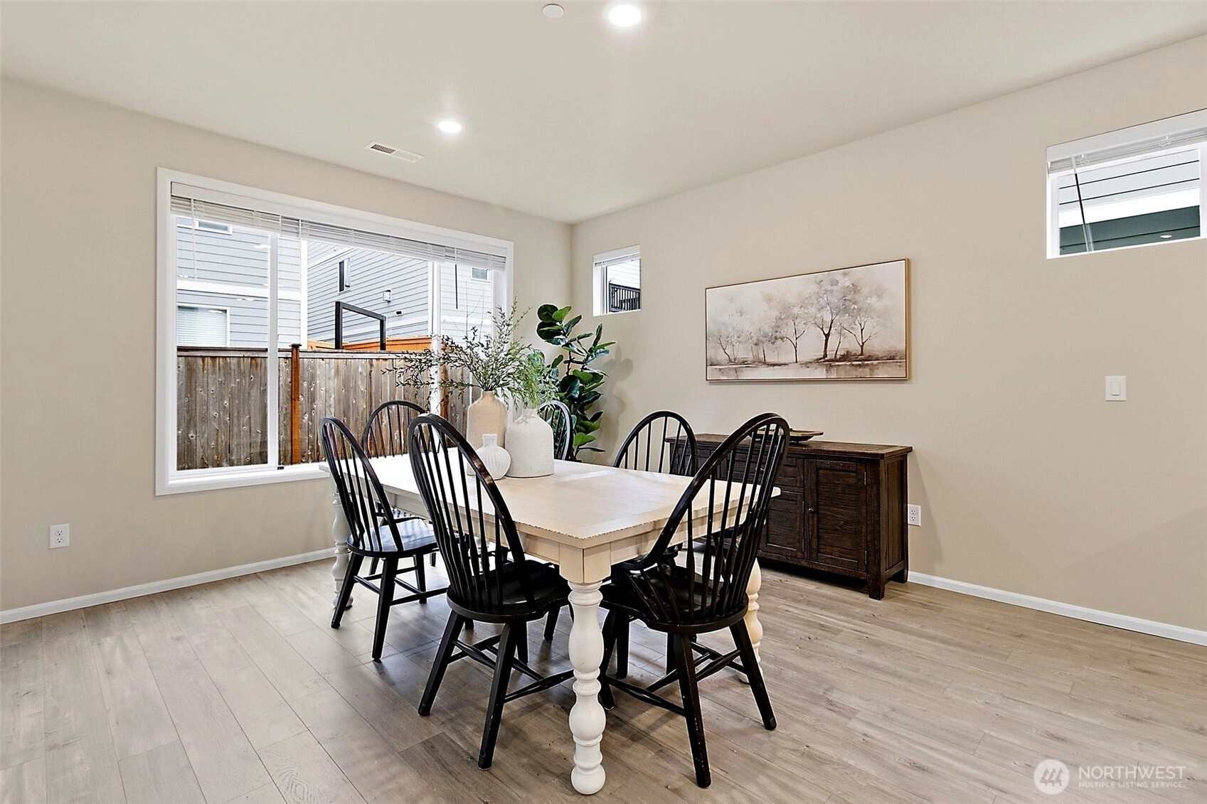 Experience elevated luxury living in this better-than-new 4-bedroom, 2.5-bath Lennar home in the highly desirable Oberon community. This stunning three-story residence offers refined design, thoughtful functionality & exceptional craftsmanship throughout. The open great-room floor plan features elegant sight lines & abundant natural light, creating a seamless flow ideal for both entertaining & everyday living. At the heart of the home is the chef-inspired kitchen, showcasing gleaming quartz countertops, an oversized island, double ovens, walk-in pantry, & all appliances included. Designer details abound with white millwork, 5-panel doors & sophisticated finishes at every turn. A private main-floor office provides the perfect work-from-home retreat. The great room off the kitchen boasts a cozy gas fireplace. The dining area opens to entertainment-sized covered patio with electric SunSaver screen, extending your living space year-round, plus a fully fenced yard for added privacy. Upstairs, unwind in the luxurious primary suite, complemented by three additional spacious bedrooms & generous bonus loft—ideal for media, play, or relaxation. Large two-car garage with additional driveway parking adds convenience. Located in newer community with large neighborhood park & excellent commuter access to freeways, SeaTac Airport, major retail, & business hubs, this exceptional home offers the perfect blend of luxury, comfort, & location. ***Check out AWESOME VIDEO in virtual tour link.