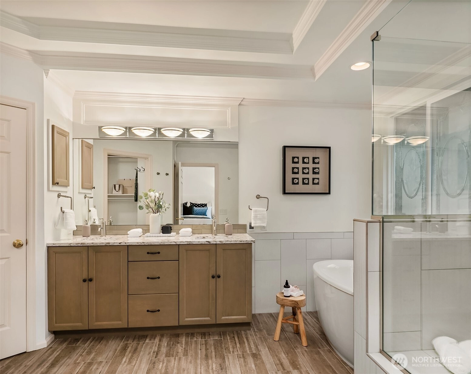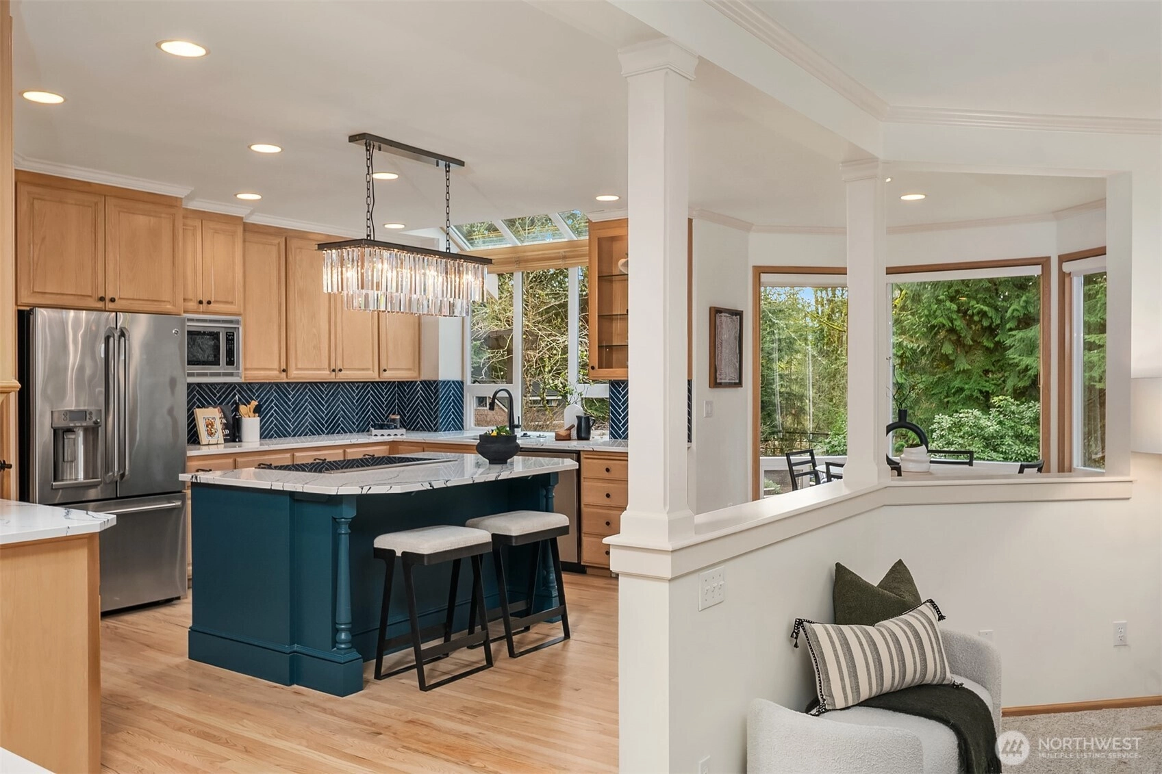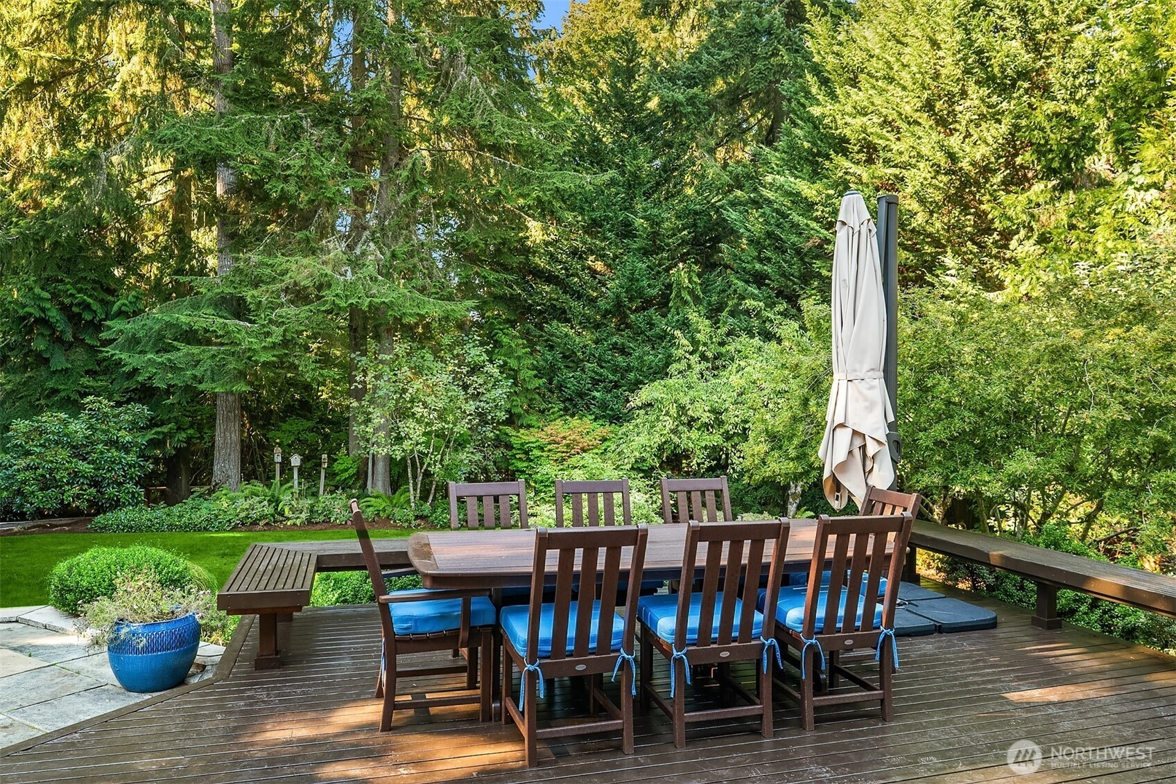Called to tranquility, privacy, and quality? Your opportunity has arrived. Built to last by Buchan, the area’s most trusted builder, with the timeless styling of a French chateau, this home and its stunning lot feel like a portal to peaceful living. Backing up to 27 acres of preserved natural area, you’ll never see a neighbor from this fully-fenced backyard oasis. Boasting a large deck, hot tub, darling playhouse w/starry sky ceiling, raised vegetable garden, this landscape was featured in Sunset Magazine for its year-round symphony of something always in bloom and a summer bounty of fresh fruit & berries. The home, with a rare & coveted floorplan featuring a main-level primary suite with newly expanded closets, has received only the highest-quality improvements over the past five years: updated kitchen, new baths + fully replaced roof, water heater & HVAC. Oversized 3 car garage with shop space is wired for EV. Lake of the Woods transports you to simpler times with its manicured, estate-sized lots and gracious homes in a natural setting of trails, creeks, & ponds yet is the shortest hop to both Woodinville & Redmond urban centers; wine country; and Microsoft’s campus.