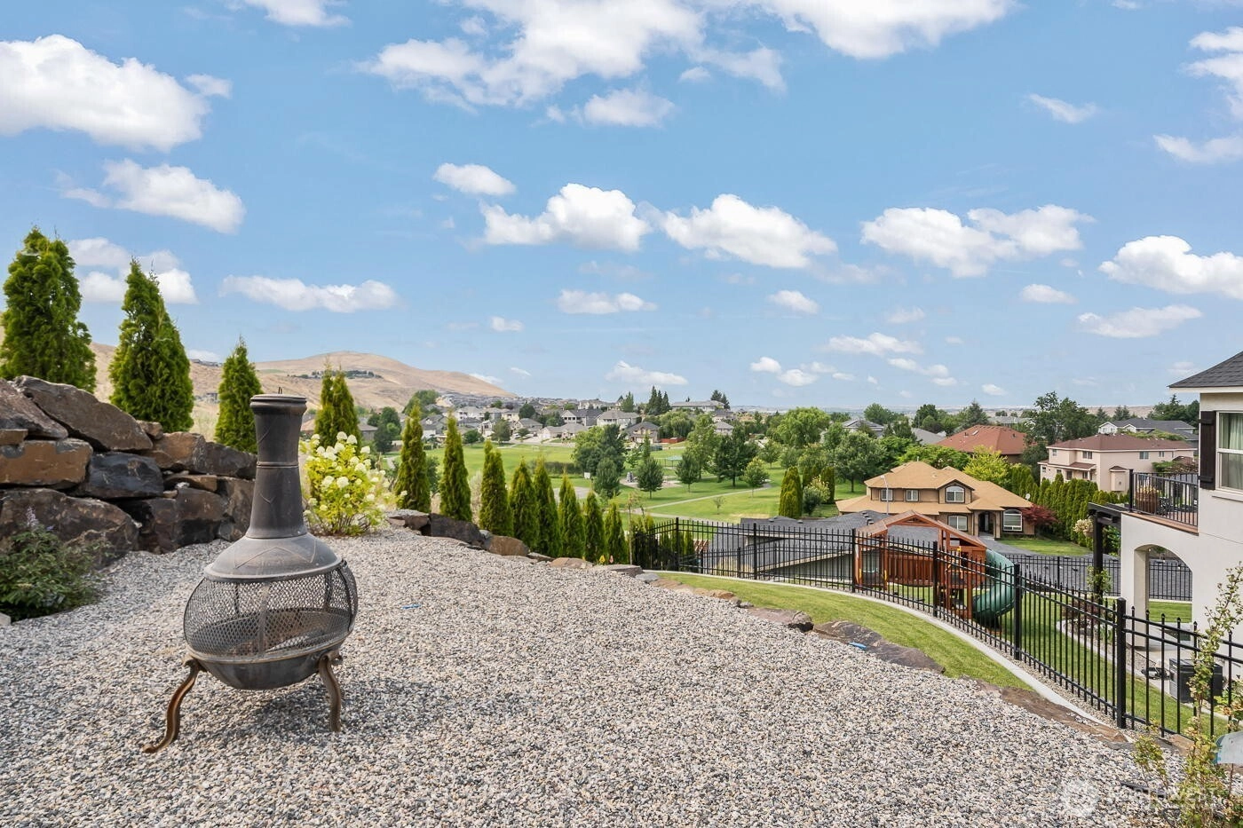 Welcome to 2315 Morency Drive in Crested Hills. This designer-owned, custom built home is one of a kind, designed by a premier design build firm with award-winning, published recognition. A private drive with lush greenery leads to a professionally landscaped yard and double doors opening to unobstructed 360° views of Crested Hills Park. The living room features beams, a floor-to-ceiling rock fireplace, and deck access. The kitchen offers quartz countertops, custom cabinets, and a dream pantry. The main-level primary suite includes a spa bath and walk-in closet, plus office/bedroom and laundry. Downstairs bedrooms have en suites and a workout room. The fenced backyard features a gazebo, arborvitae, and concrete pad. A 990 sq ft three-car garage, smart home features, tankless water heater, softener, and security cameras complete this immaculate home.