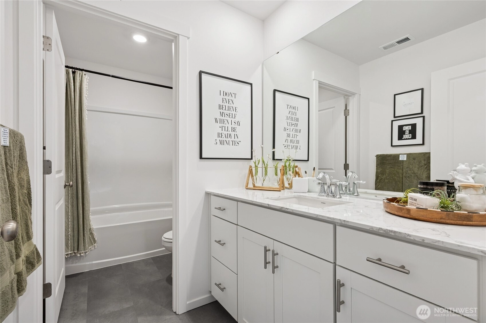 The Legacy plan is move in ready and is our Home of the Week (includes Refrigerator!) at the brand-new Torrey Farms in Puyallup! This spacious brand-new home offers a massive backyard and popular main floor bedroom with 3/4 bathroom for guests to enjoy...all in a prime location! With a very open concept and lots of storage space you can live and host with ease. The large gourmet kitchen has a huge walk-in pantry, quartz countertops, soft close shaker style cabinets, and a huge island with breakfast bar. The included drop zone off the garage offers a tidy space with a built-in bench to sit to remove shoes and place them in their cubbies and hooks to hang up jackets and bags. The tech niche on the main floor could be the perfect home office space or could offer even more storage or double a a second walk-in pantry! If you're a movie fan or love game nights, the huge bonus room is perfect for a home theater or playroom! Community is conveniently located to shopping and is just 5 minutes to I-5! Grand primary bedroom can accommodate a king size mattress and more with connected spa like primary bath and a massive walk-in closet! Laundry room upstairs with built in quartz counter folding table. E/V wiring for an electric vehicle charger, all stainless-steel appliances, and smart home features all included. Offering $15,000 toward closing costs/options w/ DHI Mortgage. Buyers must register their broker on-site at their first visit, including open houses