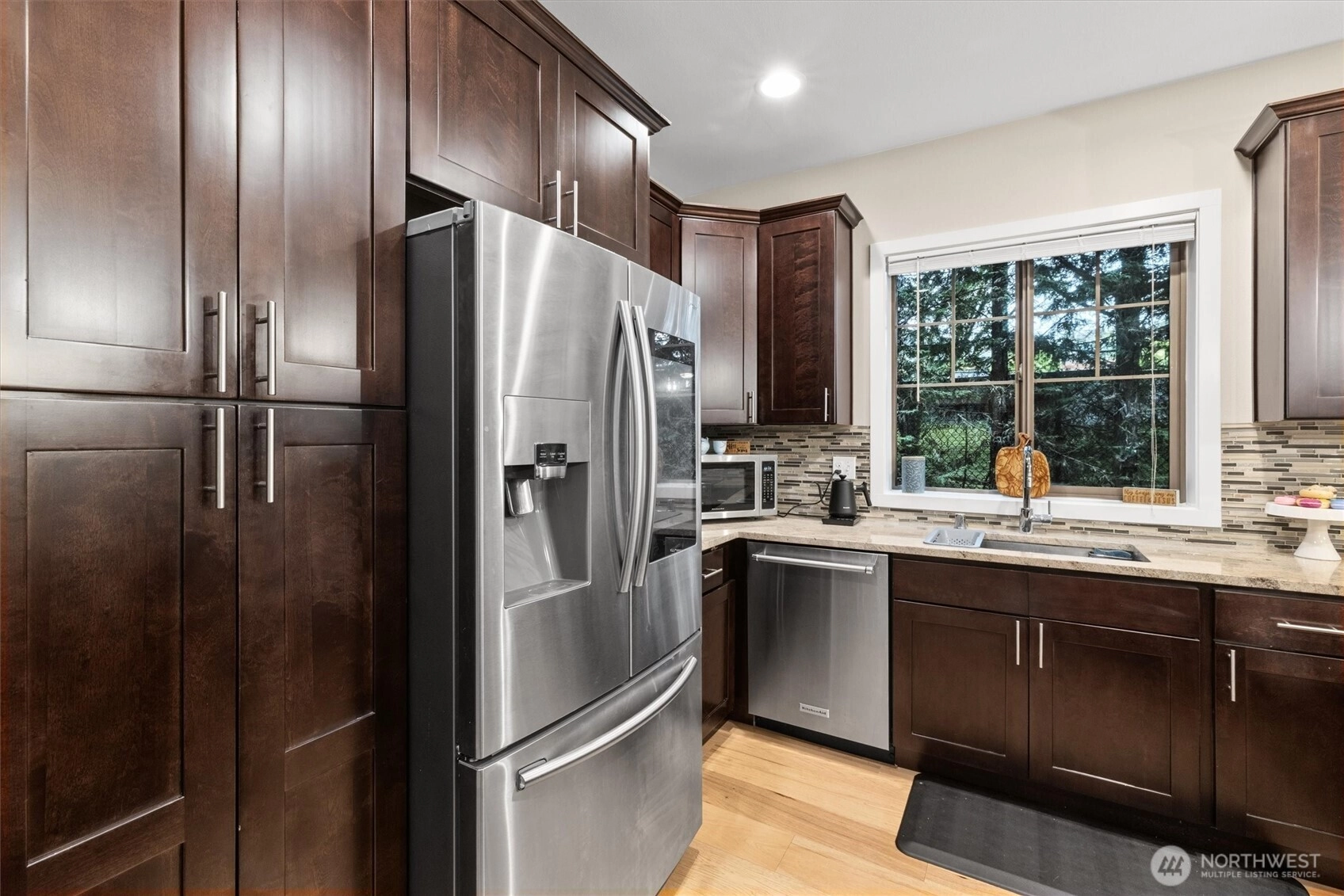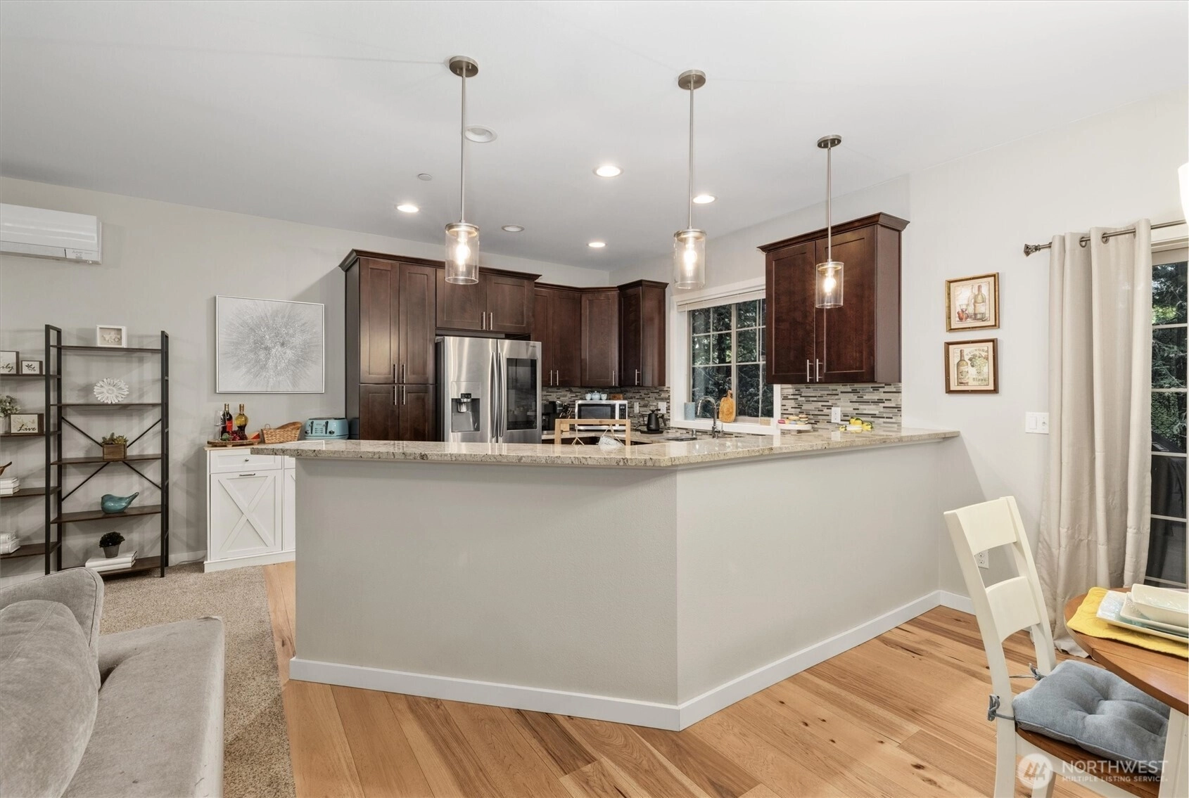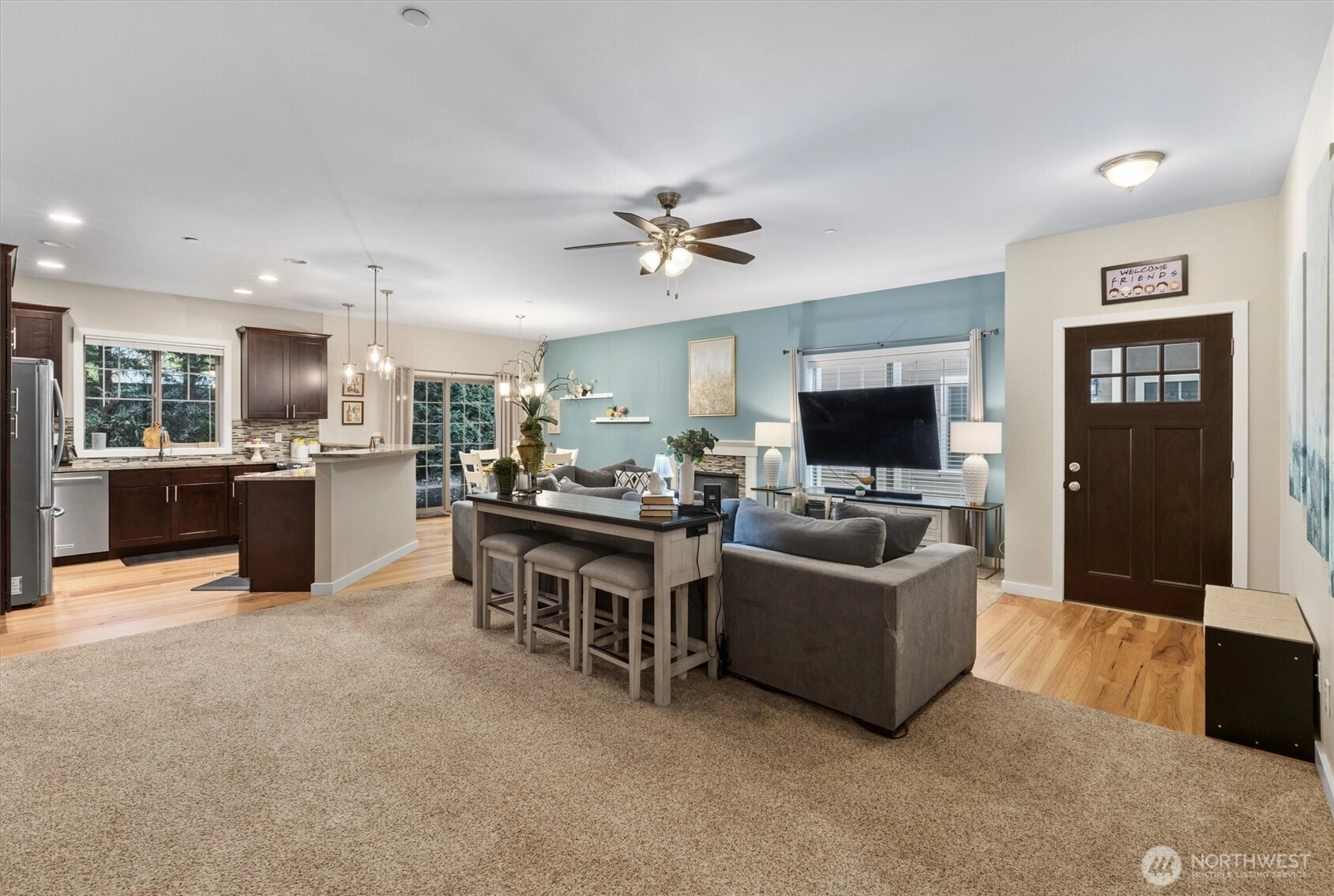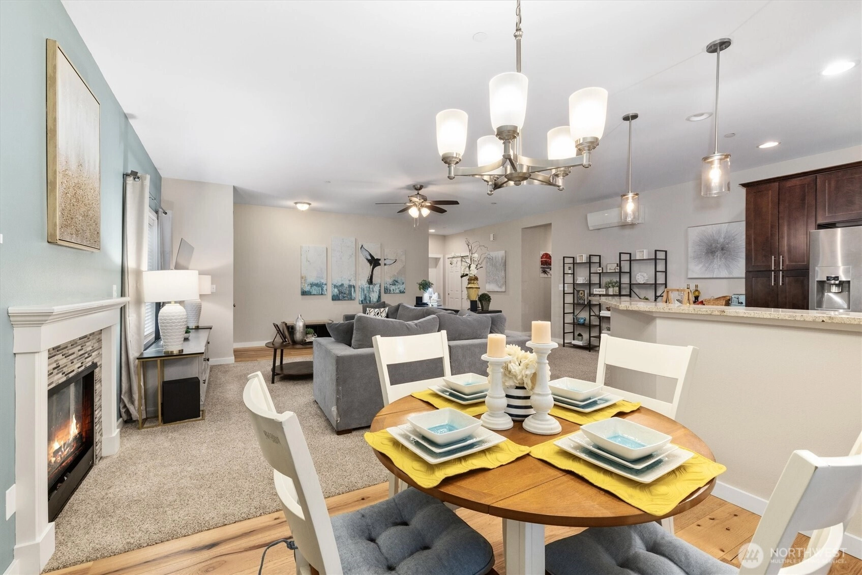 Located in a sought after gated community in Maple Valley, this well cared for 2bedroom, 2bath home is an ideal opportunity for first-time buyers. The open floor plan creates a bright & welcoming living space, featuring granite countertops, a full kitchen backsplash, & stainless steel appliances, including a modern smart view refrigerator. The primary suite offers a double sink vanity & a beautifully tiled walk-in shower, while the spacious second bedroom includes two closets perfect for guests, or a home office. A cozy gas fireplace adds warmth & comfort, & the private outdoor patio provides a space for BBQ and seating area. Residents enjoy gated trail access, a peaceful community setting, & the benefit of being in the highly regarded Tahoma School District. Conveniently located near Highway 169, Highway 18, and nearby shopping areas. This home combines comfort, convenience, and an easy entry into homeownership.