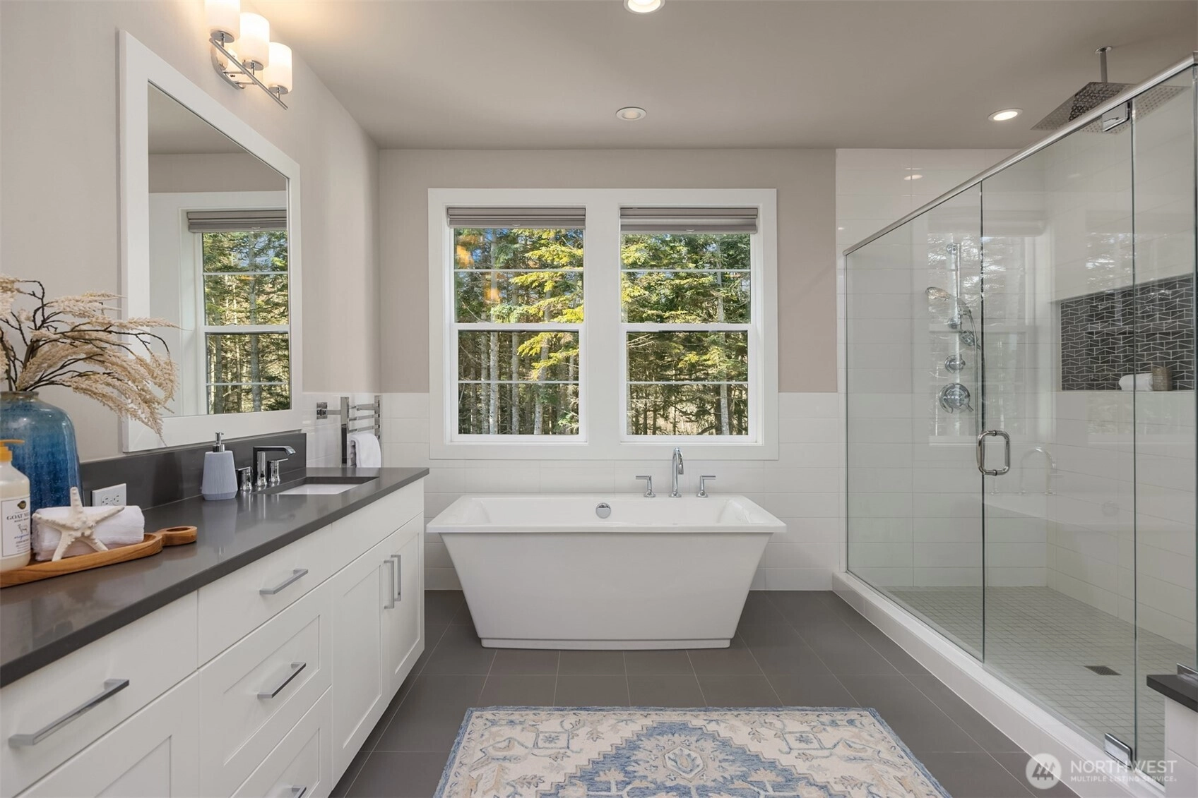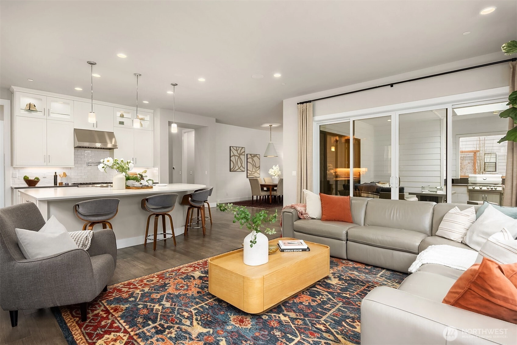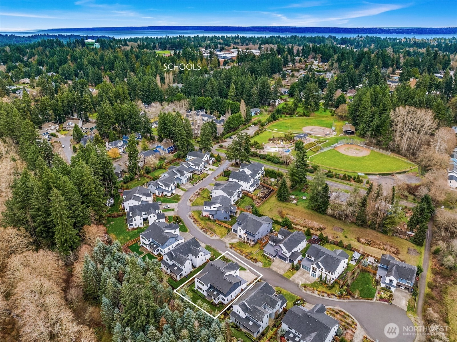 Nestled in the coveted Winslow Grove neighborhood, this beautifully crafted residence blends timeless sophistication with everyday comfort. Designed with both entertaining and daily life in mind, the main floor showcases elegant finishes, intentional architectural details, and an inviting open-concept flow. At its heart, a gourmet kitchen connects seamlessly to spacious living and dining areas, creating the perfect setting for gatherings large or small. A main-level guest suite, private home office, and expansive covered patio, enhance the home’s versatility. Upstairs, the luxurious primary suite offers a peaceful escape, featuring a spa-like bath and a luxurious walk-in closet. Additional bedrooms—including a private ensuite—along with a generous bonus room provide flexible space for gathering, a studio, or remote work, all thoughtfully positioned to ensure comfort and privacy. Outdoors, the covered patio offers a tranquil retreat with ample room to unwind—whether enjoying a quiet morning coffee or delighting in the sunset and open space beyond. Located just steps from Rotary and Owens Parks and nearby Strawberry Waterfront Park with kayak launching and outdoor recreation. Meanwhile, the shops, restaurants, schools, and ferry terminal of Winslow are minutes away. This is elevated Bainbridge Island living—graceful, functional, and designed to feel like home from the moment you arrive. . Fully fenced and landscaped, with bonus common area/open space beyond fence.