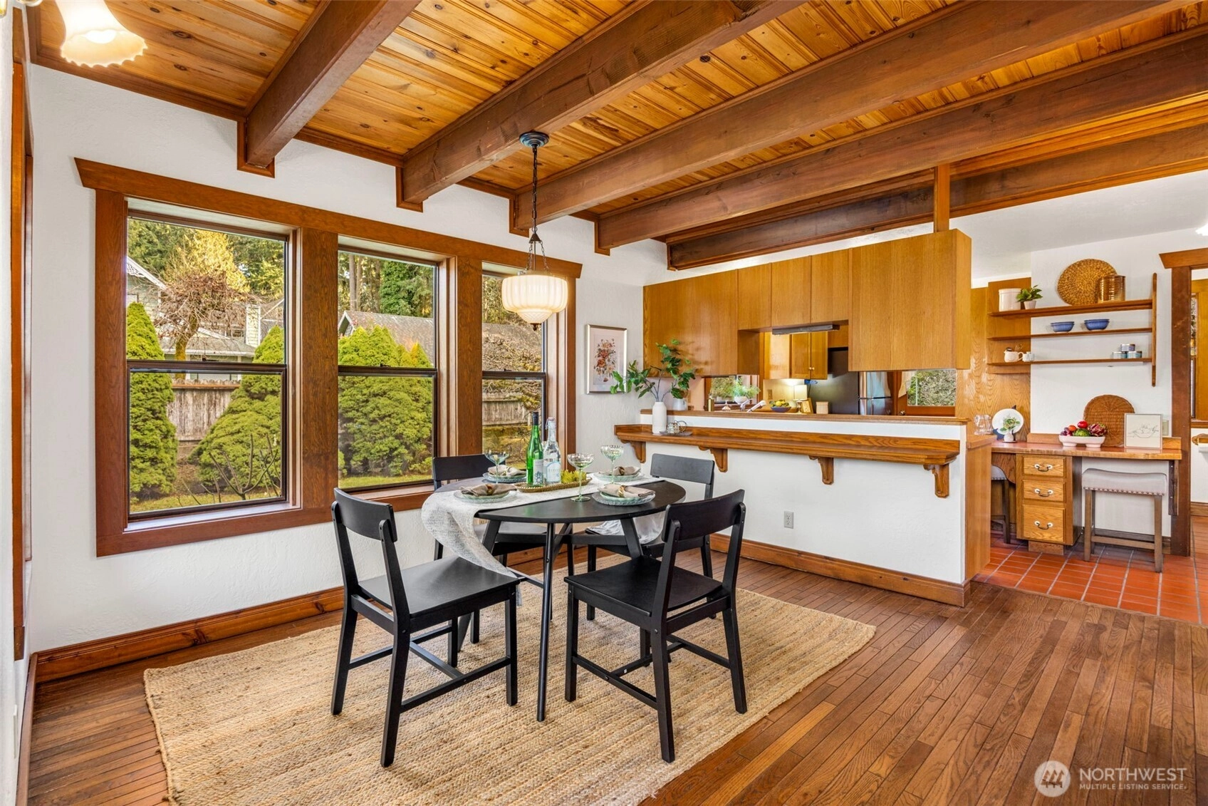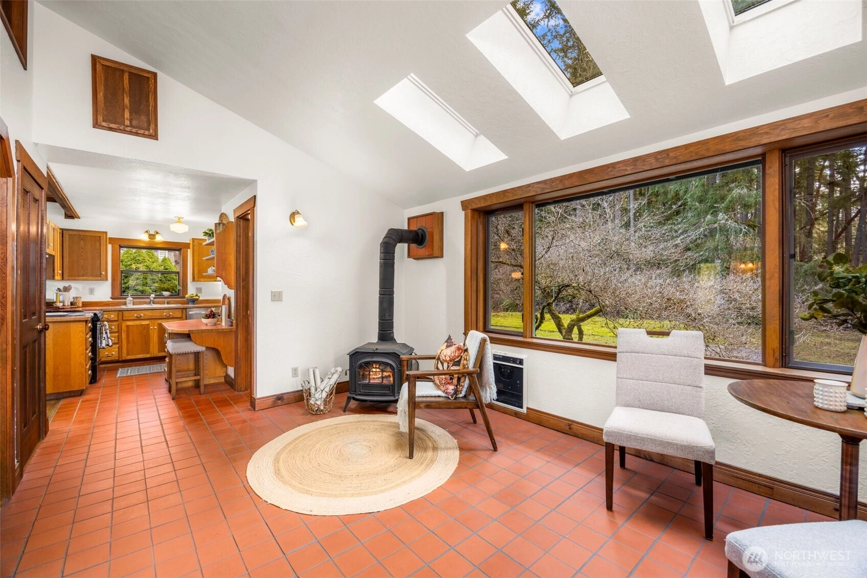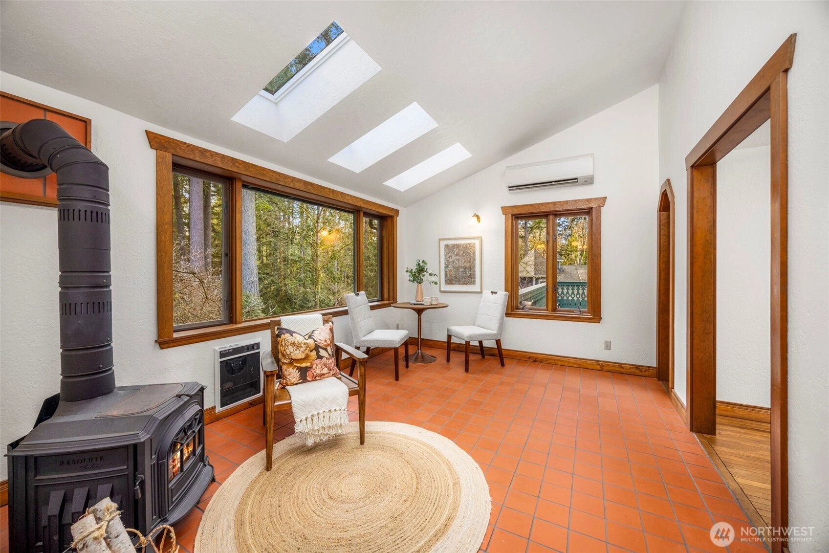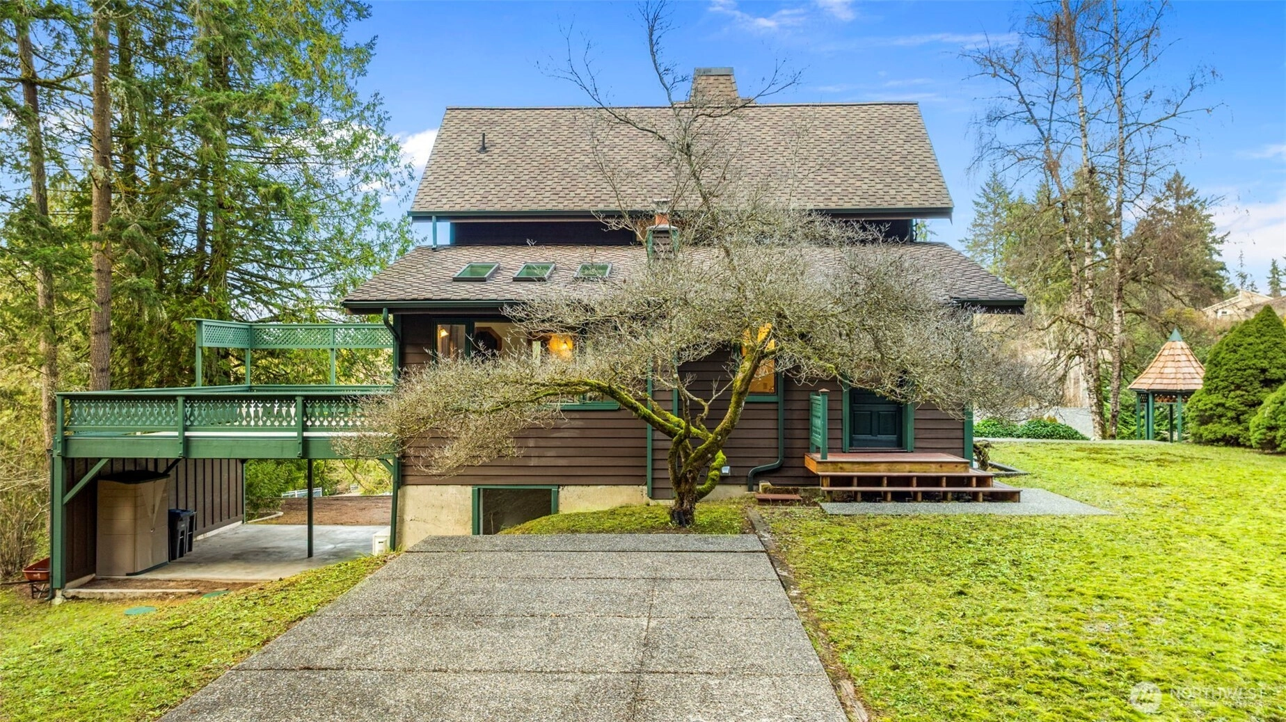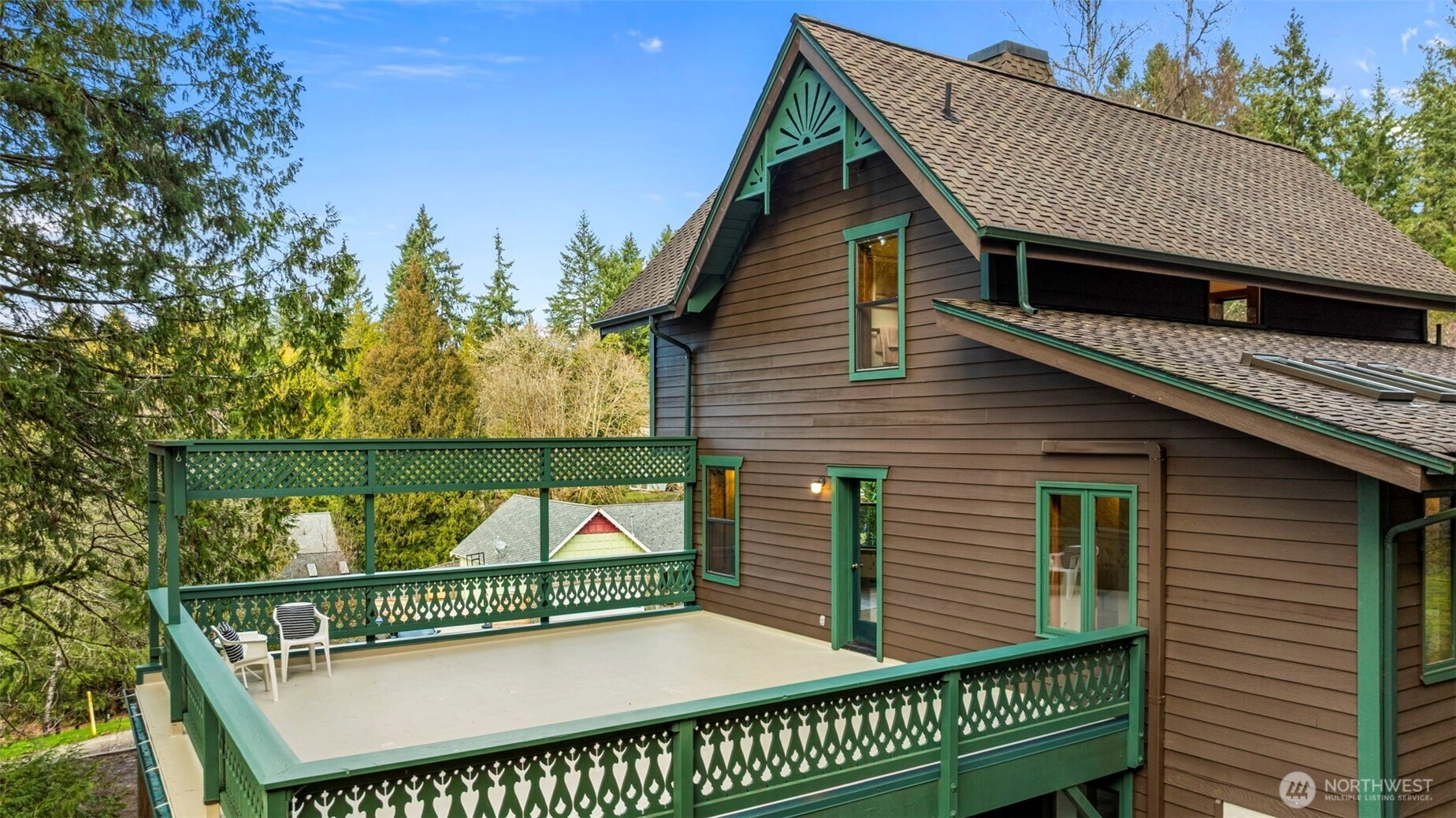 Wonderfully unique, one owner 3BR + Bonus Victorian chalet with absolutely gorgeous comfortable aesthetic. Custom built, quality construction, top to bottom. This home has all the charm, character, space and flow for enjoying special moments with loved ones inside & out. Pride of ownership shows at every turn: Pristine hardwood floors, warm tongue and groove pine ceilings & refined exposed wood beams. Spacious welcoming dining opens to kitchen, enchanting living room w/ beautiful built-ins, oversize airy sitting room off kitchen w/ vaulted ceilings, skylights & wood stove. New carpet, lvp, interior paint and recently updated bathrooms with custom tile. Light and bright 500+ SF, west-facing deck off living room + big level yard, perfect for summer fun and enjoyment. Lower level family room plus 2 additional BR's, 3/4 bath and walk out to yard. Solid wood windows with wood wrap. Efficient Mini-splits for heat and AC. RV parking. This large elevated lot is nestled in a quiet wooded Central Kitsap neighborhood. Mins to Silverdale/Bremerton shopping & bases. Award winning CK Schools.