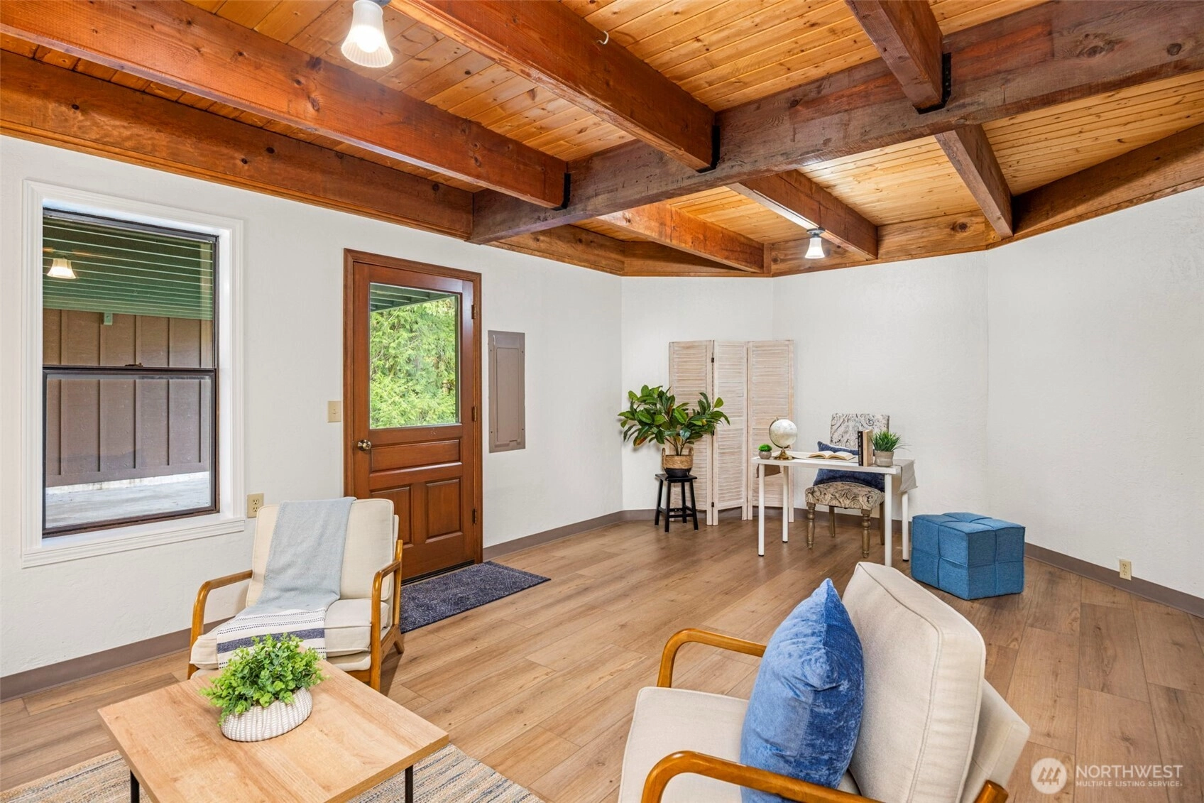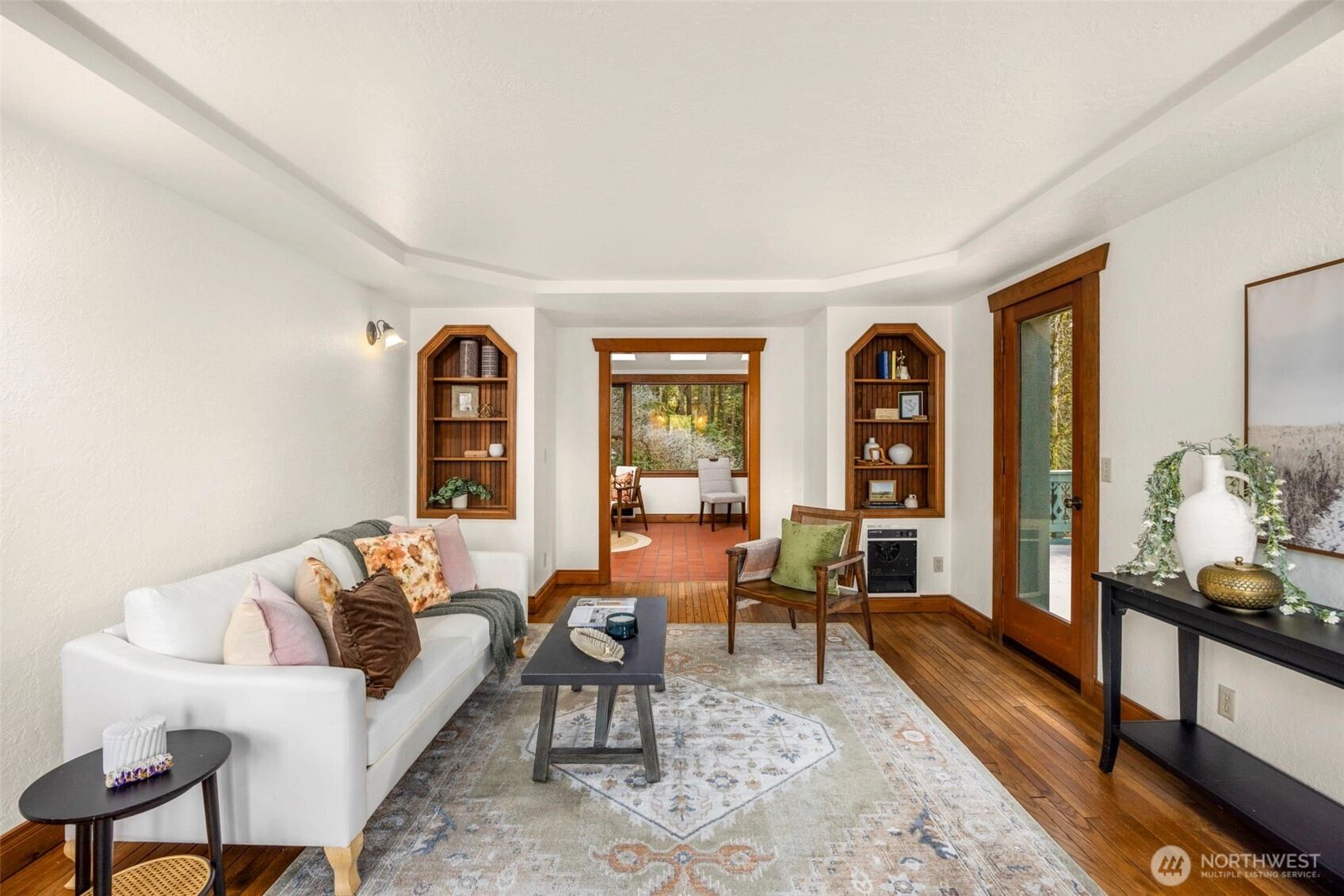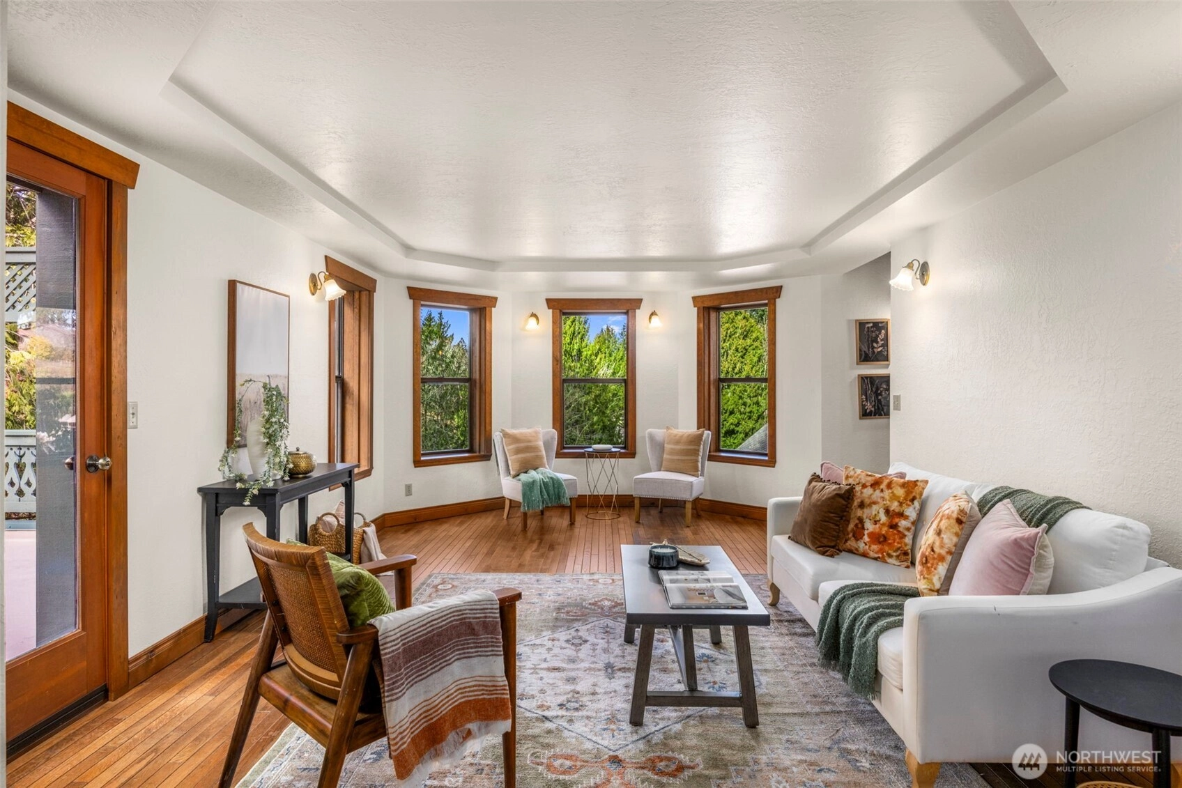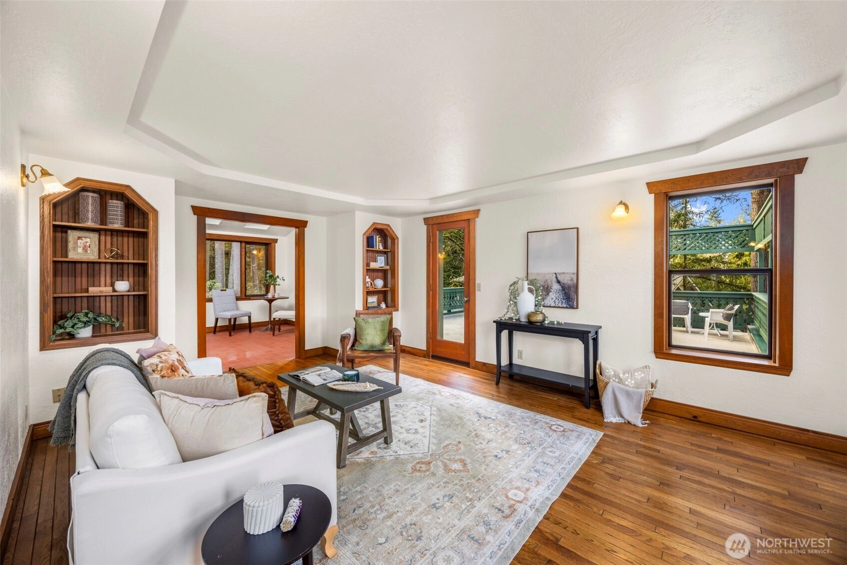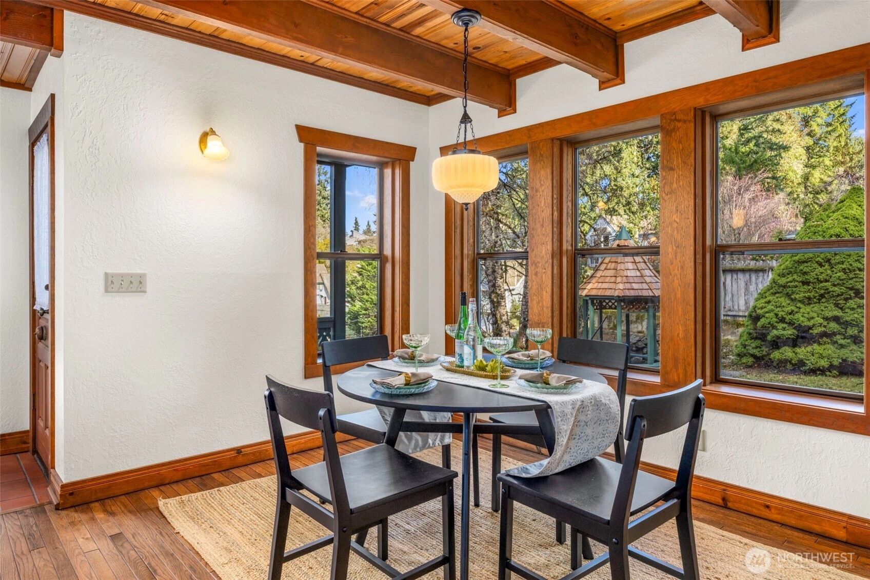 Wonderfully unique, one owner 3BR + Bonus Victorian chalet with absolutely gorgeous comfortable aesthetic. Custom built, quality construction, top to bottom. This home has all the charm, character, space and flow for enjoying special moments with loved ones inside & out. Pride of ownership shows at every turn: Pristine hardwood floors, warm tongue and groove pine ceilings & refined exposed wood beams. Spacious welcoming dining opens to kitchen, enchanting living room w/ beautiful built-ins, oversize airy sitting room off kitchen w/ vaulted ceilings, skylights & wood stove. New carpet, lvp, interior paint and recently updated bathrooms with custom tile. Light and bright 500+ SF, west-facing deck off living room + big level yard, perfect for summer fun and enjoyment. Lower level family room plus 2 additional BR's, 3/4 bath and walk out to yard. Solid wood windows with wood wrap. Efficient Mini-splits for heat and AC. RV parking. This large elevated lot is nestled in a quiet wooded Central Kitsap neighborhood. Mins to Silverdale/Bremerton shopping & bases. Award winning CK Schools.