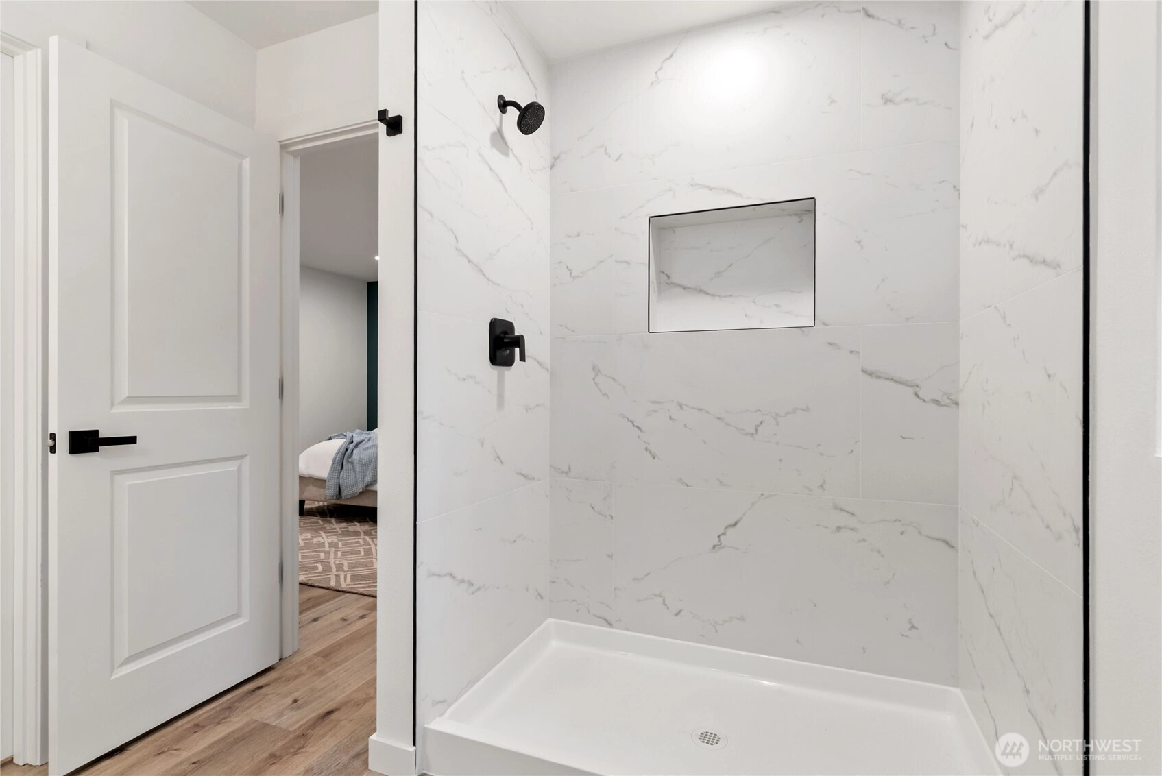 New Construction in Lakebay! Discover the perfect blend of privacy and coastal charm on this level 2.5-acre lot in the serene Joemma Beach Farms community. Set on paved streets with a private neighborhood trail leading directly to Joemma Beach State Park, this beautifully crafted 3-bedroom, 1.75-bath rambler with a bonus room/office offers peaceful living surrounded by nature. Step inside to an open-concept layout with vaulted ceilings, accent paneled walls, and modern LED lighting throughout. The spacious great room showcases a stunning stone surround fireplace with designer accent paneling, creating a warm yet sophisticated focal point. The kitchen is thoughtfully designed with quartz countertops, stylish backsplash, and ample cabinetry, perfect for everyday living and entertaining. The primary bedroom is a true retreat, featuring beautifully designed wall paneling with elegant sconce lighting that adds warmth and character. The primary bath offers a spacious tiled shower for a sleek, spa-inspired feel. Generous secondary bedrooms provide comfort and flexibility, while the bonus room is ideal for a home office, flex space, or guest retreat. Stay comfortable year-round with A/C. Relax on the covered back patio overlooking your expansive 2.5-acre property. Plenty of space for RVs, boats, and extra parking. A rare opportunity to own brand-new construction in a private setting. Just minutes to Gig Harbor and Key Center amenities.