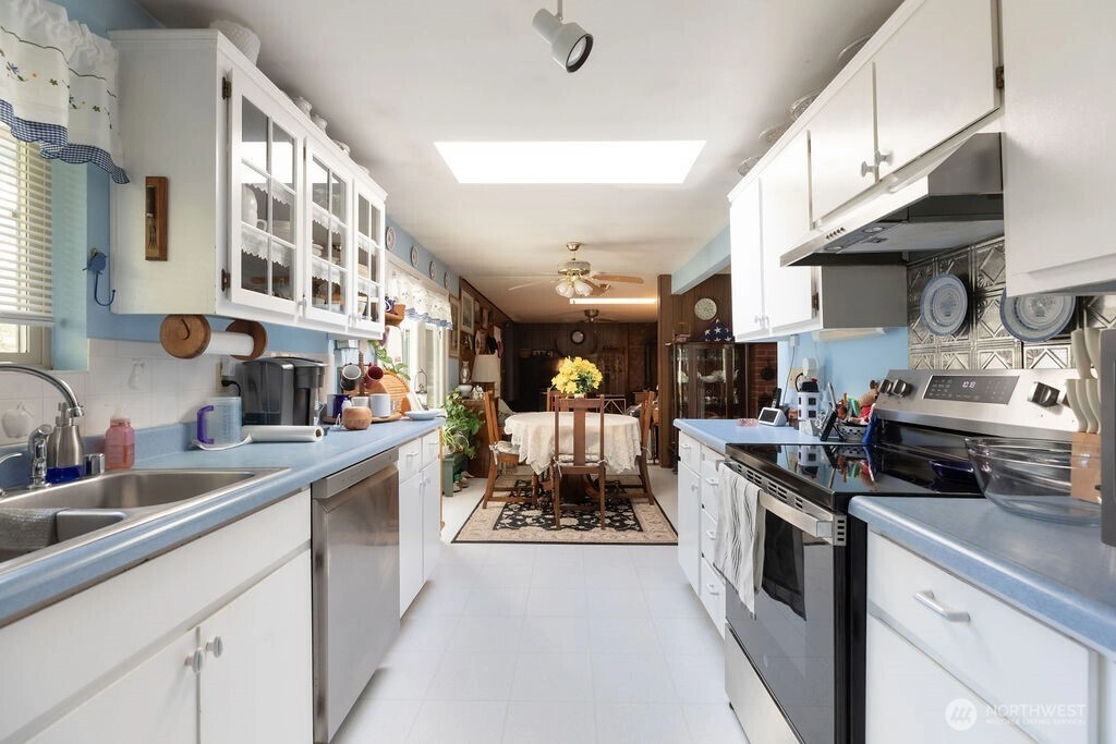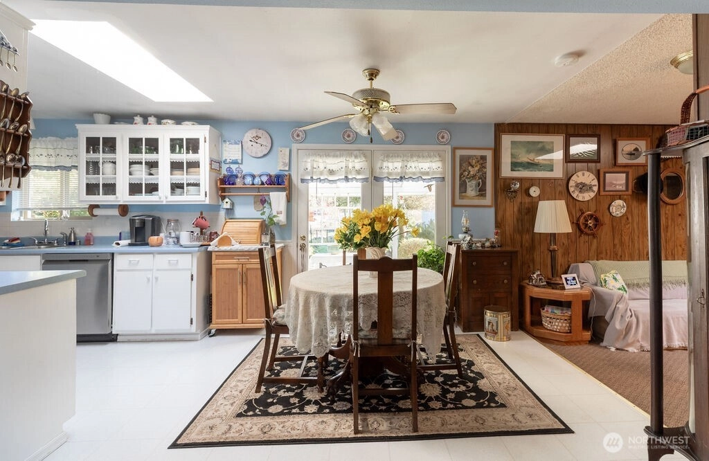 Welcome to this wonderful 3-bedroom, 1,410 sq. ft. home built in 1972, located in a desirable neighborhood featuring quiet cul-de-sacs and well-maintained yards. Inside, you’ll find a bright and inviting living space enhanced by three skylights that fill the home with natural light. Enjoy year-round comfort with a heat pump and cozy wood stove. The home features laminate flooring and several newer appliances, including a refrigerator (just two weeks old), dishwasher (2 years old), and included washer and dryer. The cooking stove even includes an air fryer feature for added convenience. The 30-year composition roof has over 8 years of life remaining, offering peace of mind. Step outside to enjoy the great yard with mature trees, gardening space, and established strawberry patches and raspberries. A covered patio provides the perfect spot for relaxing or entertaining .Car enthusiasts, hobbyists, or those needing extra space will love the very large metal garage/shop complete with its own bathroom, sink, and stove, ideal for projects, storage, or entertaining. There’s ample room for multiple cars, boats, and RVs. The property also includes additional water and power hookups for RV parking. This home offers comfort, functionality, and space both inside and out, don’t miss this opportunity!