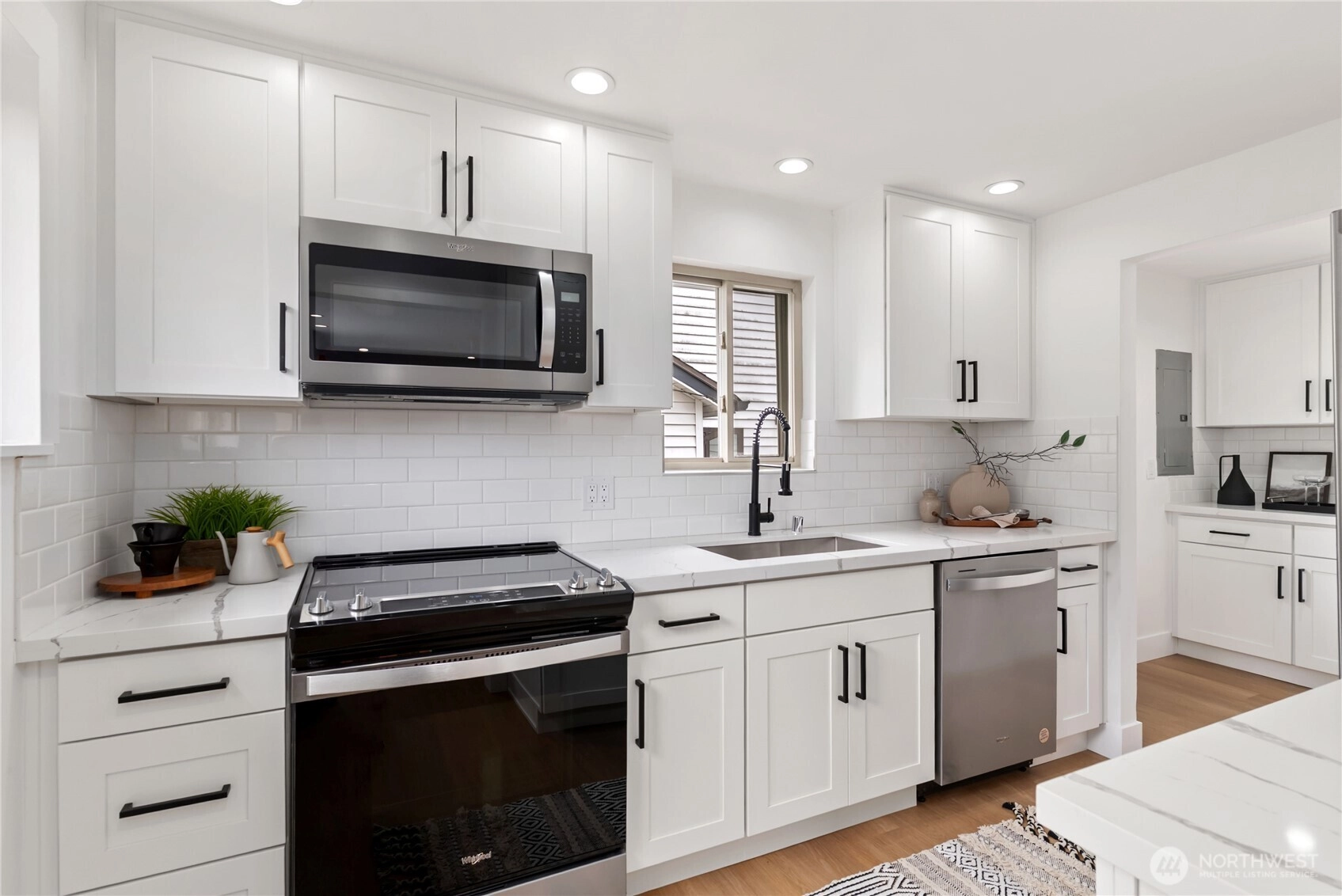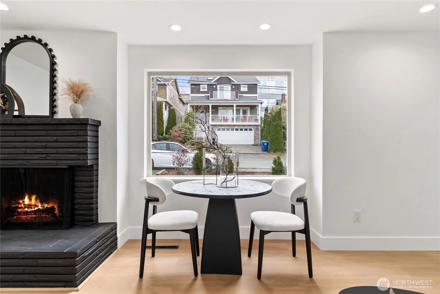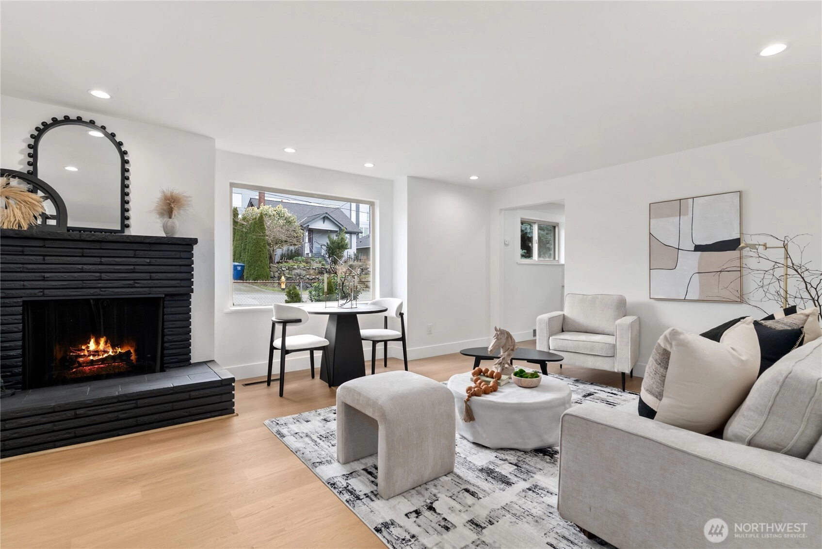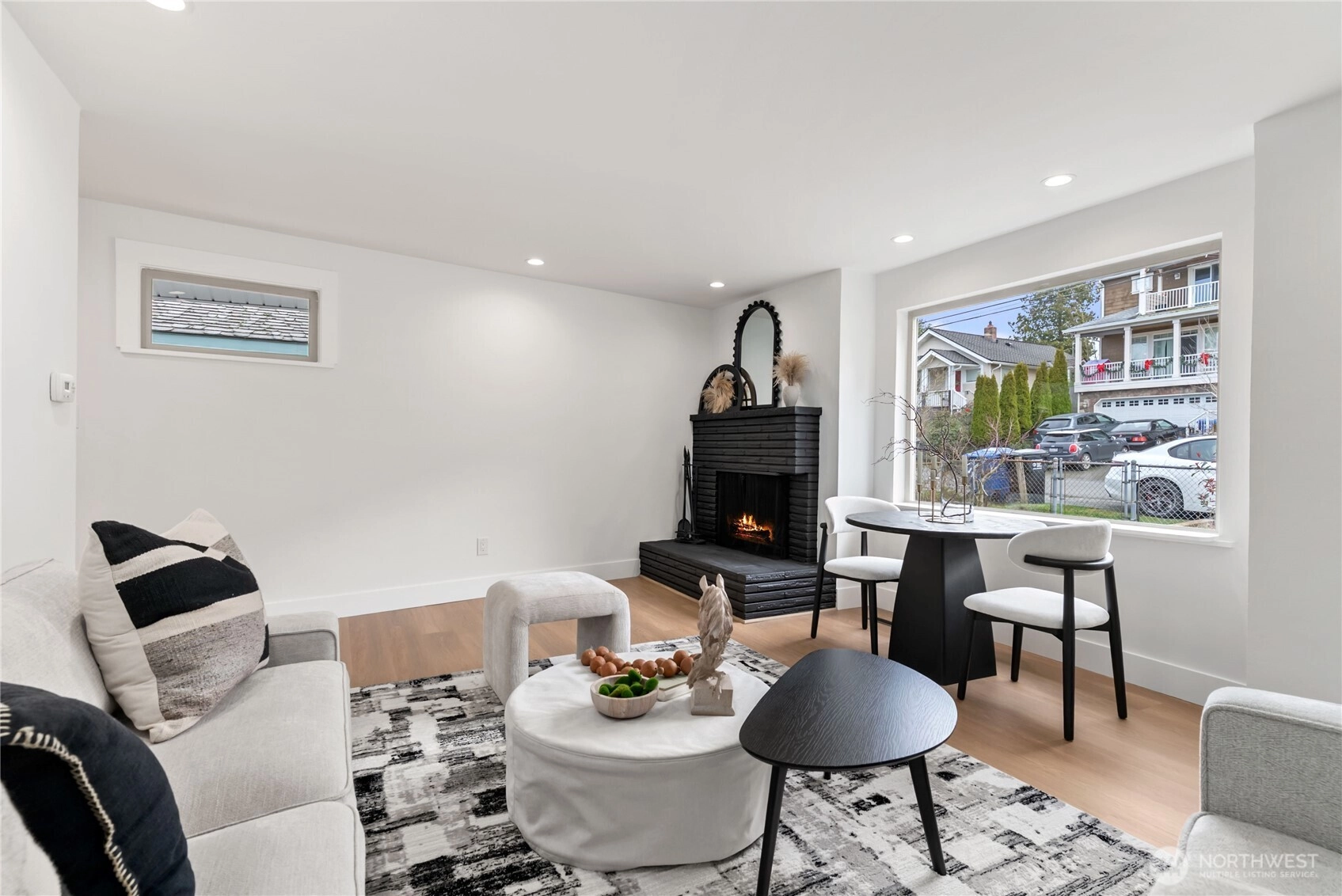 Welcome home to this stunningly updated residence offering the perfect blend of modern comfort and premier urban convenience. Ideally positioned with street parking and rear alley access, the property features a garage with exceptional potential for future DADU conversion or expansion. Located just moments from Metropolitan Market Crown Hill, this home delivers the very best of Ballard living. The main level showcases a light-filled living room anchored by a classic wood-burning fireplace, creating a warm and inviting atmosphere. Two spacious bedrooms and a beautifully updated full bath complement the thoughtfully redesigned kitchen, featuring stainless steel appliances, soft-close cabinetry, quartz countertops, pantry, and a stylish bar area ideal for everyday living and entertaining. New flooring and fresh interior paint elevate the home’s refined aesthetic. The lower level offers exceptional flexibility with an additional bedroom, expansive utility space, dedicated laundry room, and a ¾ bath, along with private exterior access—perfect for guests, extended living, or income potential. The fully fenced backyard provides privacy and functionality, while the Tesla charger adds modern convenience. This exceptional property captures the essence of Seattle living—stylish, versatile, and ideally located near top dining, shopping, and neighborhood amenities. Come tour today.