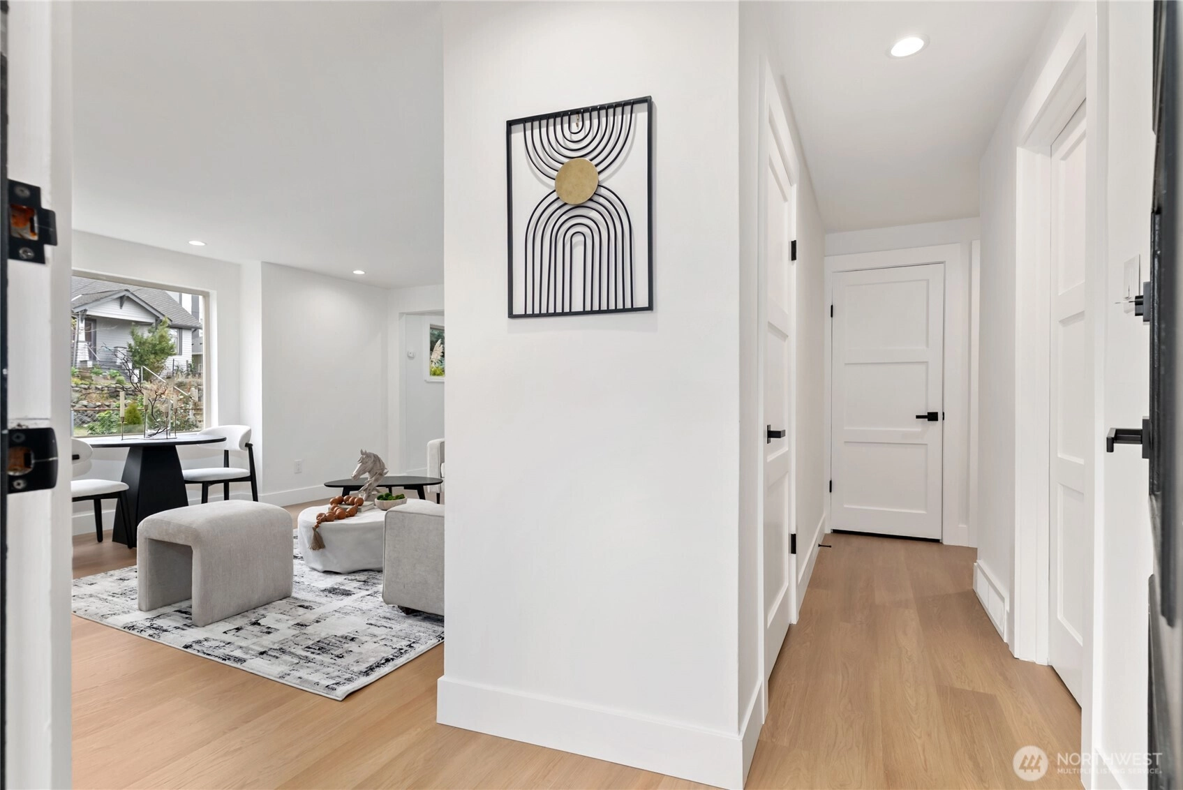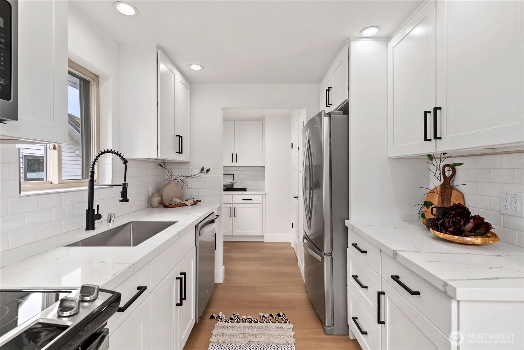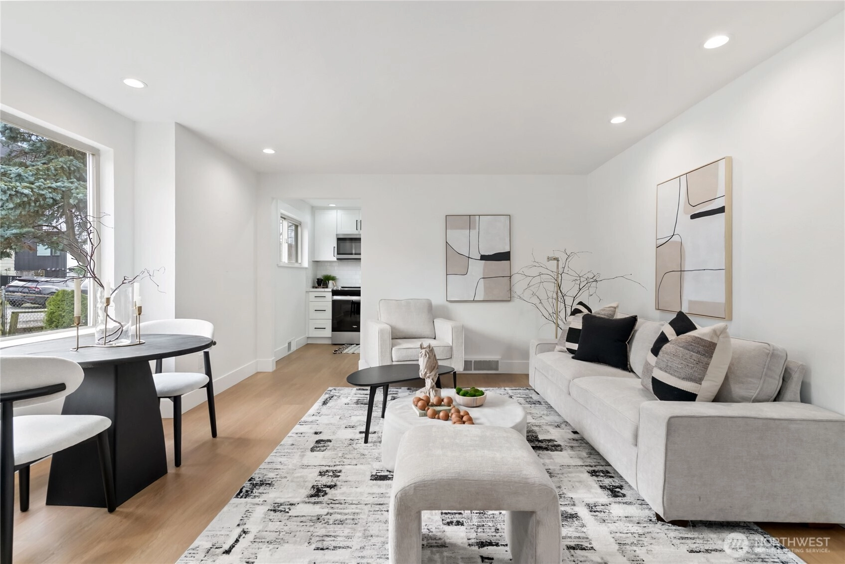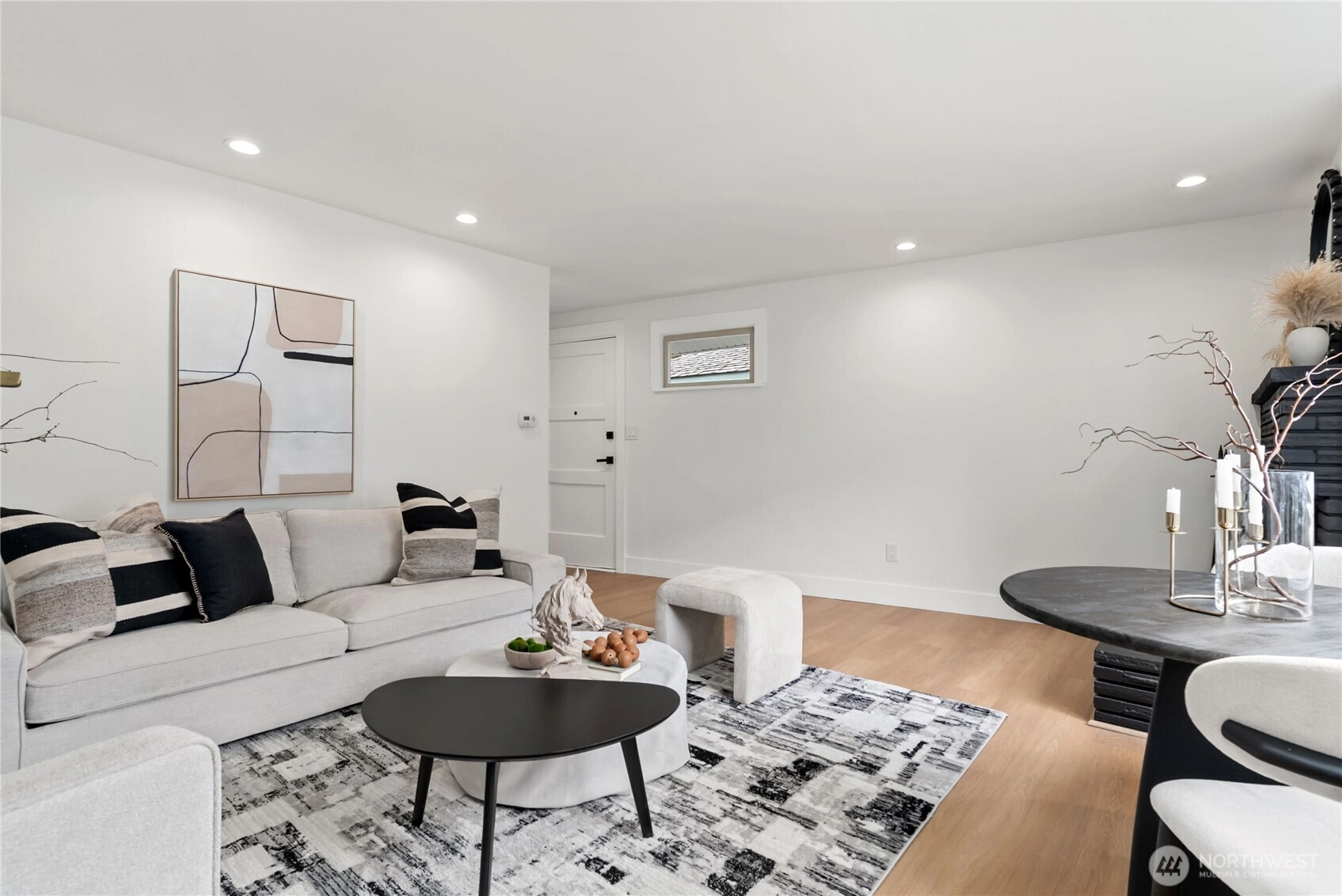 Welcome home to this stunningly updated residence offering the perfect blend of modern comfort and premier urban convenience. Ideally positioned with street parking and rear alley access, the property features a garage with exceptional potential for future DADU conversion or expansion. Located just moments from Metropolitan Market Crown Hill, this home delivers the very best of Ballard living. The main level showcases a light-filled living room anchored by a classic wood-burning fireplace, creating a warm and inviting atmosphere. Two spacious bedrooms and a beautifully updated full bath complement the thoughtfully redesigned kitchen, featuring stainless steel appliances, soft-close cabinetry, quartz countertops, pantry, and a stylish bar area ideal for everyday living and entertaining. New flooring and fresh interior paint elevate the home’s refined aesthetic. The lower level offers exceptional flexibility with an additional bedroom, expansive utility space, dedicated laundry room, and a ¾ bath, along with private exterior access—perfect for guests, extended living, or income potential. The fully fenced backyard provides privacy and functionality, while the Tesla charger adds modern convenience. This exceptional property captures the essence of Seattle living—stylish, versatile, and ideally located near top dining, shopping, and neighborhood amenities. Come tour today.