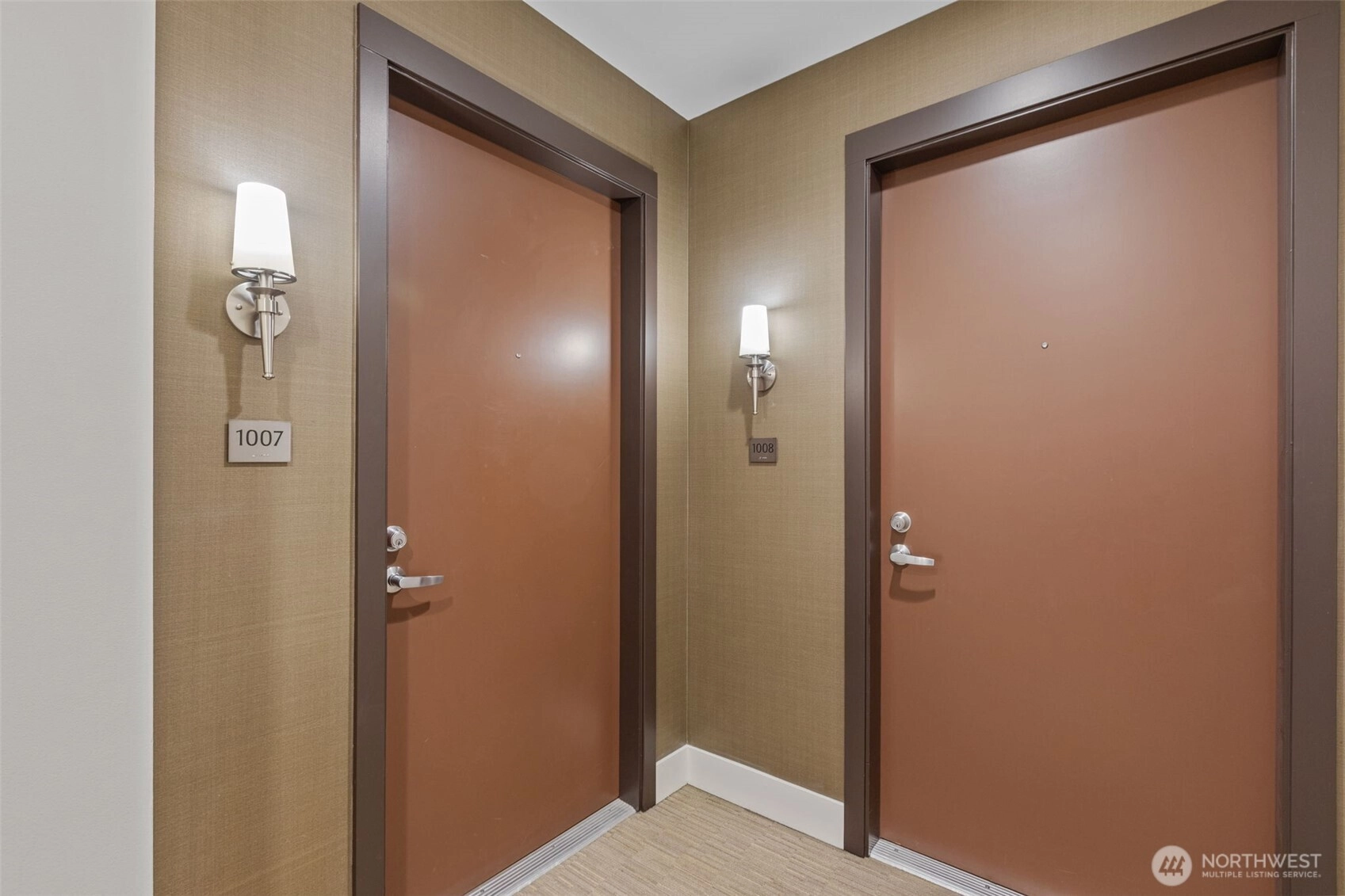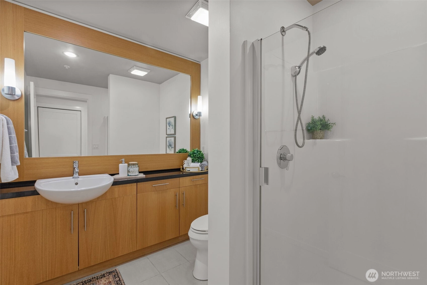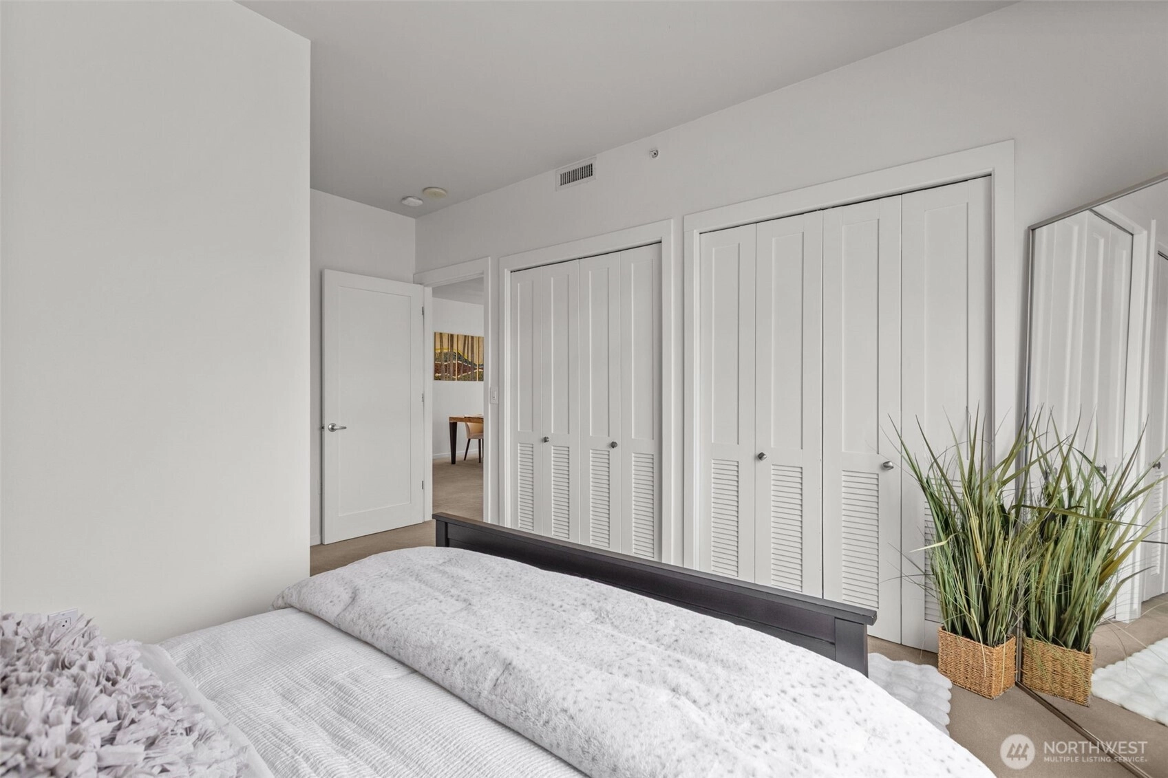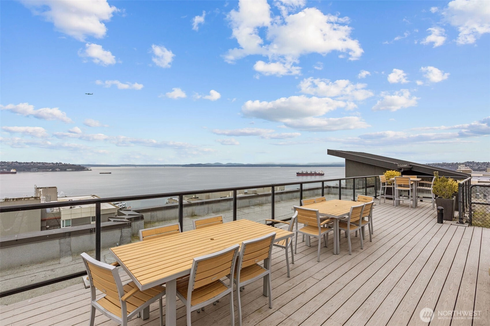 Own Iconic Space Needle views from this 10th-floor, 2-bedroom residence in sought-after Avenue One. Ideally located within walking distance to downtown, and the new waterfront park, this home offers the best of city living while providing a peaceful retreat from the street below. The open-concept layout is filled with natural light and features a gourmet kitchen with Viking gas range, stainless steel appliances, and slab granite countertops. Open concept living space, ideal for entertaining. The primary suite includes California Closets, while the second bedroom offers flexibility with a Murphy bed and built-in desk. Additional features include central A/C, in-unit laundry, storage, and 2 secure parking spaces. Full-service building amenities include concierge, club room, fitness center, guest suite, and a rooftop deck with panoramic city and water views.