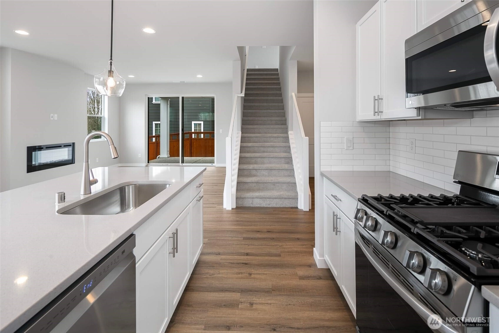 4 HOMES REMAINING! Ask about our $40,000 Incentive Promotion! Move-in-ready luxury awaits in Conner Homes’ Altamura community, where modern elegance meets exceptional Seattle convenience. The brand-new A2 Plan offers a light-filled open-concept design perfect for entertaining and everyday living. The kitchen anchors the home with quartz countertops, a designer tile backsplash, under-cabinet lighting, abundant cabinetry, and ample prep space. The main level features stylish luxury vinyl plank flooring, a sleek electric linear fireplace, a main-floor bedroom ideal for guests or multi-generational living, a pocket office, and a beautifully appointed ¾ bath. Upstairs, the expansive primary suite provides a private retreat with a spa-inspired five-piece bath, double vanities, an oversized walk-in shower, and a freestanding soaking tub. Three additional spacious bedrooms and a versatile bonus room offer flexibility for work, play, or relaxation. Enjoy a fully fenced, professionally landscaped yard and a covered porch with a gas BBQ stub—perfect for year-round outdoor living. Ideally located near parks, trails, shopping, dining, and daily essentials, with easy access to commuter routes and transit. Buyer’s broker must register the buyer on or before the first visit to receive full compensation.