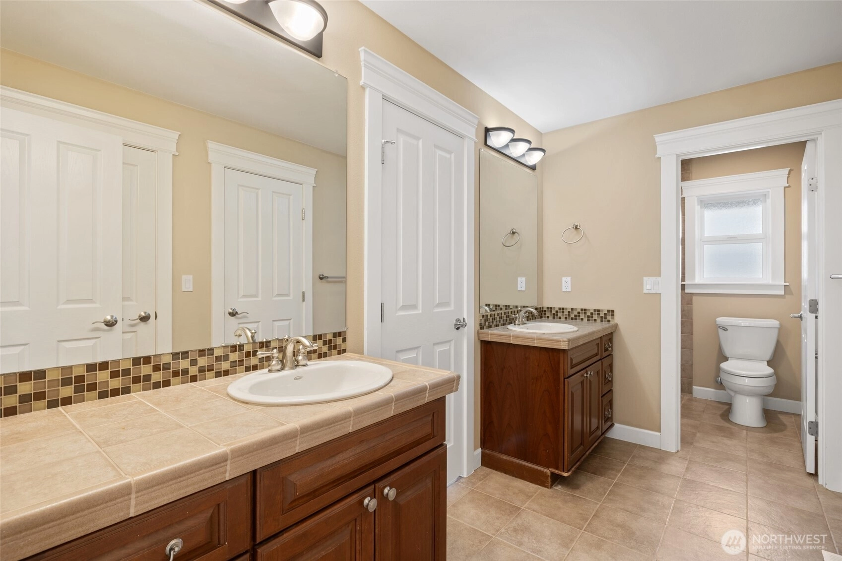 Impeccably maintained, exceptionally spacious, and beautifully designed—this Northshore School District home truly stands apart. A small-maintenance yard paired with a generously sized, feature-rich interior creates the perfect blend of comfort and convenience. Step inside to discover extravagant painted millwork, extensive cherry cabinetry, and a boxed-beam ceiling with elegant dining columns. The dining area includes a built-in buffet with wet bar and wine cooler, while the stunning island kitchen features a 6-burner gas cooktop and slab granite surfaces—ideal for both everyday cooking and entertaining. The grand primary suite offers a serene sitting area, a double-sided fireplace, and a luxury spa bath complete with separate vanities and an impressive 9-head shower. Additional bedrooms are extra-large and include a dual-vanity bath for added convenience. Recent updates include new carpet, refinished hardwood floors, and fresh interior paint, & a storage loft in garage - making this home truly move-in ready. A must-see property that delivers space, style, and exceptional craftsmanship; all located only blocks from Kirkland.