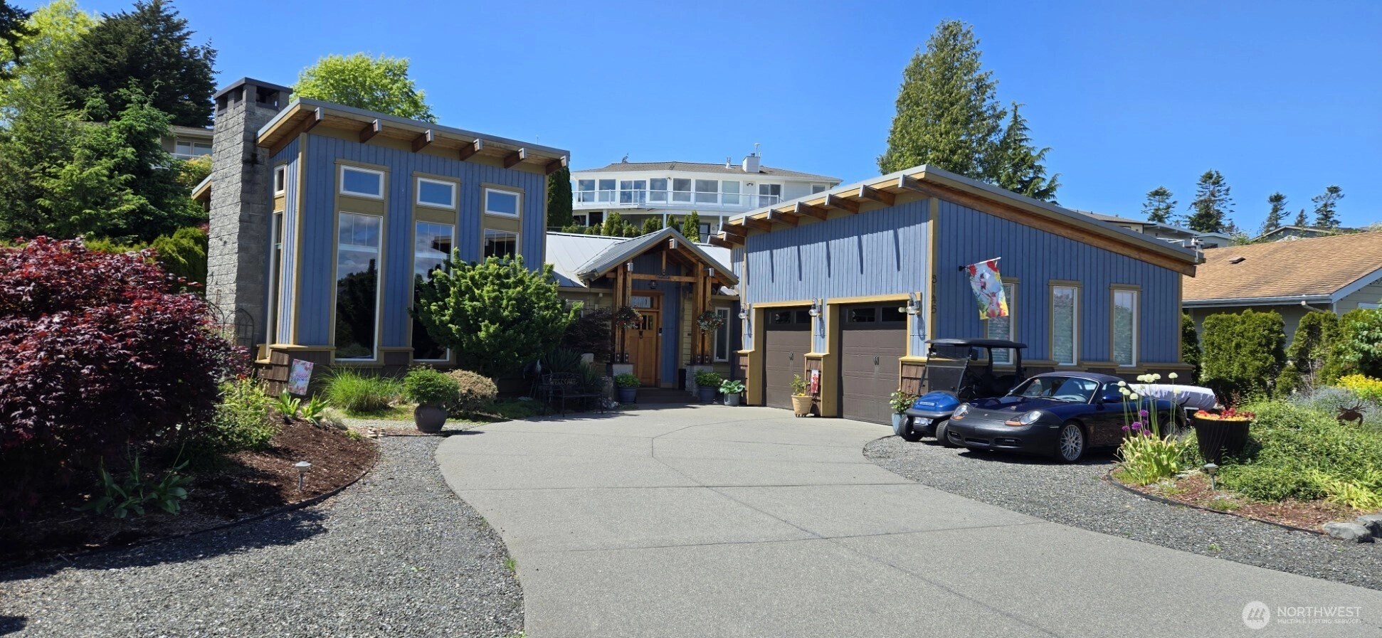 One of Birch Bay Village's finest homes with exceptional craftsmanship and design. No details were left out in this stunning and contemporary style 3 bedroom 2 bath masterpiece. Custom appealing finishes include Brazilian cherry hardwood, porcelain and slate flooring, clear Douglas Fir cabinetry and interior trim, and high vaulted ceilings which lead to a suspended office that overlooks a large wide open great room. This home has been tastefully updated including the primary bathroom...a must see! Well maintained & beautifully landscaped backyard with amazing waterfall, hottub and Baker to Bay views from the upper landing. Enjoy all that Birch Bay has to offer including golf, beaches, new marina, pool, pickleball and 24 hour security gate.