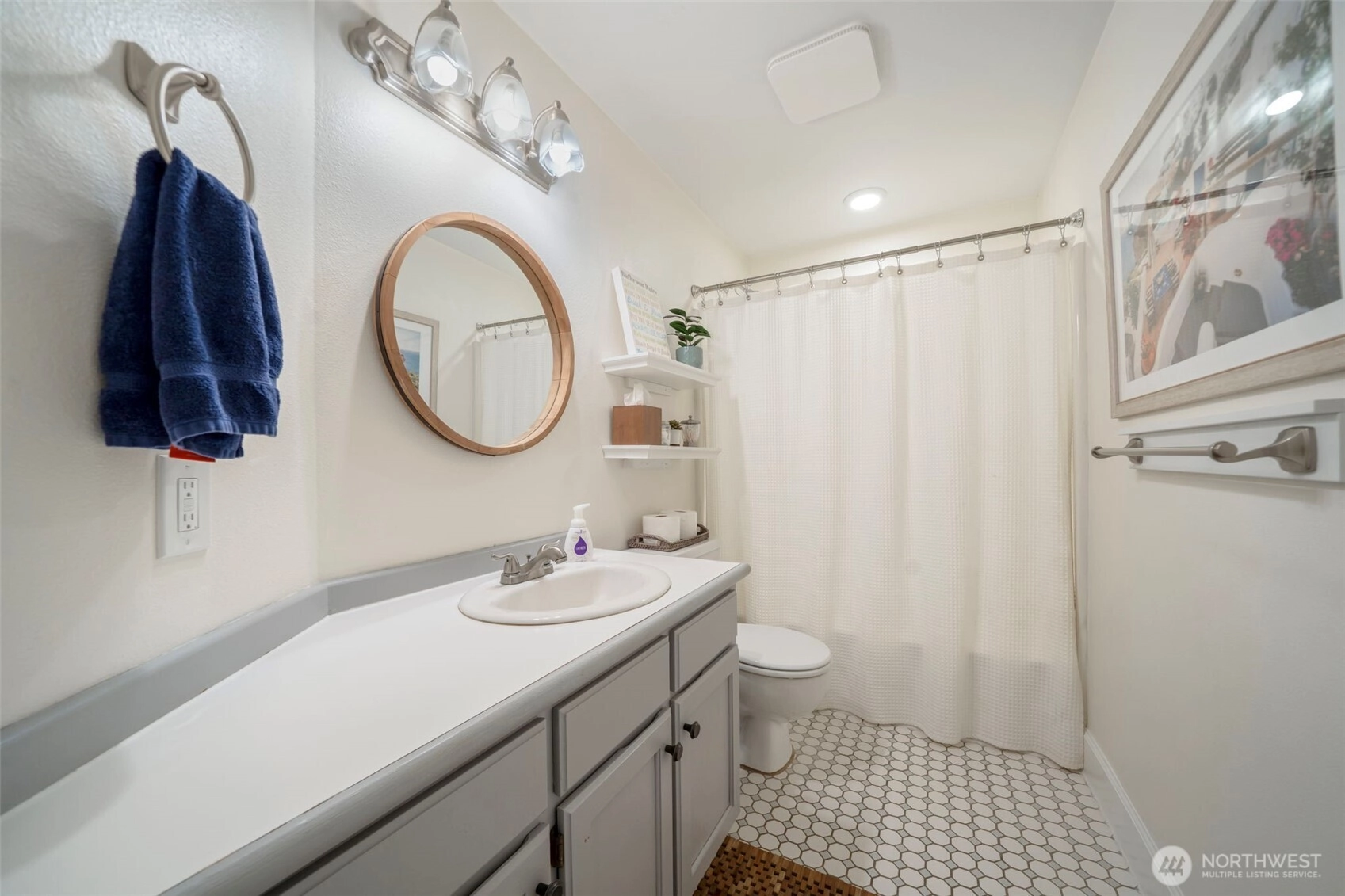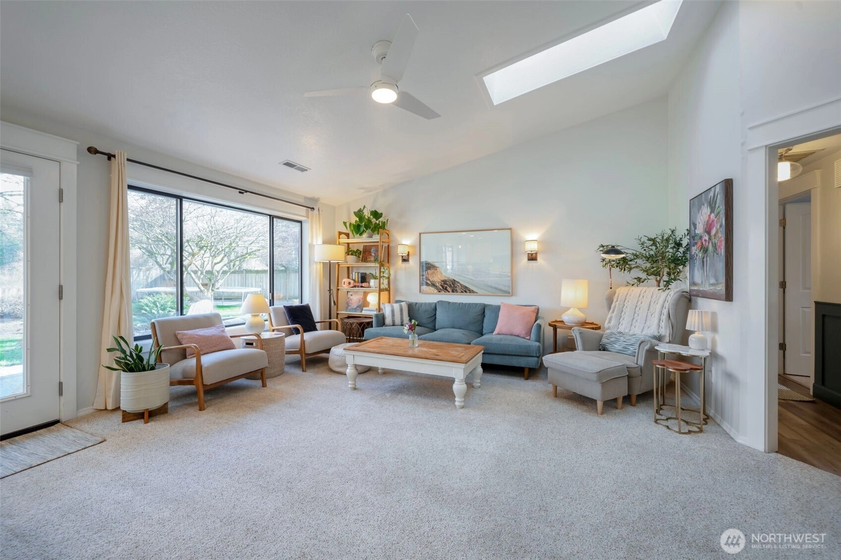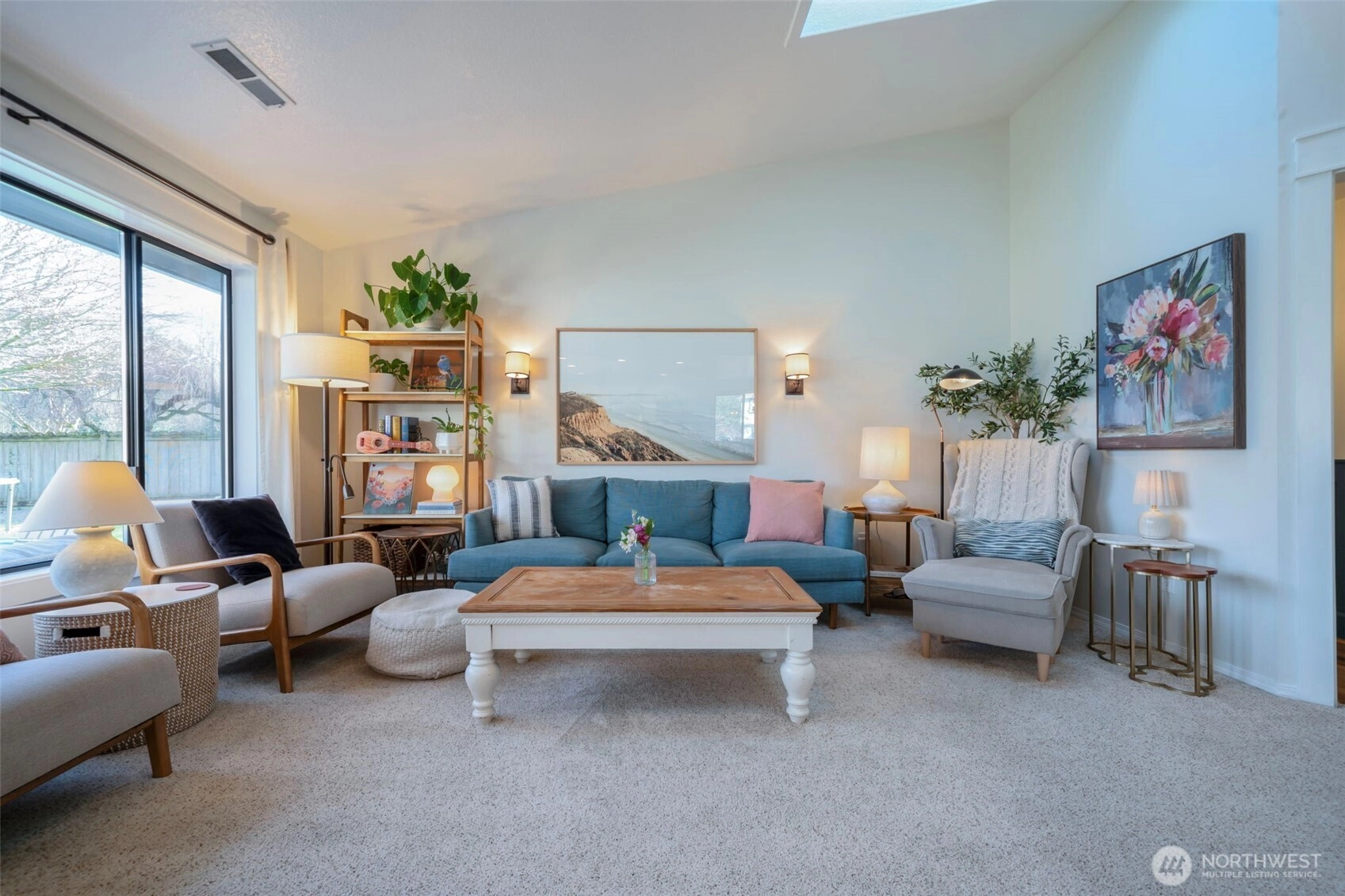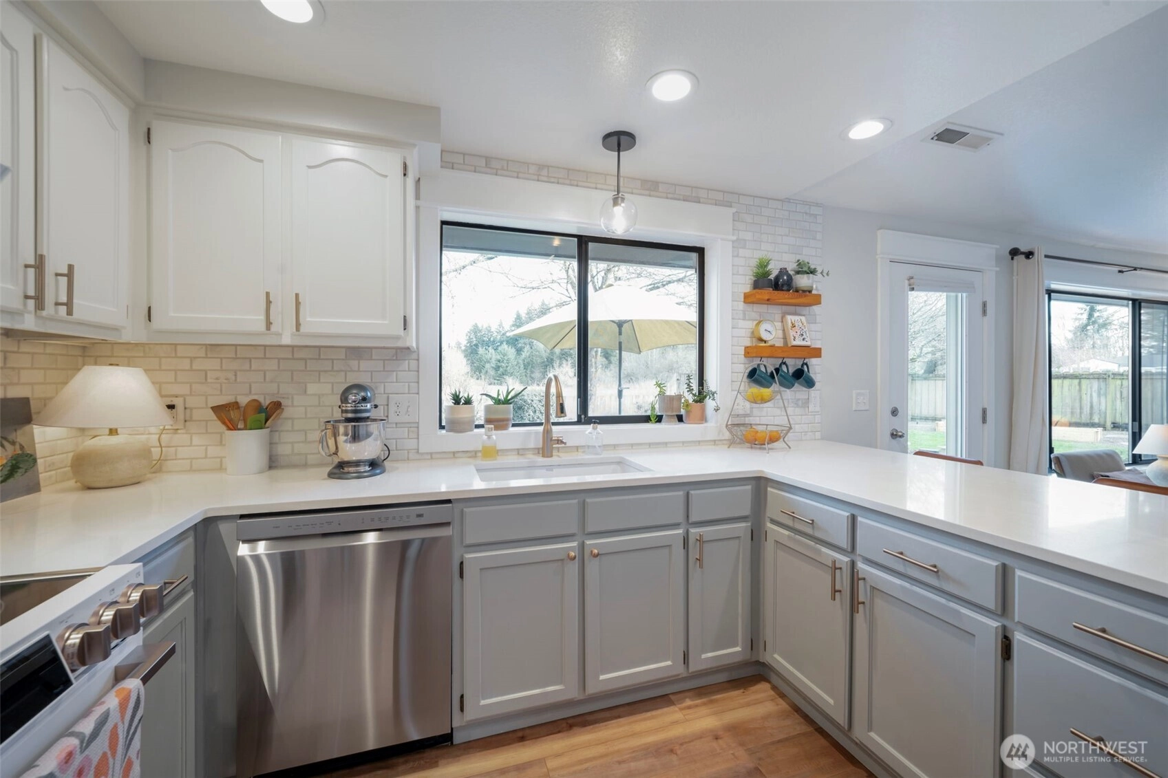 Tucked away at the end of a quiet dead-end street in Ridgefield, this secluded corner-lot retreat offers the perfect blend of privacy, comfort, and refined style. From the moment you arrive, manicured landscaping and undeniable curb appeal set the tone for what awaits inside. This beautifully maintained single-level home features 3 bedrooms, 2 full baths, and a spacious 2-car garage, thoughtfully designed for effortless living.Step inside to discover lvp floors flowing through open-concept living areas, where vaulted ceilings in the great room create an airy, light-filled ambiance. The kitchen is a true showpiece, highlighted by striking two-tone cabinetry—crisp white uppers paired with sophisticated grey lowers—complemented by white quartz countertops and sleek stainless steel appliances. An inviting eating bar and charming breakfast nook make everyday living and entertaining seamless.The private primary suite offers a full en-suite bath for your own tranquil escape. Outside, the oversized patio overlooks a large, level, fully fenced backyard—ideal for gatherings, play, or peaceful evenings under the open sky. Rarely does a home combine such seclusion, thoughtful design, and modern elegance in one exceptional setting.