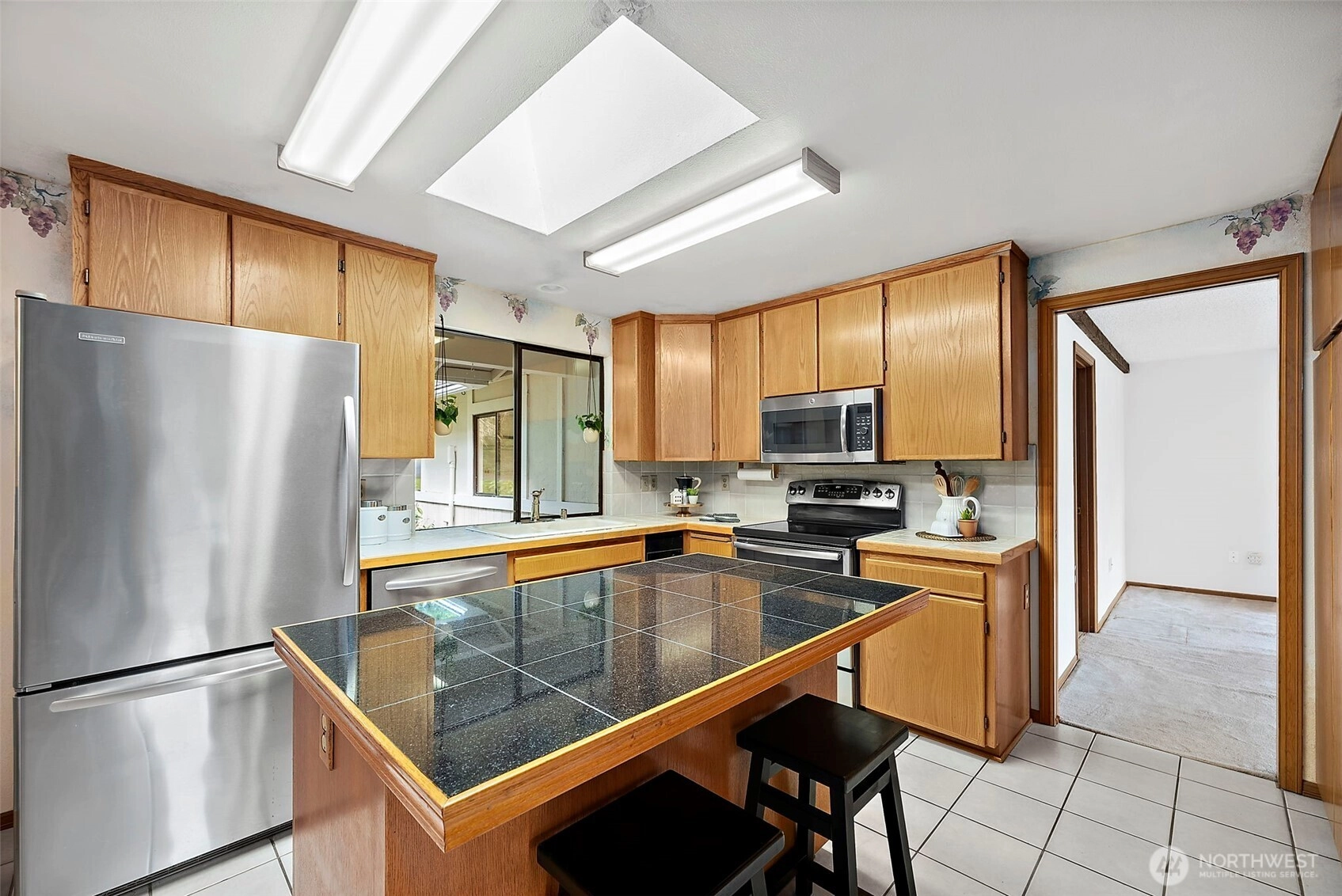 I love this house. You’ll probably love it, too, if you appreciate what you read here… In its heyday, I’ll bet it was considered top notch – the bees knees, if you will. Some materials & finishes used when this house was built are clearly better than average. And it didn’t end there. Over time, some improvements were made, also above average. Let’s start on the main level. Enter the front door into a welcoming foyer. Turn left into the kitchen, which offers ample counter space & stainless appliances along w/ a cozy dinette. From the kitchen, enter the family room w/ an ambient & functional fireplace, which flows to a formal dining room and continues to the formal living room. All three rooms embrace generous sizes and capture tranquil views, also enjoyed from a new deck. The primary BR allows a big bed & big furniture, and includes a big cedar lined closet. The bath has a walk-in shower. The 2 other BRs on this floor aren’t small. One is set up nicely as an office at this time. And there’s something very cool about the hall bath. The laundry room gains access to a ½ bath, the garage and stairs down. A 2nd kitchen, separate outside entrance and sizable living spaces suggest an in-law suite on this level. And wait’ll you see all the versatile storage space offered. The gate also encloses a private lot w/ lush vegetation and a 2nd detached garage. The locale of this gem? Ideal! A short drive to the popular Olalla Bay Market, Highway 16 or the Southworth Ferry.
