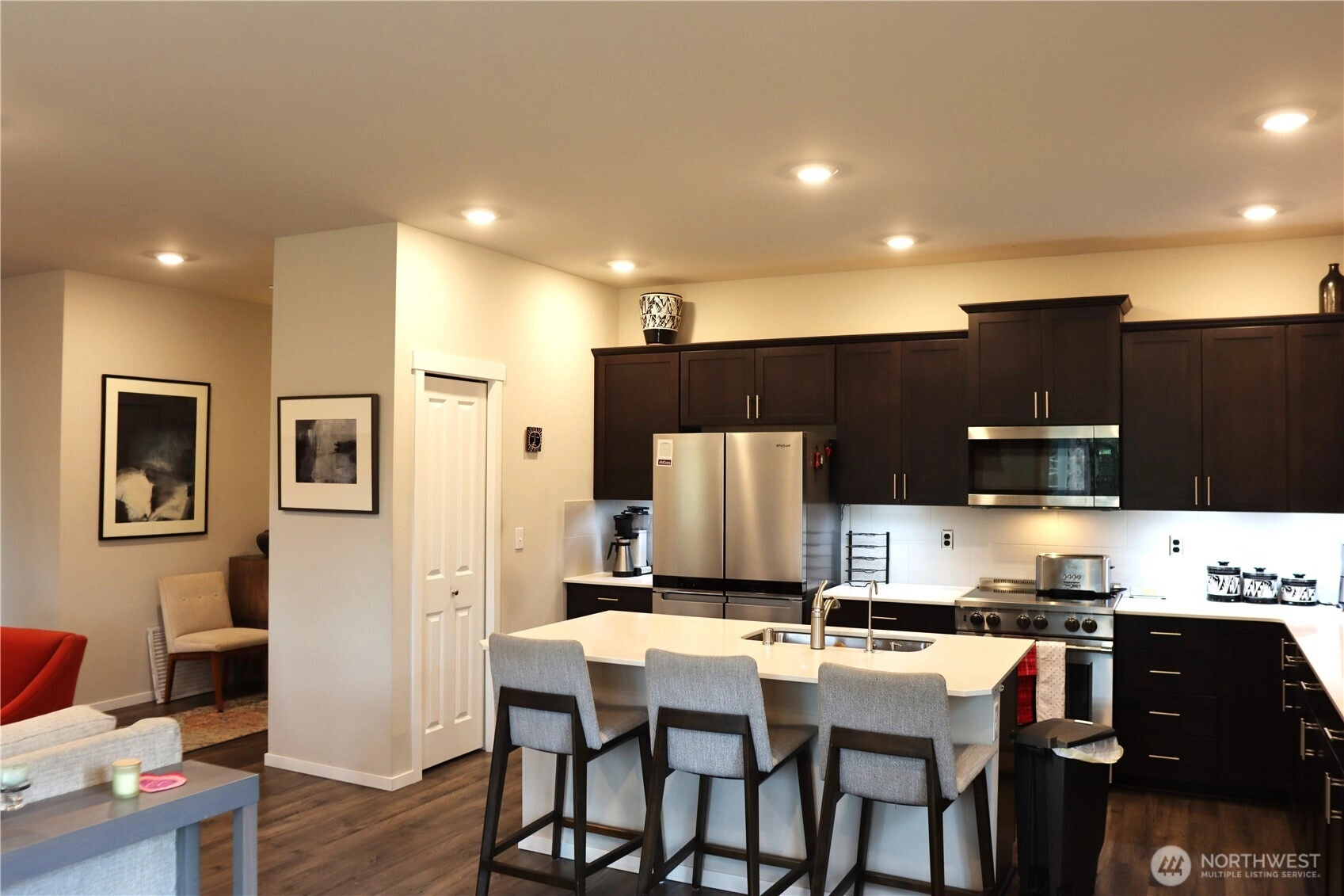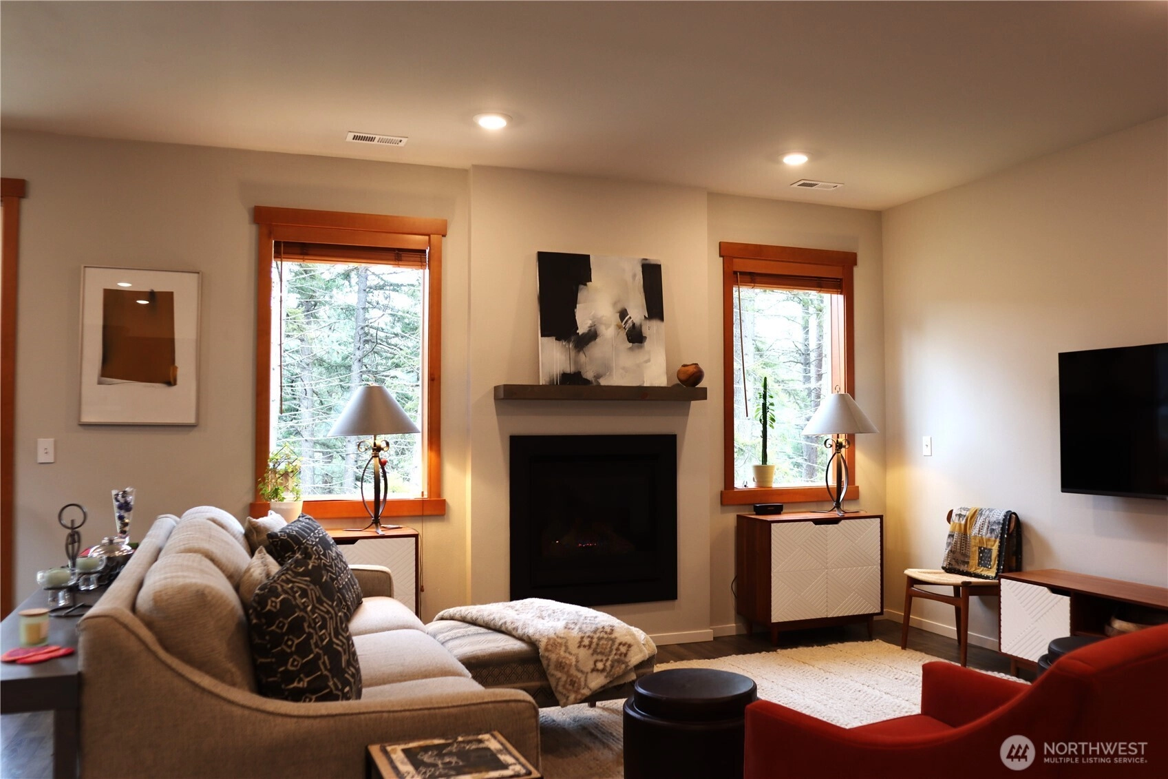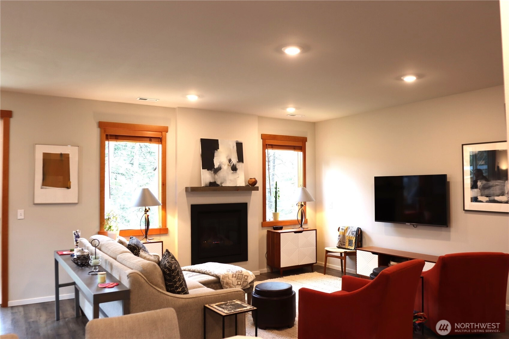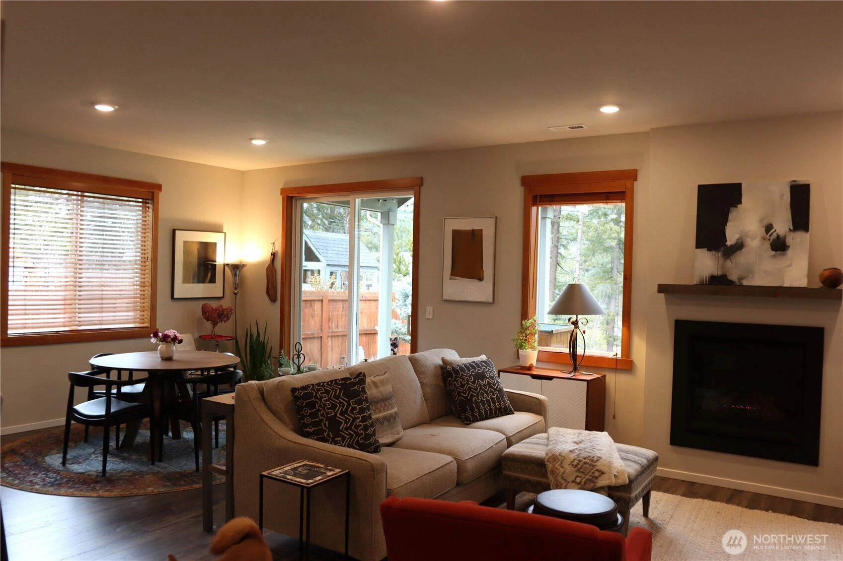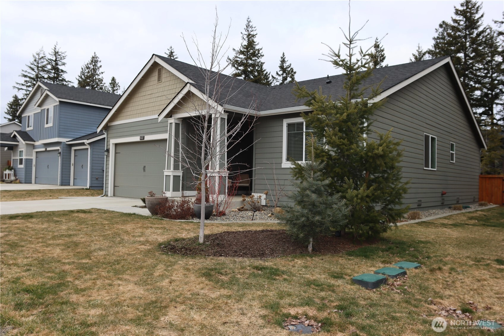 Fabulous Treed-View property with maximum privacy in the backyard. Nice flat yard front and back, with side fences in the back. Covered main entry with room for a couple of lawn chairs to enjoy the seasons. Customized Covered Outdoor Living Area with expanded backyard patio and updated 8' tall sliding glass door. Propane fireplace with upgraded circulating fan! Wonderful breakfast bar plus a large dining/kitchen table area. Nice Stainless Steel kitchen appliances with induction range, large fridge, dual drawer dishwasher, built in microwave and washer/dryer. Reverse Osmosis water supply at the kitchen sink. Laundry room has a large sink and custom countertop. Primary bedroom is in the back of the house with a large primary bath and walk in closet. Beautiful floors! Air Conditioning! Expansive 2+ car garage with its own mini-split heat and wall & ceiling storage. Rinnai Hot Water on Demand! Outdoor Yard Tool Storage shed. Yard Sprinkler system. Custom garden curbing! Cement Siding, Comp Roof. Nice property to call home! Paved sidewalks and trails all around! Backs to open space tract and Coal Mines Trail. Only a few blocks to all of the Cle Elum schools!