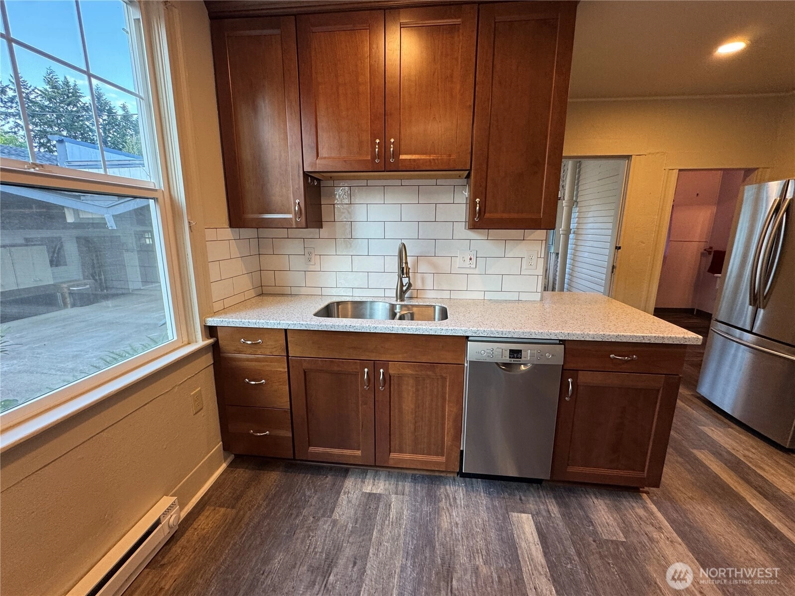 Beautifully updated 4 bedroom 2 bath home on 2 separate lots (1.25 acre). Lots are both level and meticulously maintained with a functional well for irrigation. Home features, new carpet upstairs, remodeled kitchen with new cabinets, countertops, flooring & lighting. Updated appliances with refrigerator, stove, dishwasher & range exhaust fan. Primary bedroom bathroom on main floor has new custom shower, vanity and flooring. Utility room has been remodeled and has washer and dryer hookups. Property has large detached garage and shop with reinforced driveway for heavy equipment & lots of additional parking. Lots of room to grow for possibly ADU or additional shop. Amazing yard, decks, green house and gardening space for relaxation and entertaining. All and just minutes to I-5, shopping, parks and schools.