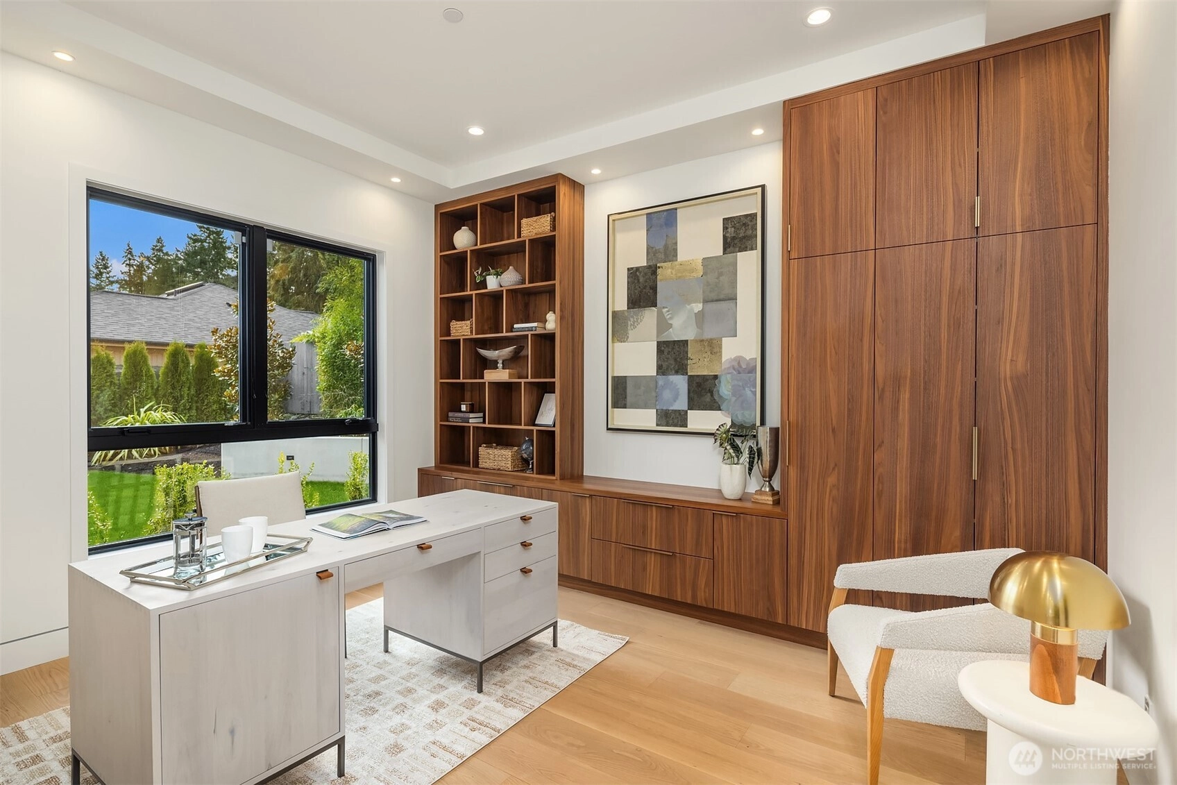 Experience the pinnacle of luxury living in this gorgeous custom-built home, where warm sophistication meets modern elegance. A grand 2-story entry sets the tone with soaring ceilings & a striking DaVinci fireplace — an artful welcome that instantly feels like home! The main level flows seamlessly from room to room, bathed in natural light & finished w/ extraordinary attention to detail. A home office w/ custom built-in cabinetry offers a work-from-home retreat, while the chef's kitchen is nothing short of a masterpiece. Wolf appliances, slab marble countertops, rich walnut cabinetry with European styling, & a cleverly concealed pantry combine beauty w/ serious culinary function. Upstairs, 4 bedrooms await, anchored by a primary suite with a spa-inspired bath, a curbless shower & marble tile. The lower level is an entertainer's dream: a wine cellar, guest suite, exercise room, rec room, wet bar, & theater room provide endless options for relaxation & hosting. Recessed lighting throughout creates a warm ambiance, while beautifully landscaped grounds & a 3-car garage completes this exceptional package. Step outside & find yourself in one of the Eastside's most coveted communities. Head to Medina Park to start your morning, or make your way to Medina Beach for the afternoon. Tee off at Overlake Golf & Country Club, just mins away. The area's top-rated schools reflect the high standards of this neighborhood. This is not just a home — it is the lifestyle you've dreamed of.