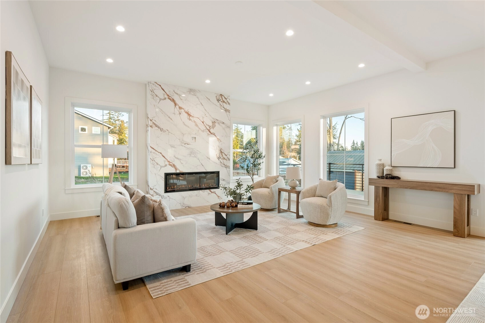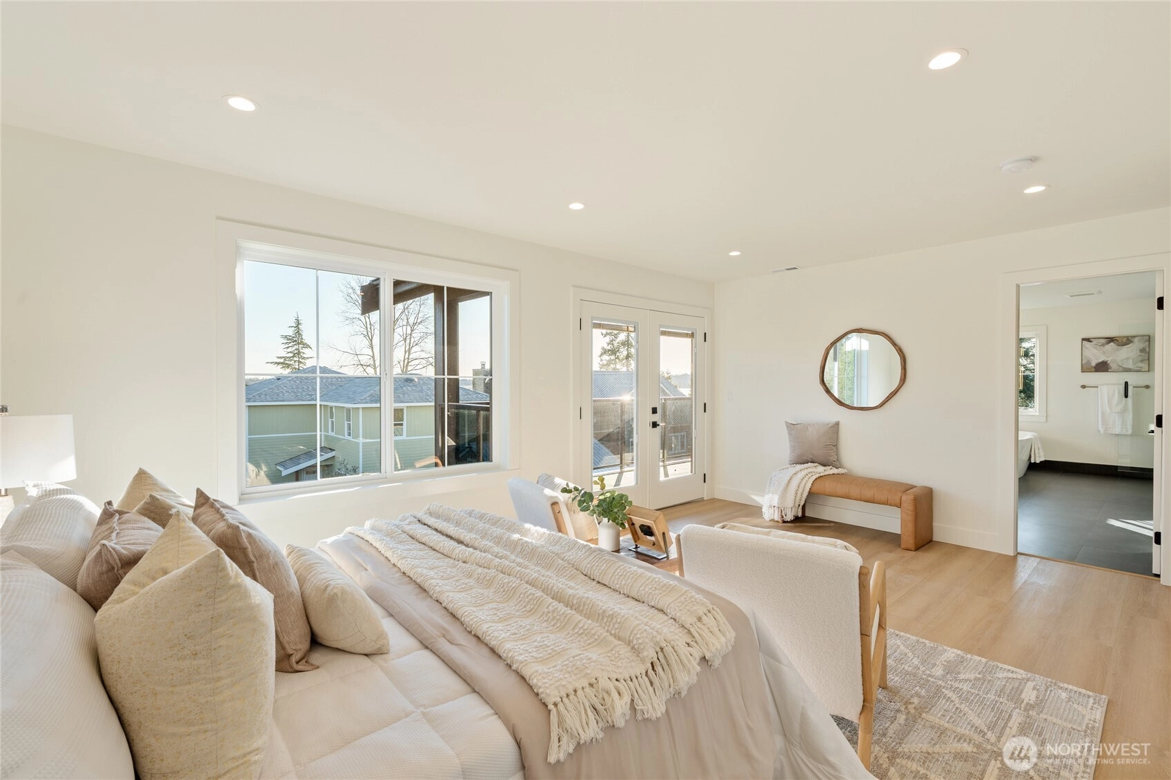 Stunning Modern New Construction Retreat with Bay Views! Discover luxury living in this beautifully designed 4-bedroom, 3-bathroom, 2-story home! Features two spacious primary suites. The upper unit has a Luxury bathroom with a soaker tub, tiled shower, and a large walk-in closet perfect for ultimate comfort and privacy. The open-concept living area seamlessly flows to a huge covered back deck with heaters, ideal for entertaining or relaxing. Large kitchen with custom cabinets, quartz countertops, stainless steel appliances, wet coffee bar, and a large walk-in pantry or butlers pantry.. Large living room with electric fireplace. With sleek, contemporary touches throughout, this home combines elegance and functionality.