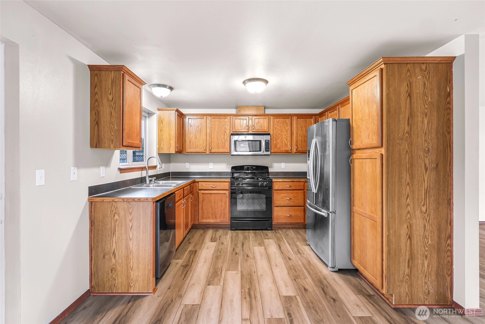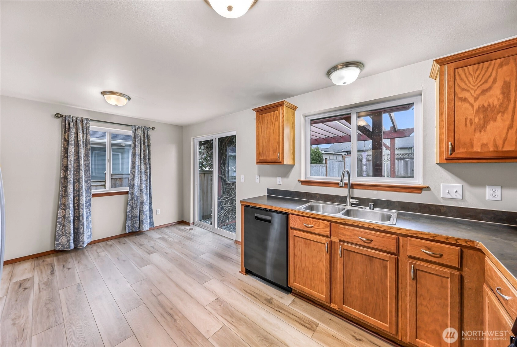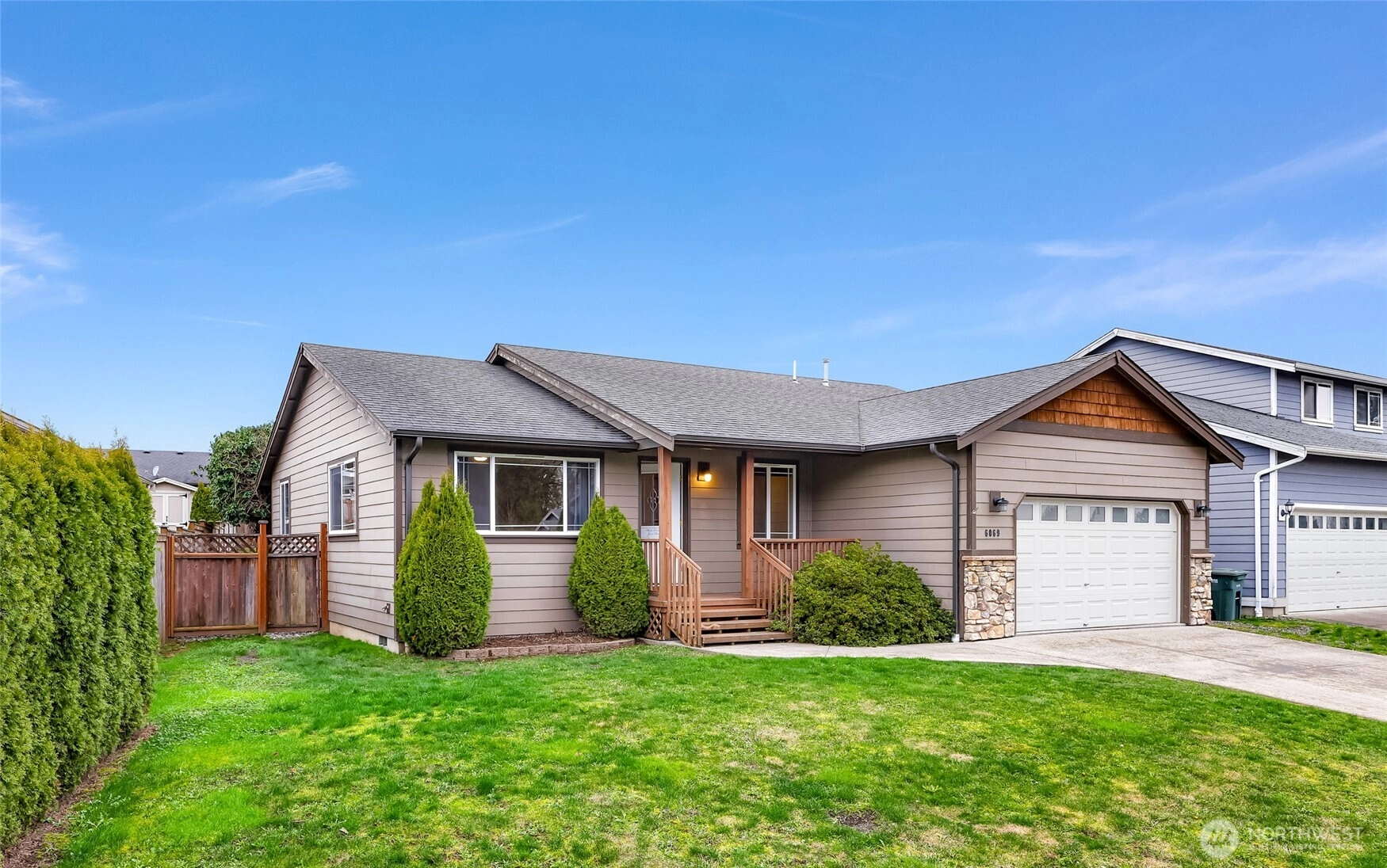 Beautifully kept Thornton Woods rambler home with a spacious, fenced backyard in one of the most desirable locations Ferndale has to offer. The perfect starter home or ideal for anyone looking to downsize, this 2012 single-level home features fresh updates--newly-installed flooring, plush new carpet and fresh interior paint throughout. There's a full appliance package, with a French door refrigerator, gas range, & washer-dryer included. Spend beautiful summer days in the shade and cozy nights around the firepit on the trellised patio, appreciating the peace and quiet of this welcoming neighborhood. Convenient to downtown Ferndale, shopping, nearby schools and neighborhood trails!