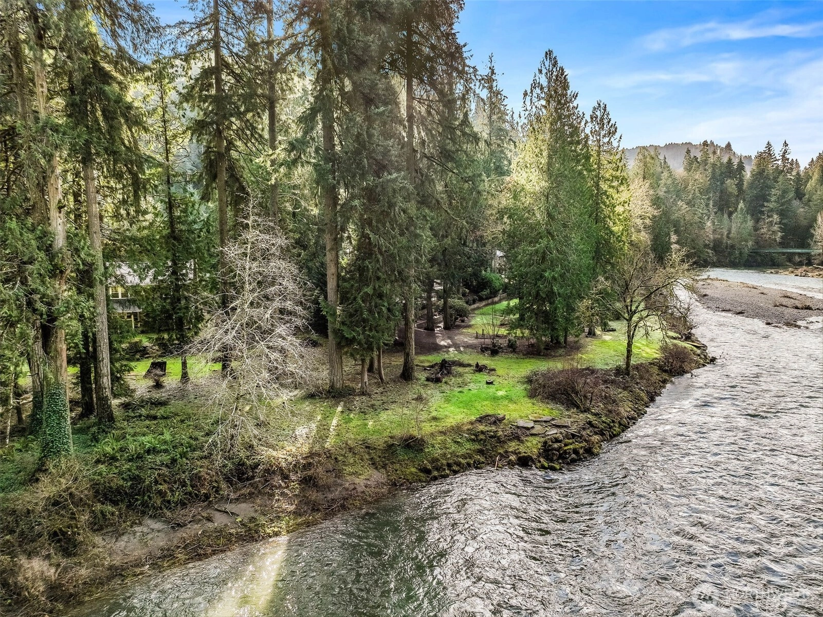 STUNNING Kalama riverfront acreage! A rare offering along the Kalama River, this PNW-inspired 2002-built home with Craftsman influences is set on 2.27 of picturesque, nearly flat acres along the river, where serene natural beauty and abundant wildlife create a truly special setting. Fishing enthusiasts, this home is for you - it is directly on 'Beginner's Hole' fishing hole. The timeless exterior showcases classic gabled rooflines, cedar shake-style siding, and an inviting covered entry. Inside, the main level unfolds with a welcoming, open floor plan highlighted by genuine hardwood floors, a large fireplace, and extensive windows framing sweeping river and landscape views. The open kitchen includes a large eating bar, while the adjoining dining area features French doors that open to an oversized covered deck overlooking the river- an ideal space for quiet mornings and memorable gatherings. The main level also includes an office/bedroom and full bath, offering both flexibility and convenience. Upstairs, the owner's suite plus two additional bedrooms provide comfortable accommodations, with nearly every room enjoying stunning river views. For lasting peace of mind, major improvements include a new water heater (2025) and roof and gutters (2021). Truly a riverside retreat to remember, with exceptional privacy, park-like acreage, and direct river frontage - complete with a fishing hole – this property offers a rare opportunity for daily enjoyment of the Kalama River lifestyle.