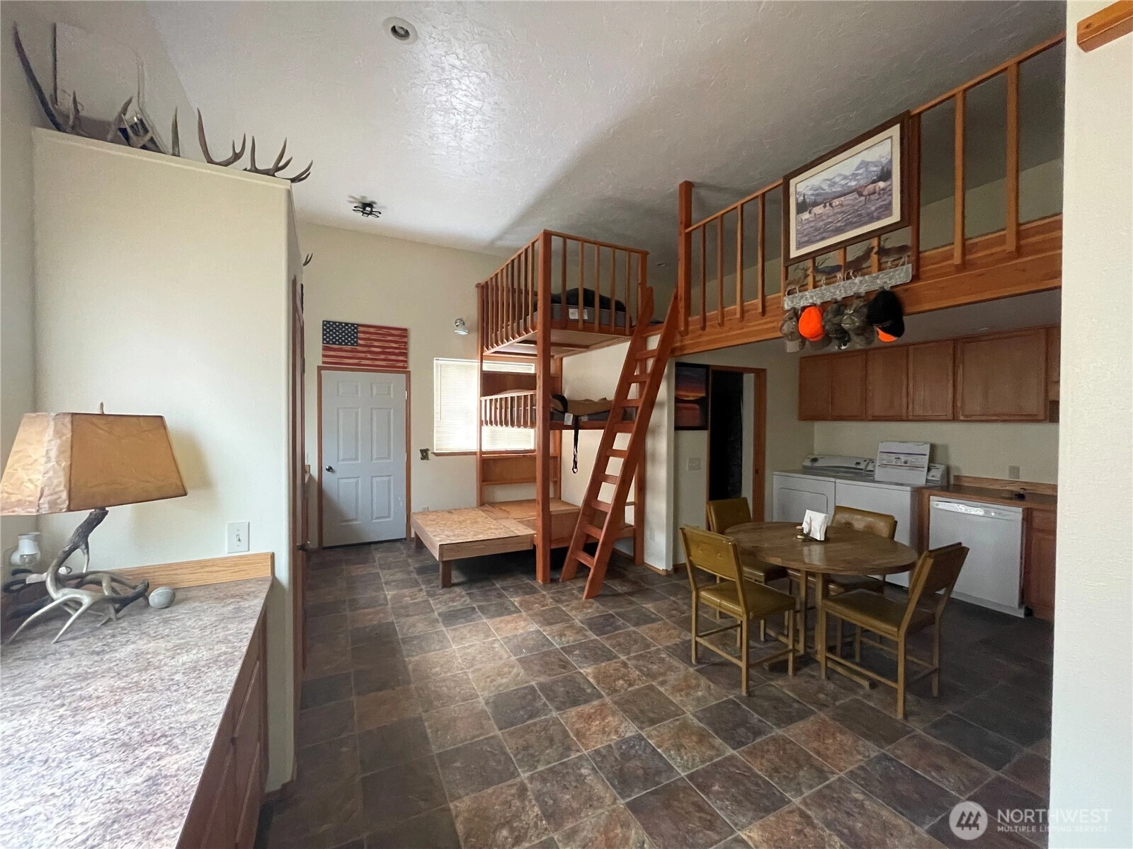 Very large shop with double doors on each end so you can drive through. Living quarters attached. Covered carport or outside area which could be easily converted into more living space. Located in Lincoln it is just a few minutes from the Lincoln boat launch. Sleeping loft in the living area. Come bring your toys and hit the water.
