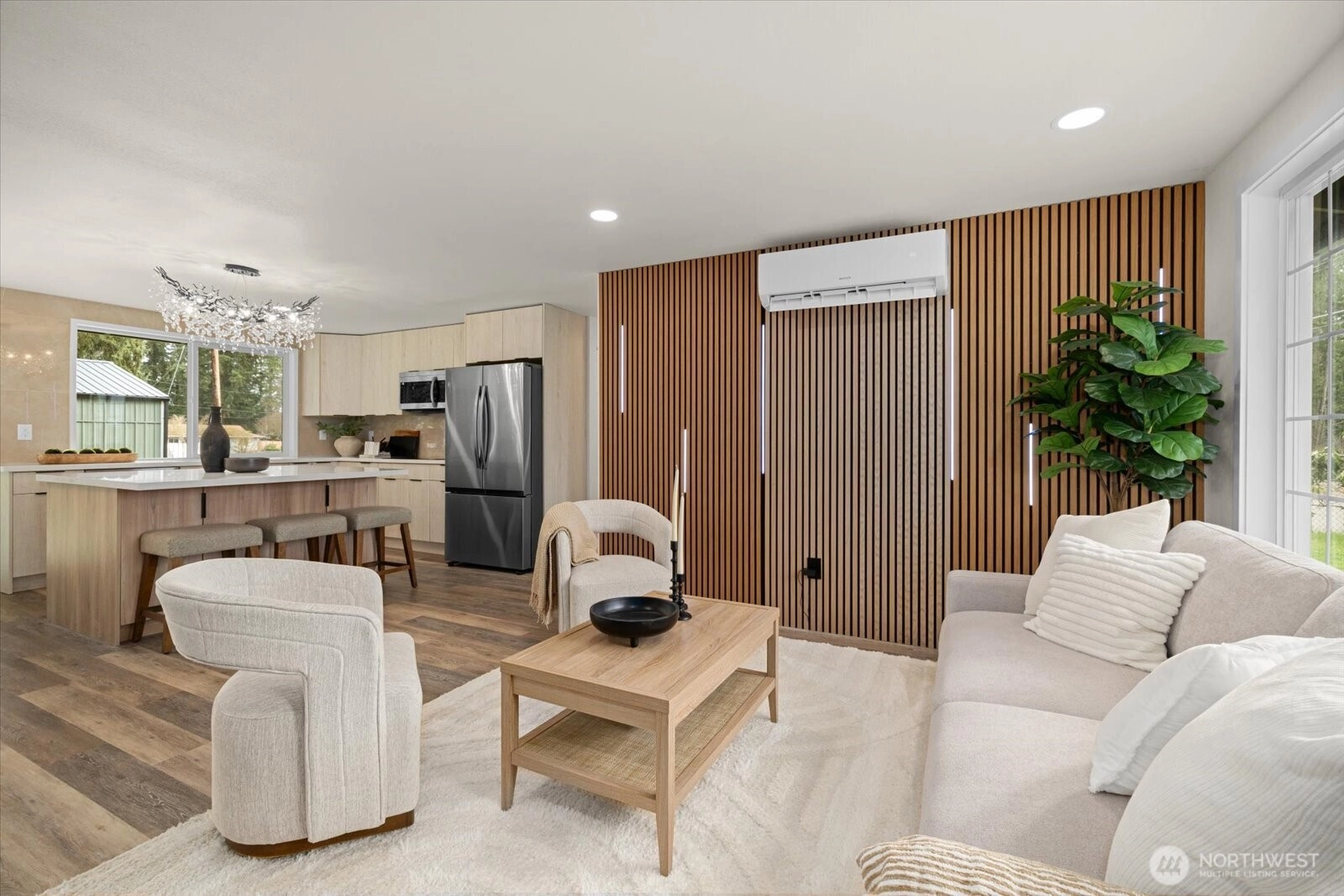 Completely renovated with modern, tasteful finishes, this thoughtfully designed home offers the perfect balance of style, comfort, & functionality. Located on a desirable corner lot, it provides added privacy, space, & flexibility. The home features 5 bedrooms w/ a layout that feels both efficient & intentional. The primary suite is a true retreat, complete w/direct access to the deck—ideal for quiet mornings or unwinding in the evening. Nearby, an oversized room offers exceptional versatility & can easily serve as a playroom, studio, home office, or additional bedroom. Living spaces feel warm and inviting, highlighted by an electric fireplace & a striking modern feature wall with wood panels and sleek bar lighting, creating a clean, cozy, & contemporary atmosphere. The kitchen is bright & welcoming, featuring new appliances, beautifully selected cabinetry & a timeless modern design suited for everyday living and entertaining.Additional bedrooms are well positioned to allow for comfortable separation of space & privacy.One bedroom features a semi-en suite bathroom, offering added convenience.Outside, the spacious backyard provides endless possibilities for recreation, gardening or future projects. A detached 670 sqft garage offers excellent space for a workshop, hobby area, or additional storage. Ample parking is available in the driveway, off street, & in the backyard.This move-in-ready home combines thoughtful design, modern upgrades & a highly desirable corner-lot setting