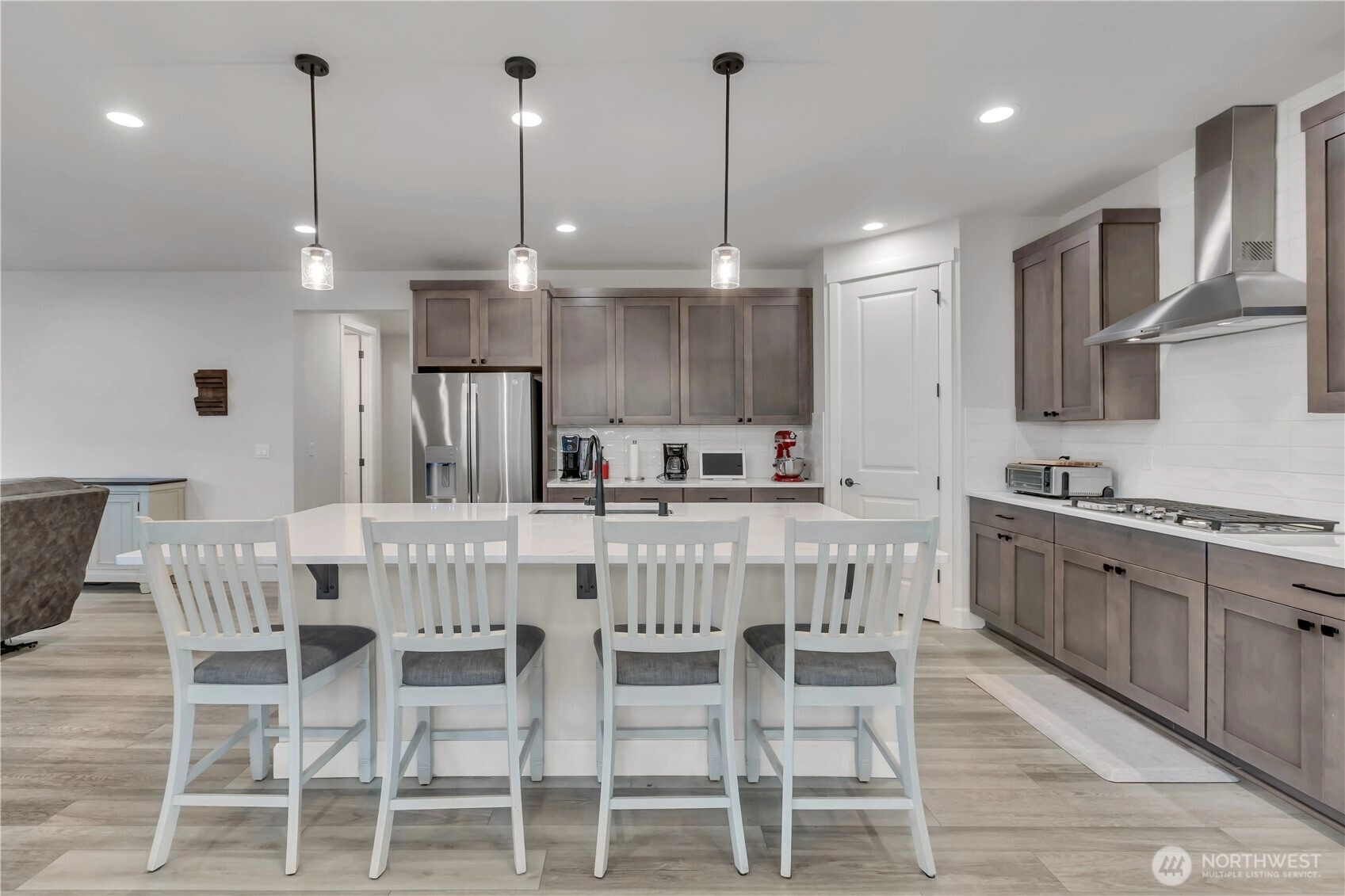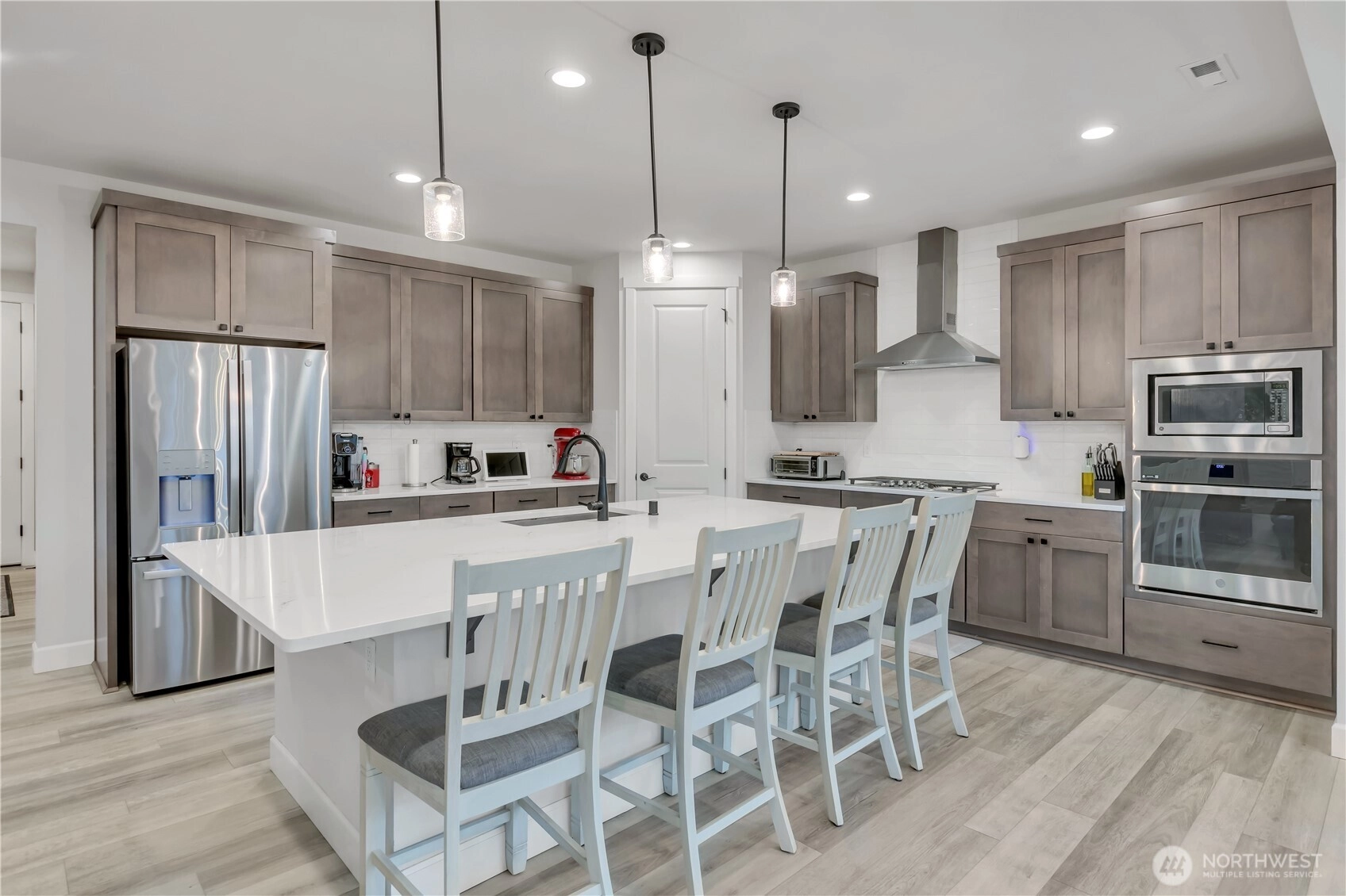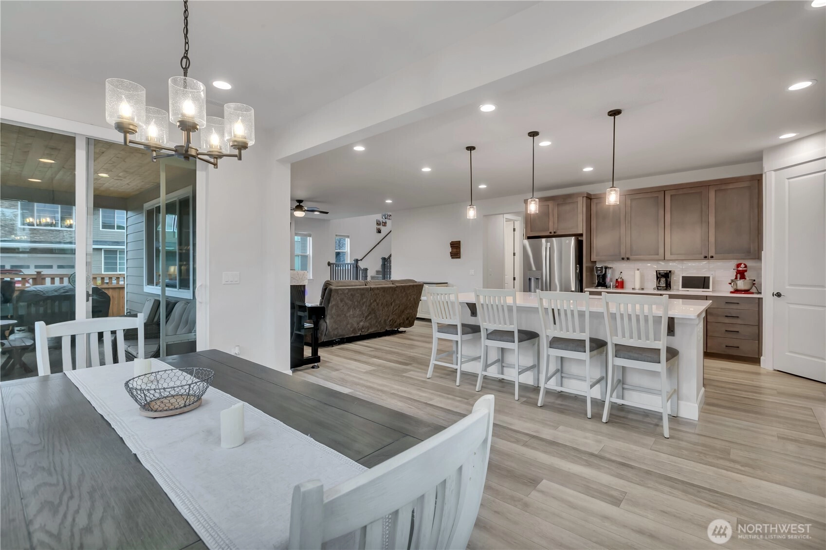 NEW PRICE!! Beautiful resale by Richmond American Homes featuring the sought-after Yorktown plan in Glacier Pointe at Tehaleh! This impressive 5-bed home offers 3,146 sq ft with 3 full baths & one ¾ bath, thoughtfully designed for comfort & flexibility. Ideal for multigenerational living, the main floor includes a bedroom with ¾ bath located just across the hall. Expansive great room with cozy gas fireplace flows seamlessly into the gourmet kitchen, showcasing stainless steel appliances, enormous center island, walk-in pantry & adjacent dining area—perfect for entertaining. An abundance of windows fills the home with natural light. Upstairs you’ll find an immense loft surrounded by 3 bedrooms, including one with its own private full bath. Enjoy beautiful front-facing Mt. Rainier views from two of the bedrooms and the backyard. The spacious laundry features abundant cabinetry & beverage fridge! The luxurious primary suite offers private bath complete with soaking tub & walk-in closet. Enjoy tons of storage with several large closets & thoughtfully designed spaces to keep everything organized. This home is also wired for a generator, features an electric car charging station, central AC, and sprinklers. Step outside to year-round outdoor living on the large covered patio overlooking the fully fenced backyard. Situated on a spacious corner lot with 3-car garage, this home delivers space, functionality & an exceptional lifestyle in one of the area’s most desirable communities.