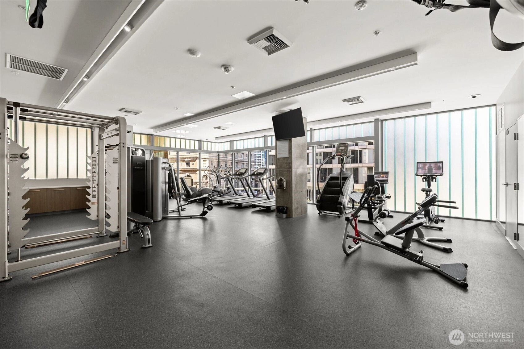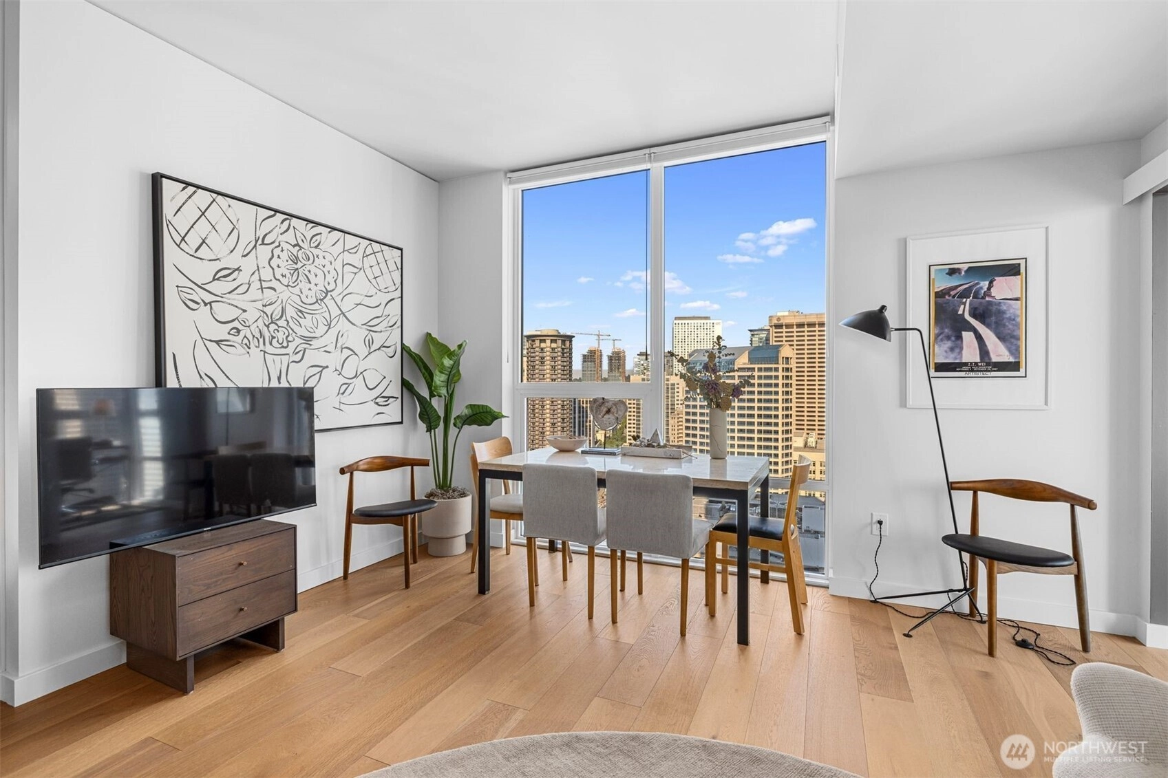 Extremely motivated seller - make an offer! One-of-a-kind one bedroom w/den corner unit, formally the model unit in the building. Unit is loaded with extras including spectacular views of Elliot Bay and long city views down Second Avenue. This unit also has custom wood cabinetry, hardwood floors, full-size W/D, latch keyless entry and floor-to-ceiling windows. Amenities include fitness center, yoga studio, pet run & spa, guest suite, onsite electric carshare and full-floor rooftop indoor/outdoor lounge. Den could be used as a non-conforming 2nd bedroom. Rare need for a car with a Walkscore of 99 (1 block from Pike Place Market, 2 blocks from water's edge. If you need parking, multiple options available at the Thompson Hotel & Helios. Hurry!