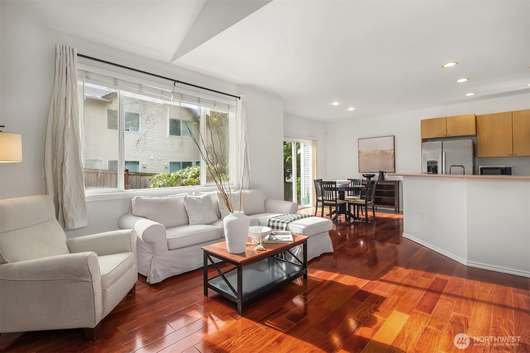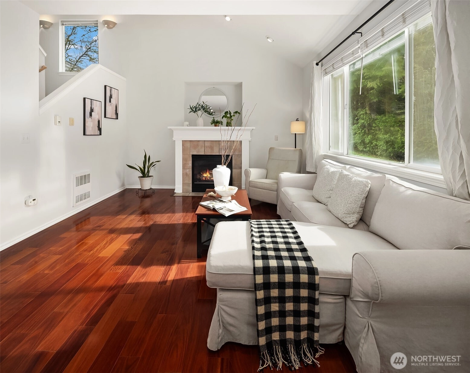 Sun-filled corner-lot townhome in the desirable gated Ashburn community. This stunning 2-story home offers an impressive sense of space and openness. The south-facing main floor features an open-concept great room with a gas fireplace and vaulted ceilings, seamlessly connecting to the dining area and sliding door to private back patio. The well-appointed kitchen showcases newer stainless steel appliances, a gas range, and abundant cabinetry. Beautiful hardwood and tile flooring extend throughout the main level. Upstairs, the spacious primary suite includes a large walk-in closet with built-in organizers and an ensuite bath with double vanities and a skylight. Two additional bedrooms, a full hallway bath, and a convenient side-by-side washer and dryer complete the upper level. Additional highlights include a two-car side-by-side garage with driveway parking, fresh interior paint (2025), and ample guest parking. Residents enjoy access to a community clubhouse offering a sport court, game room, full kitchen, and fitness center. Ideally located just minutes from the airport, UW Valley Medical Center, and major freeways. HOA dues include water, sewer and garbage. No rental cap!