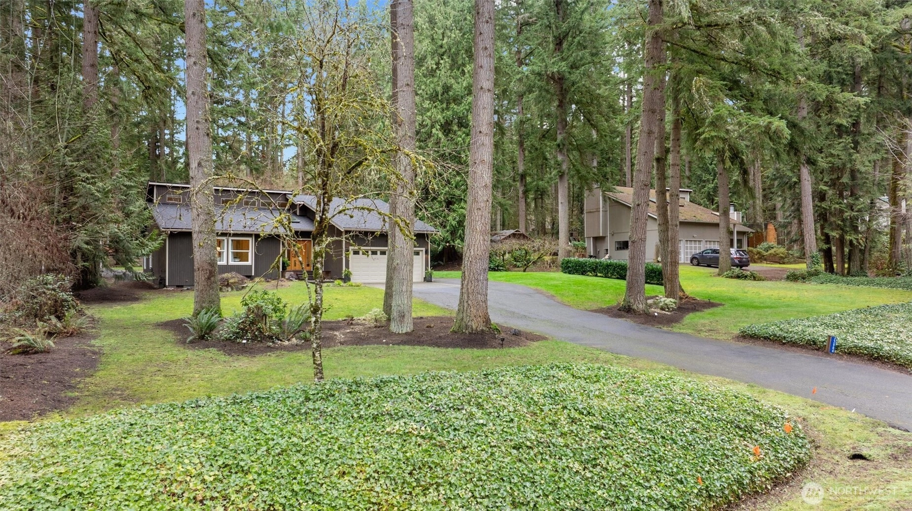 Minutes from tech centers, yet a retreat that feels worlds away. An acre of land provides plenty of space for play and pets. Soaring ceilings and thoughtful updates compel you to call this property home. The generous kitchen island is the centerpiece of the great room with dining space, entry & living room all enjoying forest views framed by picture windows. Rich acacia floors unify the space and bring the natural setting indoors. White shaker cabinetry and coordinating stainless steel appliances for beautiful function. The designer bathroom anchors the primary suite that boasts style and lovely new carpet. Soaker tub, rain shower, rich wood cabinetry and sleek lighting provide a luxe feel. Adjacent to the primary suite there are two large bedrooms and bath. Your work commute just got reduced to 100 feet! Tucked into the forest on the property, you'll find a beautiful 190 sqft studio not included in the listed square footage. Wired for work with a cozy vibe. You'll have space for an office, plus flex space for lounging or lifting. Frolic in the outdoors enjoying the large attached deck or firepit with artful wood storage. Exterior shed for garden tools. Attached 2 car garage makes groceries to kitchen a breeze. Above the garage, find an impressive storage space with access ladder. Brand new roof. Desirable Lake WA schools including quick access to Tesla STEM High. Pre-inspection reports available after viewing.