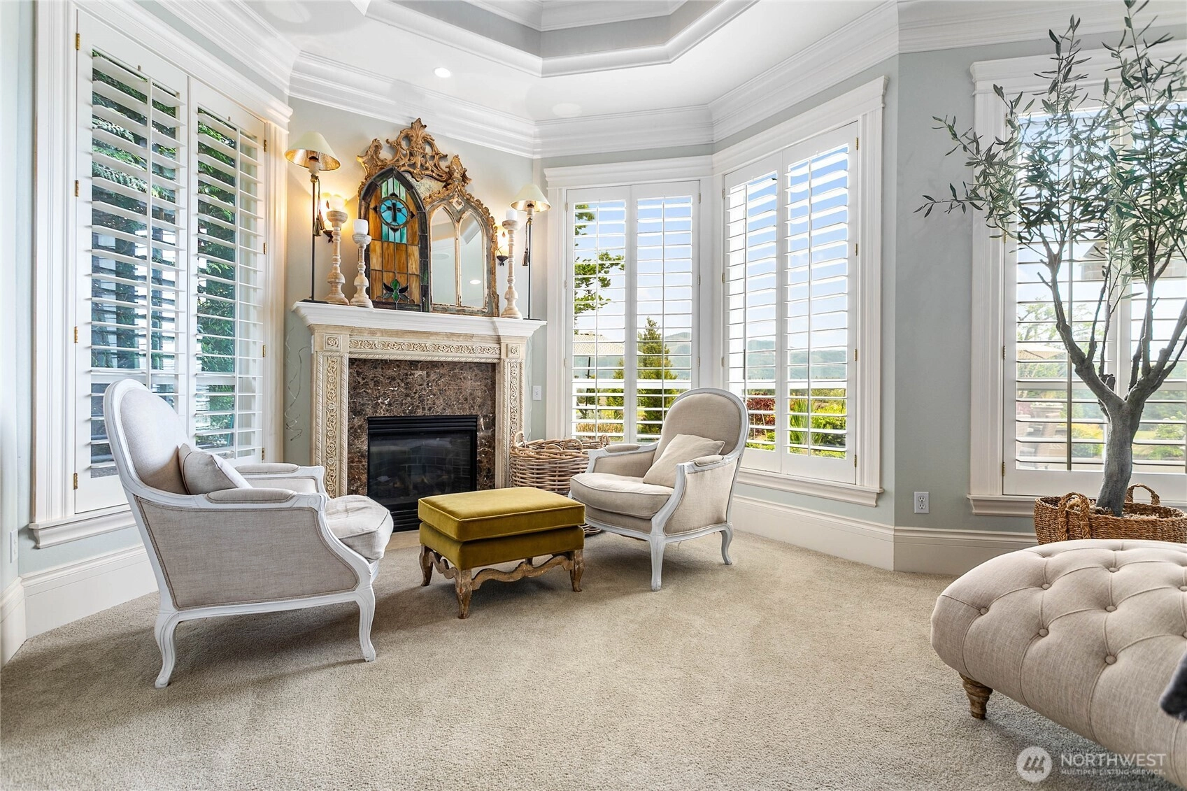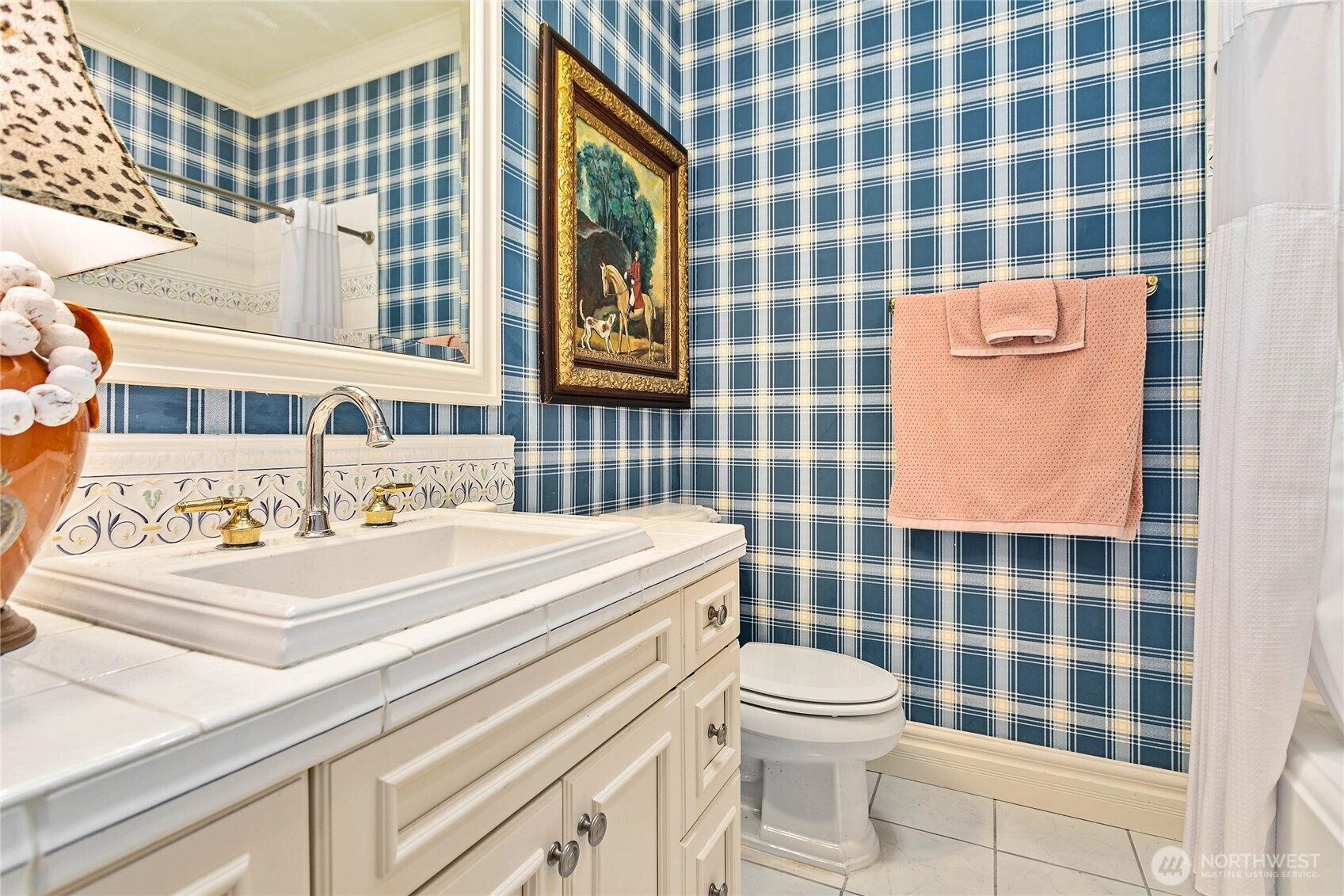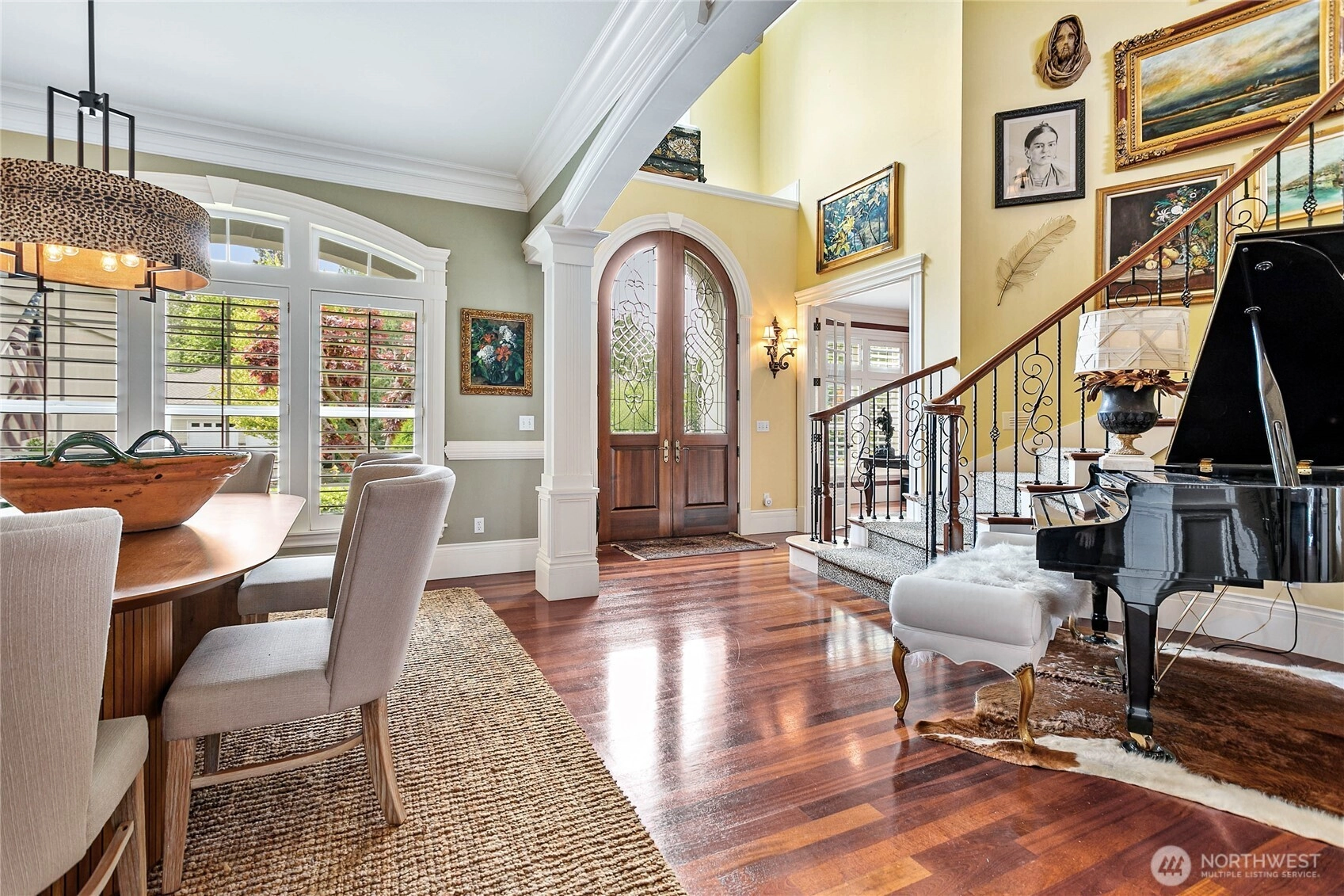 This elegant custom home with Mt Baker views awaits you in Eaglemont. 4,729 sqft of exceptional craftsmanship creates special spaces, large gathering areas & captivating architectural details - all while preserving true single-floor living. The main floor stuns with a luxurious primary suite, walk-in closet & sitting area overlooking the garden. Brazilian Cherry hardwood flows from the grand entry through a chef’s kitchen into a quiet sitting area. Up the sweeping staircase, a guest suite with full bath and a sitting area with veranda. Numerous extras: built-ins throughout, back staircase, a dreamy patio, fireplaces, landscaping & more. A true jewel in Eaglemont.