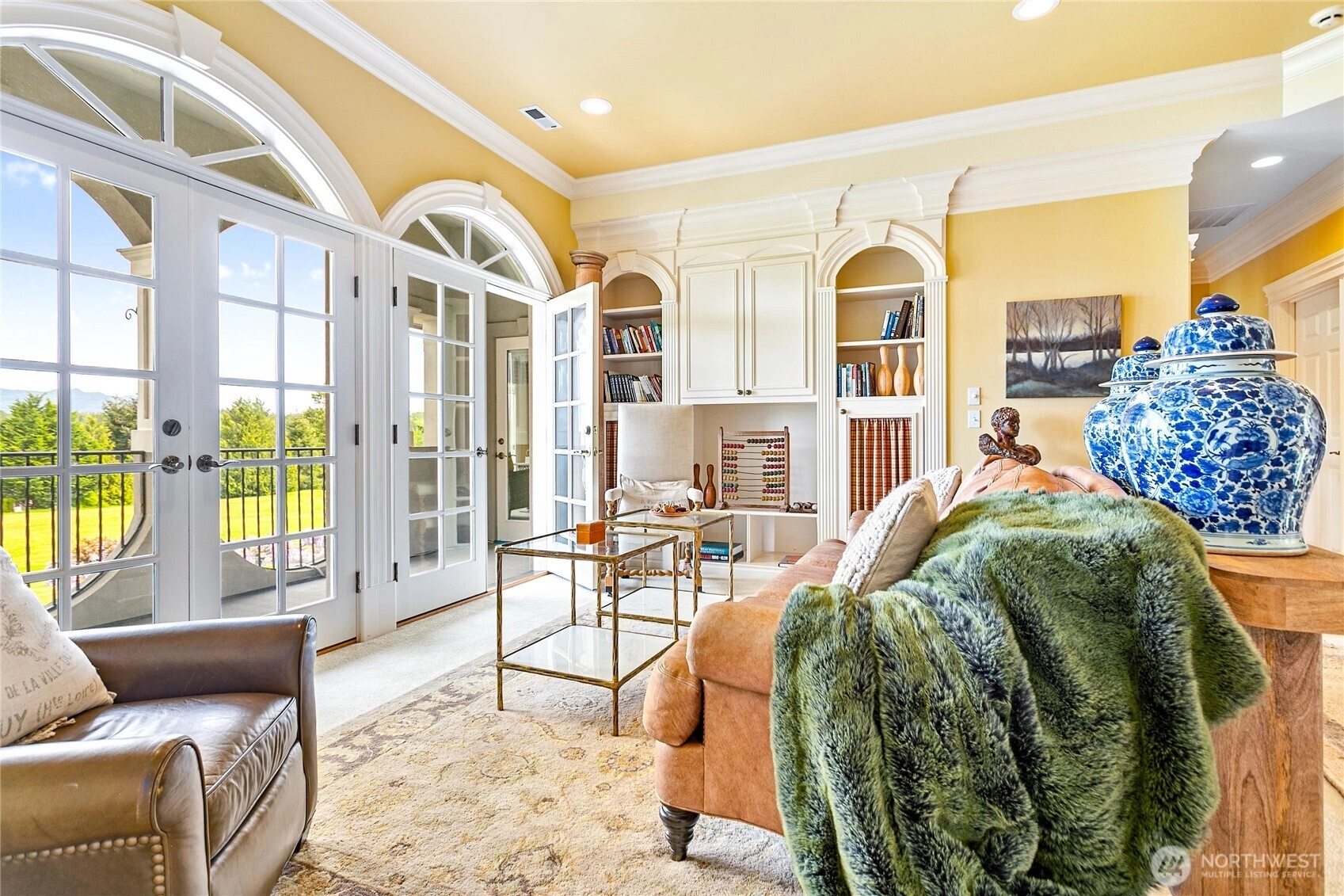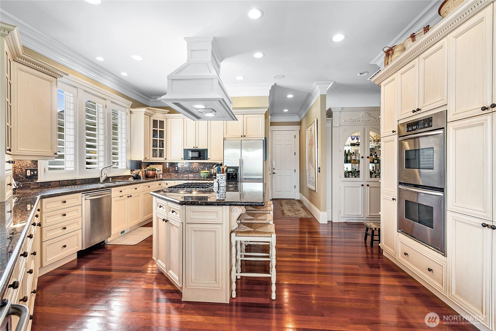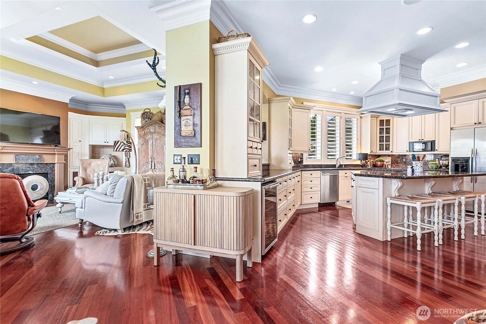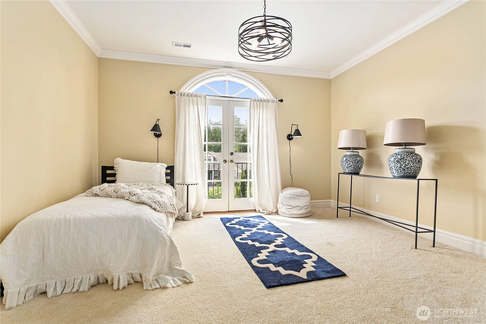This elegant custom home with Mt Baker views awaits you in Eaglemont. 4,729 sqft of exceptional craftsmanship creates special spaces, large gathering areas & captivating architectural details - all while preserving true single-floor living. The main floor stuns with a luxurious primary suite, walk-in closet & sitting area overlooking the garden. Brazilian Cherry hardwood flows from the grand entry through a chef’s kitchen into a quiet sitting area. Up the sweeping staircase, a guest suite with full bath and a sitting area with veranda. Numerous extras: built-ins throughout, back staircase, a dreamy patio, fireplaces, landscaping & more. A true jewel in Eaglemont.