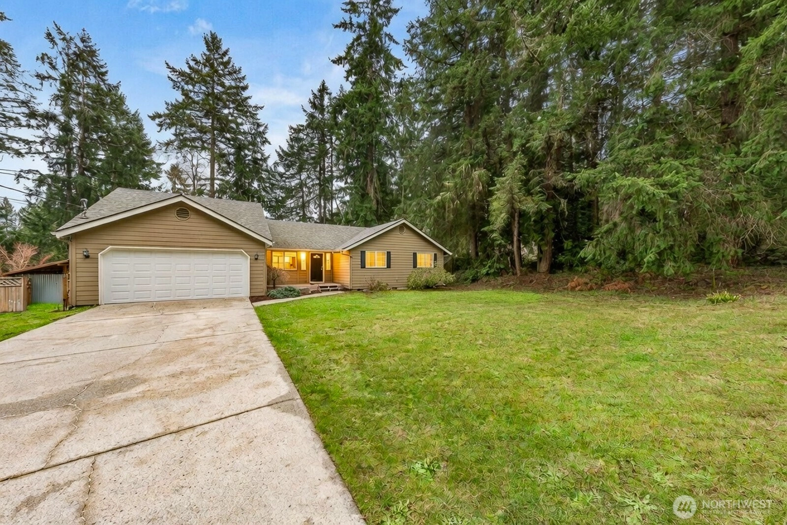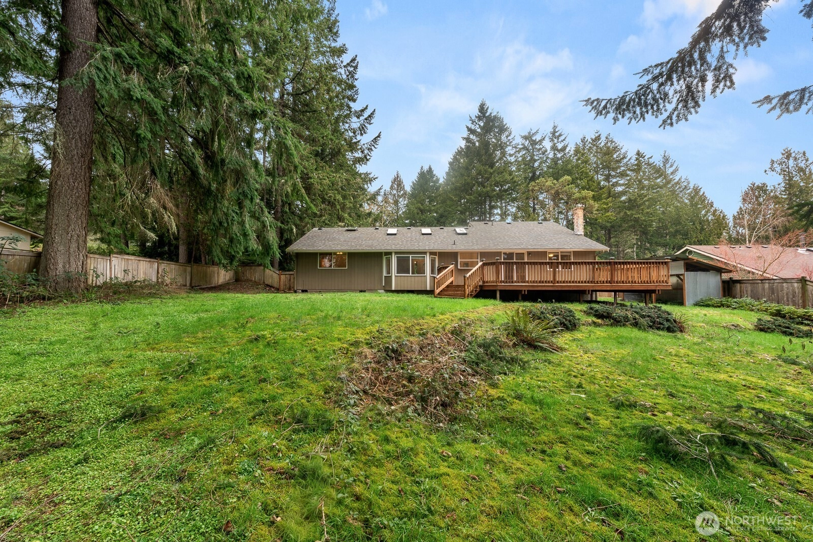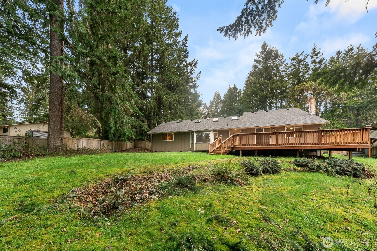Welcome home to a beautifully updated one-story rambler in the highly desirable Artondale area of Gig Harbor. This home offers the perfect blend of modern finishes and comfortable single-level living. Step inside to discover a bright, airy living room accented by impressive vaulted ceilings and skylights. The beautifully appointed kitchen features stainless steel appliances, durable Corian countertops, and its own vaulted ceilings and skylights. Need more space? Enjoy the separate rec room, kept cozy year-round by a gas stove. The home boasts a spacious primary bedroom complete with a private attached en-suite bathroom. All bedrooms feature plush, brand-new carpets, complemented by elegant engineered hardwood floors and fresh interior paint throughout the main living areas. Outside, entertain or unwind on the spacious deck that overlooks the backyard—perfect for privacy, pets, and summer gatherings. A practical 2-car garage provides ample parking and storage. Location is everything! This property is ideally situated just minutes from Highway 16, premium shopping, and local amenities, offering unparalleled convenience. Whether you are searching for an updated single-story home or a peaceful Artondale retreat, this Gig Harbor gem truly has it all.