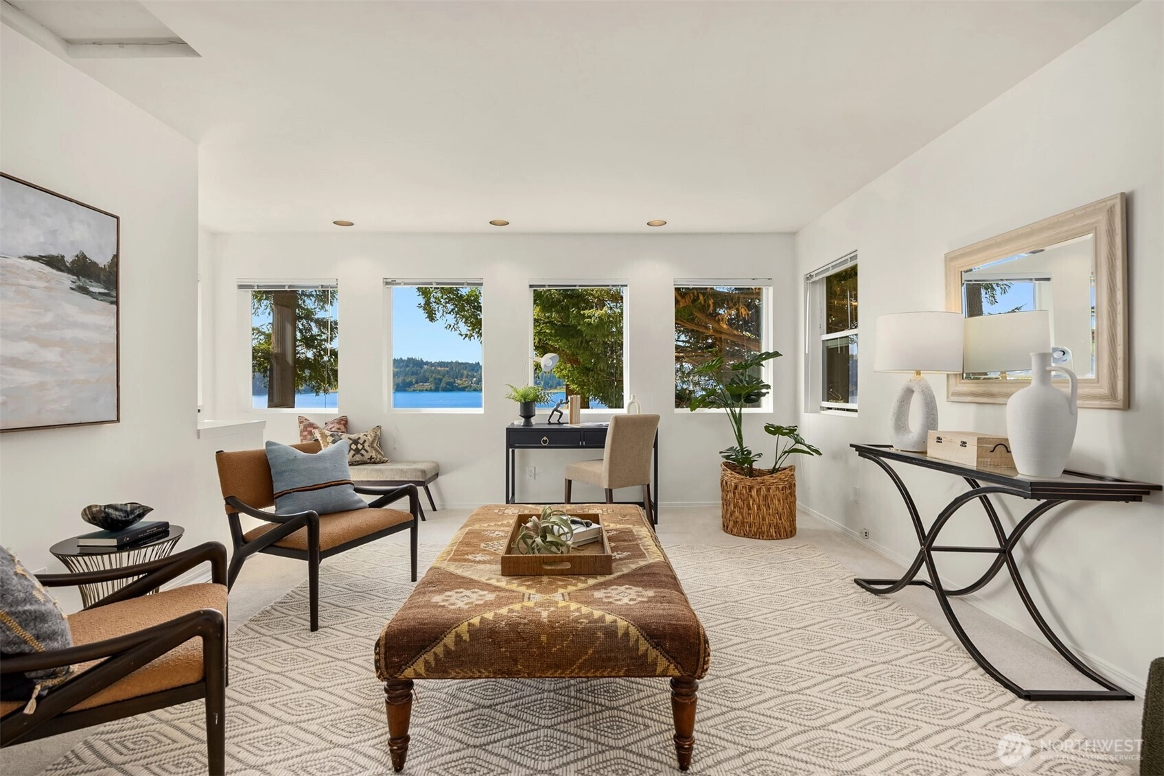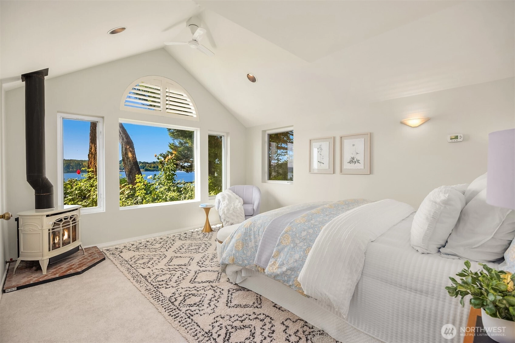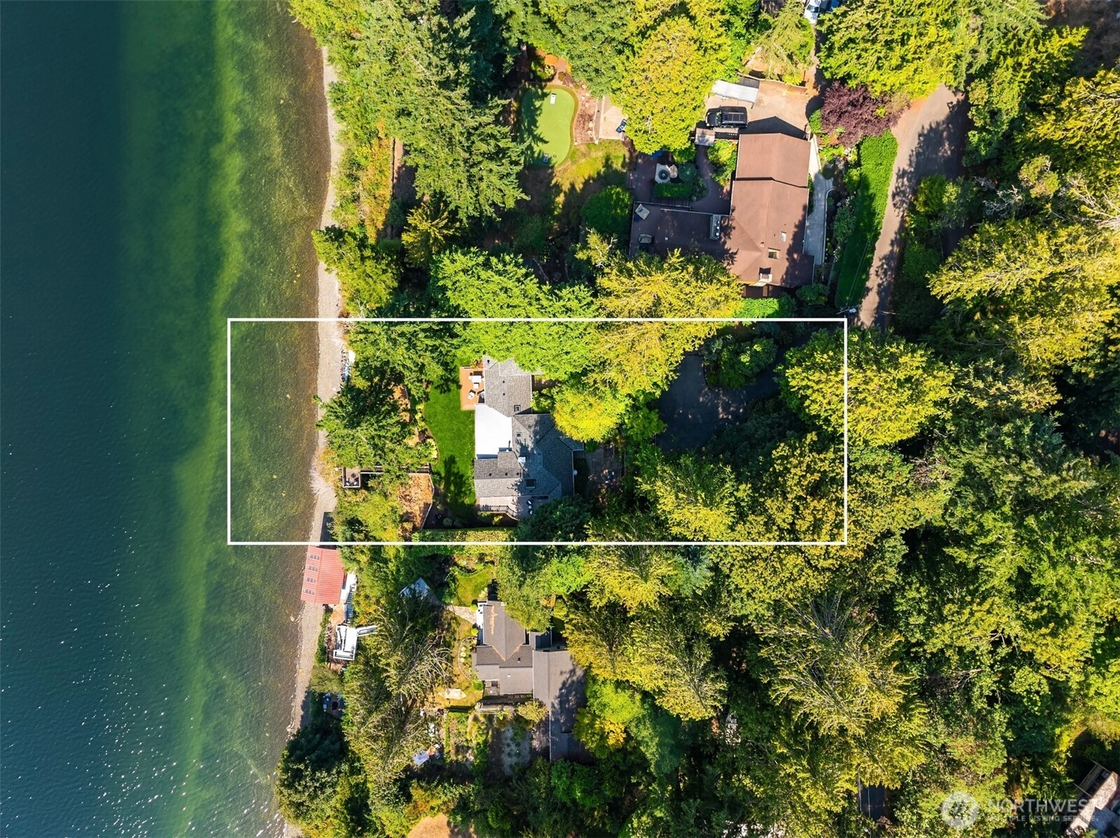 A rare west-facing waterfront retreat on secluded Olympus Beach, where golden sunsets over the Olympic Mountains become part of daily life. Follow the beach stairs to a sunlit deck halfway down, then continue to 123 feet of private, bulkheaded shoreline. Imagine beach walks, kayaking, or simply soaking in the rhythm of the tide. Designed to embrace its breathtaking setting, this light-filled beach house captures sweeping water views from nearly every room. The heart of the home is a welcoming chef’s kitchen with a Wolf range, granite surfaces, and a wood-burning fireplace—perfect for gatherings and easy entertaining. Throughout the home, French doors open to lush gardens and expansive decks, creating a seamless indoor-outdoor flow. The main-level primary suite offers privacy and ease, while an upstairs office/den and a separate bedroom wing create comfortable spaces for guests, creativity, or quiet retreat. A detached 1,065 sq ft guest cottage with full kitchen, bedroom, and bath provides endless flexibility—ideal for extended stays, artistic pursuits, or hosting with ease. Peaceful, private, and deeply connected to nature, yet just minutes from Winslow, the ferry, and Battle Point Park. Morning coffee as eagles soar overhead, evenings gathered around the fire as the sky turns gold and lavender—every day here feels like a retreat. A rare blend of privacy, natural beauty, and timeless Northwest waterfront living. It truly doesn’t get any better.