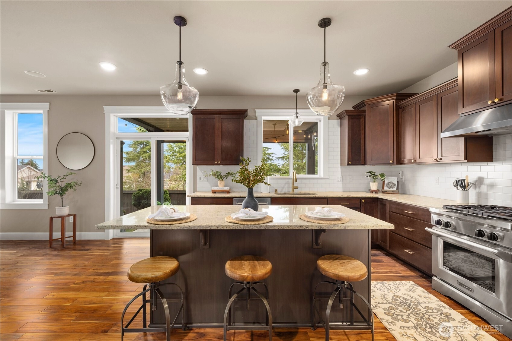 Discover the pinnacle of Lakeland Hills living in this stunning, turn-key residence in the coveted Pinnacle Estates neighborhood. Boasting incredible curb appeal and professional landscaping, this 5-bedroom home (or 4-bed plus main-floor office/den) offers a sophisticated lifestyle with modern upgrades. Experience a grand two-story entrance, engineered hardwoods, brand-new paint, and premium new carpet throughout. The heart of the home is a chef’s kitchen featuring granite countertops and a high-end stainless steel KitchenAid appliance package. Relax by one of two cozy gas fireplaces or retreat to the oversized primary suite, complete with a spa-like 5-piece bath. Rare amenities include a private indoor sauna, central A/C, and a spacious 3-car garage. The outdoor living space is a true sanctuary, featuring a covered patio overlooking a meticulously maintained, private backyard. Perfectly positioned for commuters with quick access to Hwy 167, local shopping, and top-rated restaurants. This home has been pre-inspected for a seamless, worry-free sale. If you are searching for a move-in-ready home in Lakeland Hills with high-end finishes and ultimate privacy, this is the one.