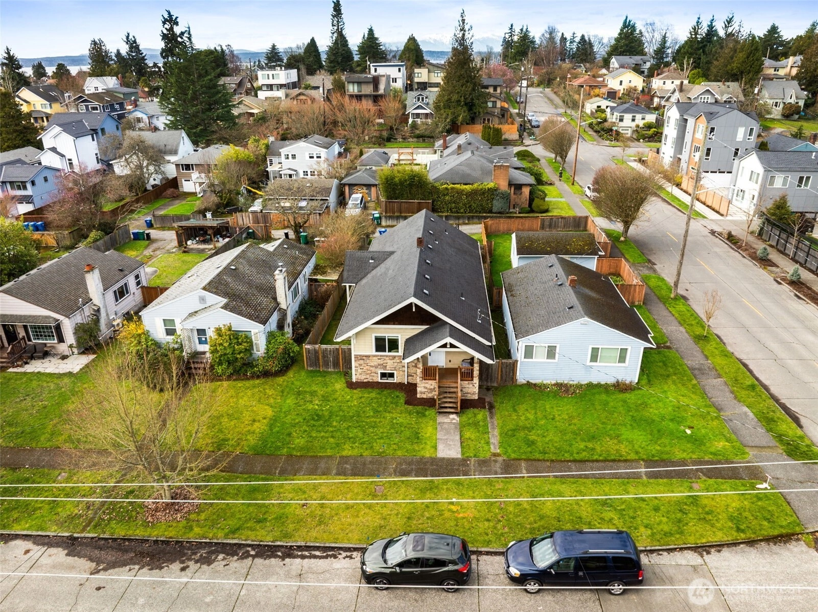 Loyal Heights Craftsman is an absolute charmer, on a great street and ready for its next owners to enjoy all it has to offer. Just under 2400 total square feet, the home was a fully permitted, studs-out remodel in 2010; meaning you get all the charm of a 100-year-old classic Seattle craftsman with NONE of the upgrading headaches - hardwood floors, hardiplank siding, vinyl windows, insulation to modern standards, updated all electrical and plumbing. The home has tall ceilings on the main level, amazing natural light, 3 bedrooms, 2 full baths including a Large Primary Suite, kitchen with Island, a covered porch right off it, a traditional and large dining room and a living room with tons of space and a fireplace. On the lower level, there are 2 more non-conforming bedrooms, a third full bath, utility room and a living space that is tiled and makes an incredible flex space. It also has it's own entry, so if you ever wanted to make an ADU - it could be quite easy. The yard is fully fenced with a large parking pad in the back off the alley with room for up to 3 cars or potential site to add a DADU. Brand new paint and carpet throughout makes it TURNKEY and ready to move right in. All within walking distance to Loyal Heights Elementary and Play fields, the corner at 80th and 24th with Larsen's Bakery/ La Copa Cafe. Also just minutes to Shilshole and Golden Gardens, Ballard and Greenwood.