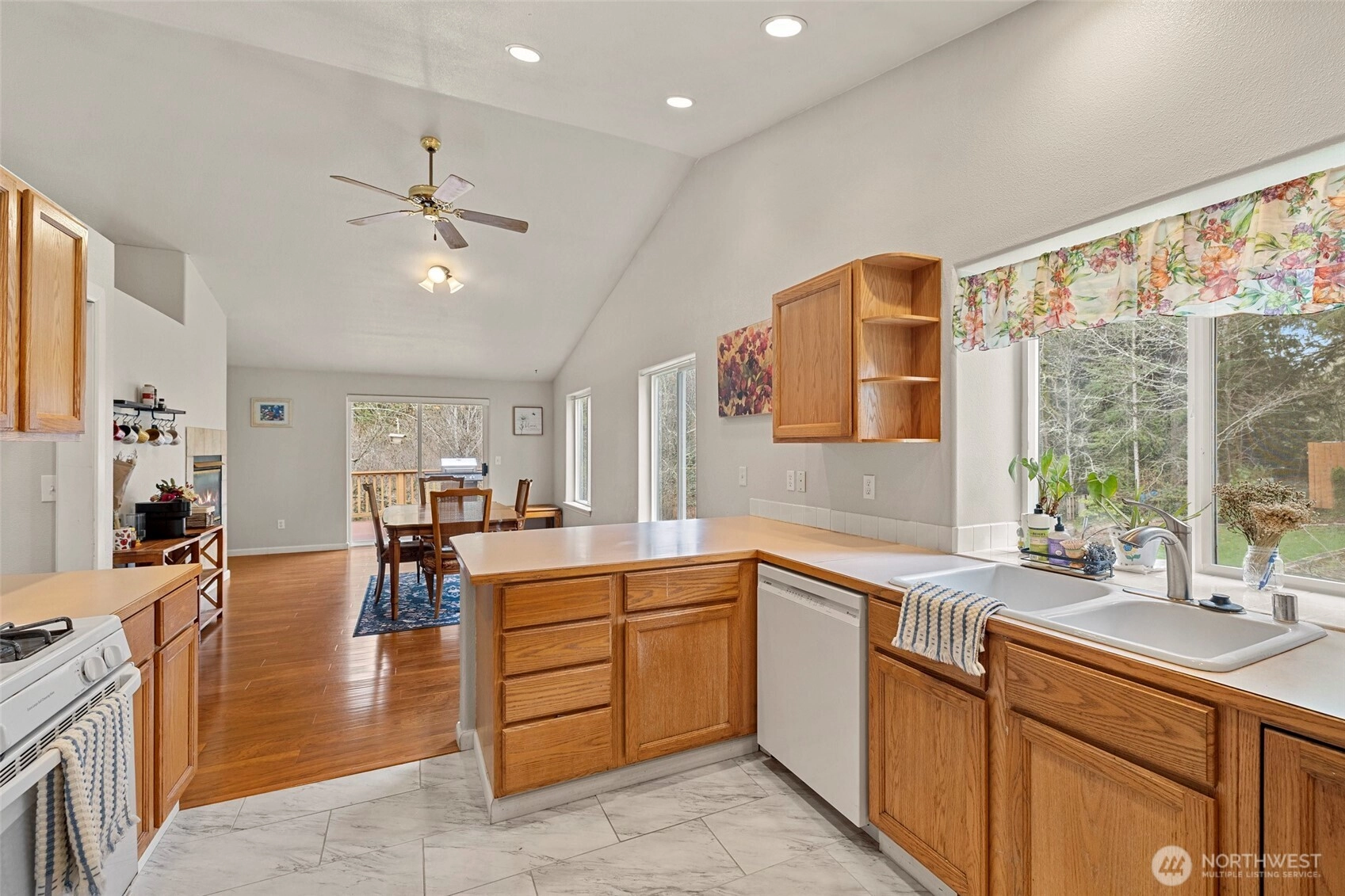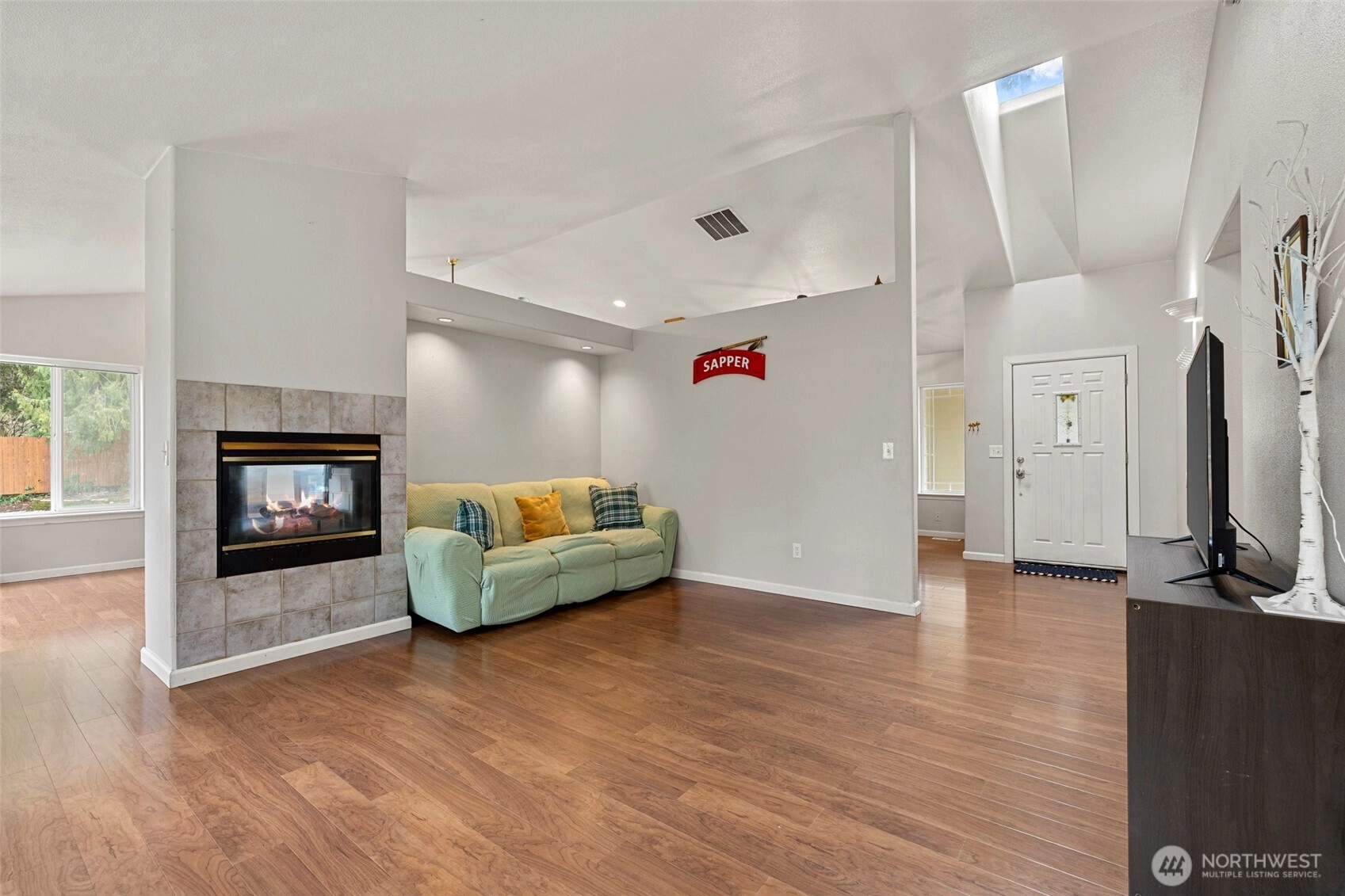 Experience the perfect blend of serenity and modern comfort in this one-story Tumwater gem. Tucked away on a lot that backs to a lush, private preserve, this home offers a rare "forever" feel with the peace of mind you deserve. From the moment you step inside, soaring vaulted ceilings and a flood of natural light from large windows and skylights create an airy, inviting atmosphere. The thoughtful layout features both a formal living room and a cozy family room separated by a stunning two-sided gas fireplace - the ultimate centerpiece for gatherings. The spacious kitchen flows seamlessly into the formal dining area, making entertaining a breeze. Retreat to the primary suite, complete with a walk-in closet and private 3/4 bath, while two additional bedrooms and a full bath provide plenty of space for everyone. This home has been curated with longevity in mind, boasting Hardieplank siding, gutters with screens, a high-efficiency furnace and more. Outside, your private deck overlooks the tranquil greenbelt, offering a sanctuary for morning coffee or weekend BBQs without the intrusion of rear neighbors. Complete with a two-car garage and ample parking, you are just minutes from schools, shopping, entertainment, I-5, and JBLM. This is more than just a house; it is a turn-key sanctuary waiting for its next chapter. Welcome home to quality, privacy, and style.