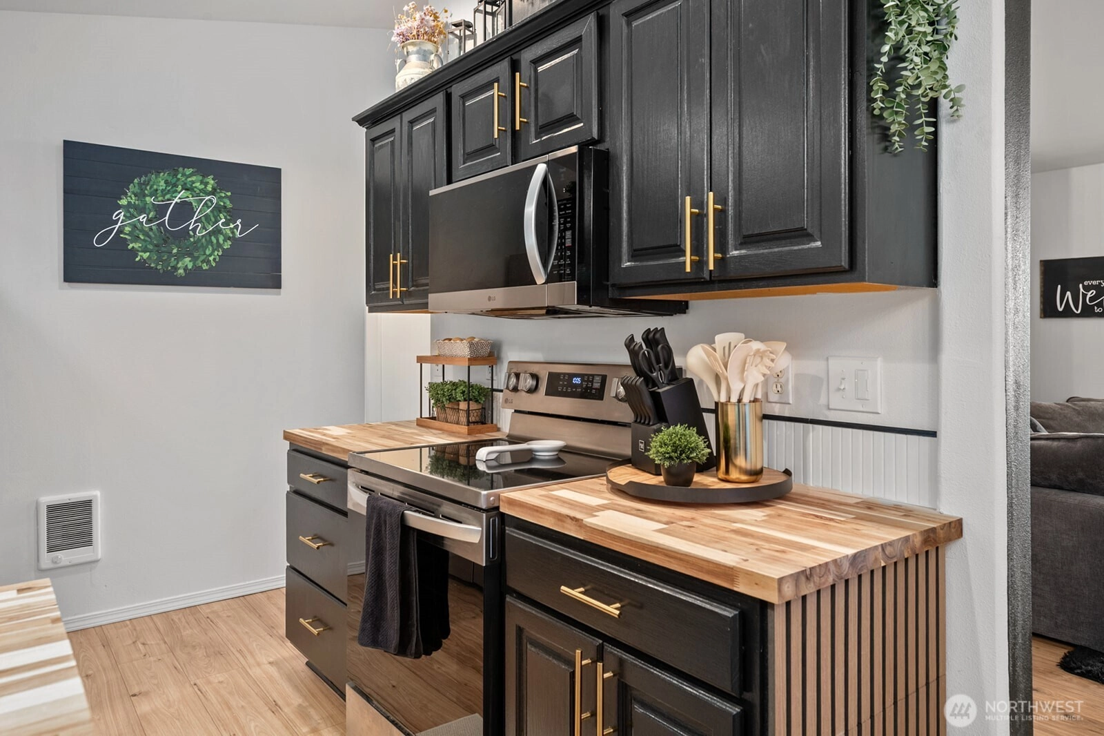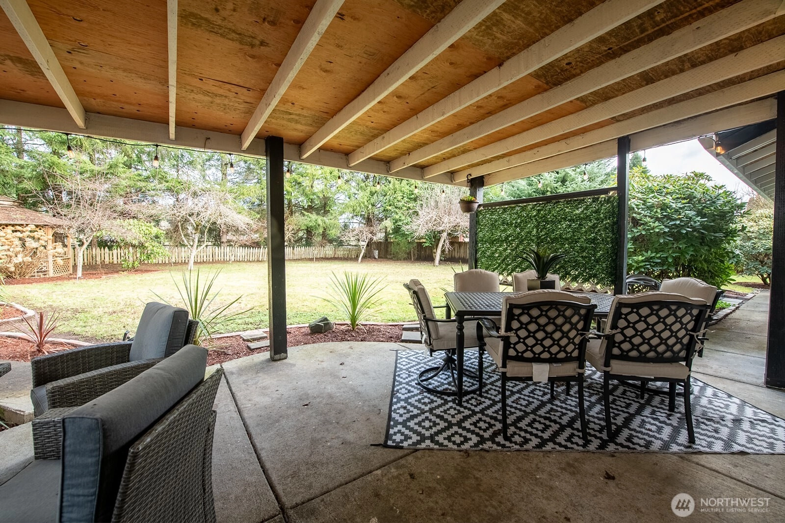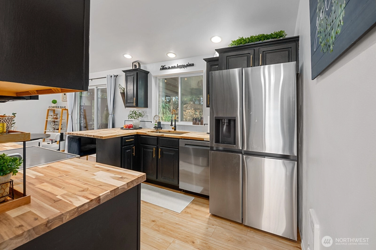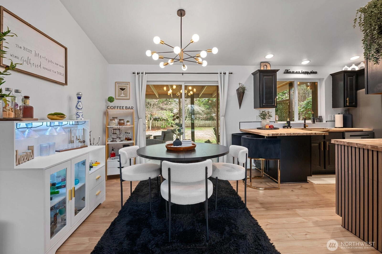 Pulling into this captivating fully remodeled home, you’re welcomed by a wraparound driveway lined with lush trees and plenty of parking for large gatherings. Situated on over an acre of flat, usable land, there’s room to create your own small farm, with established blueberry bushes and mature apple and pear trees ready for summer picking. A brand-new roof (April 2025, with warranty) and a charming covered front porch set the tone.Step inside to vaulted ceilings, all-new flooring, modern fixtures, and thoughtful finishes throughout. The spacious living room flows seamlessly into a dreamy kitchen featuring stainless steel appliances, butcher block countertops, stylish backsplash, and bar seating that opens to the dining area—perfect for entertaining.Down the hall are three generously sized bedrooms, a beautifully remodeled main bath with tiled surround, and a stunning primary suite complete with a walk-in closet and fully updated private bath showcasing double vanities and a tiled shower with waterfall feature.The laundry room offers abundant storage just off the garage. Outside, enjoy year-round gatherings on the expansive covered back patio with outdoor TV and windbreak wall. The fully fenced backyard feels private and serene, complete with a pond, fire pit, gazebo, workshop outbuilding, and lush landscaping. Country living with space, style, and convenience, just minutes from town.