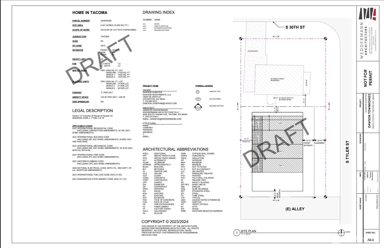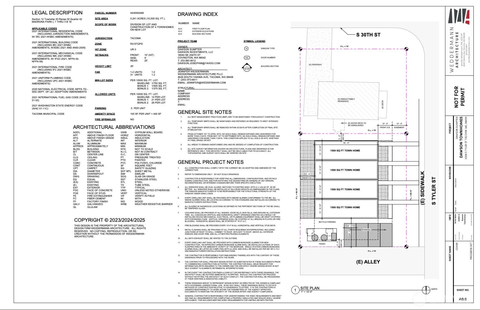 Short plat approval for Proposed 4-Unit Townhome Development plus an updated 1770 sqft home. Listing contains architectural and site plan documents related to the proposed development of four townhomes. The home is centrally located and has been updated with quartz counter tops, hardwood floors and tile bathrooms with room to put an additional bedroom. This updated home offers immediate rental income and compelling development upside. The property is currently rented at approximately $1,000 per room and features recent upgrades including quartz countertops, updated cabinetry, stainless steel appliances, tile shower/tub surround, LVP flooring, fresh interior paint, and updated trim, making it turnkey for continued rental use or resale. Reach out for more information site plan and development information. great opportunity to condo-minimize all 5 units. Builder resources available price range from $250-$300 a square ft.