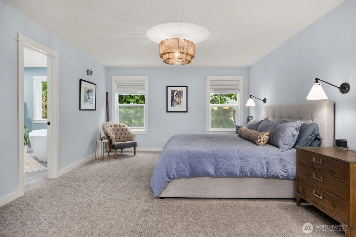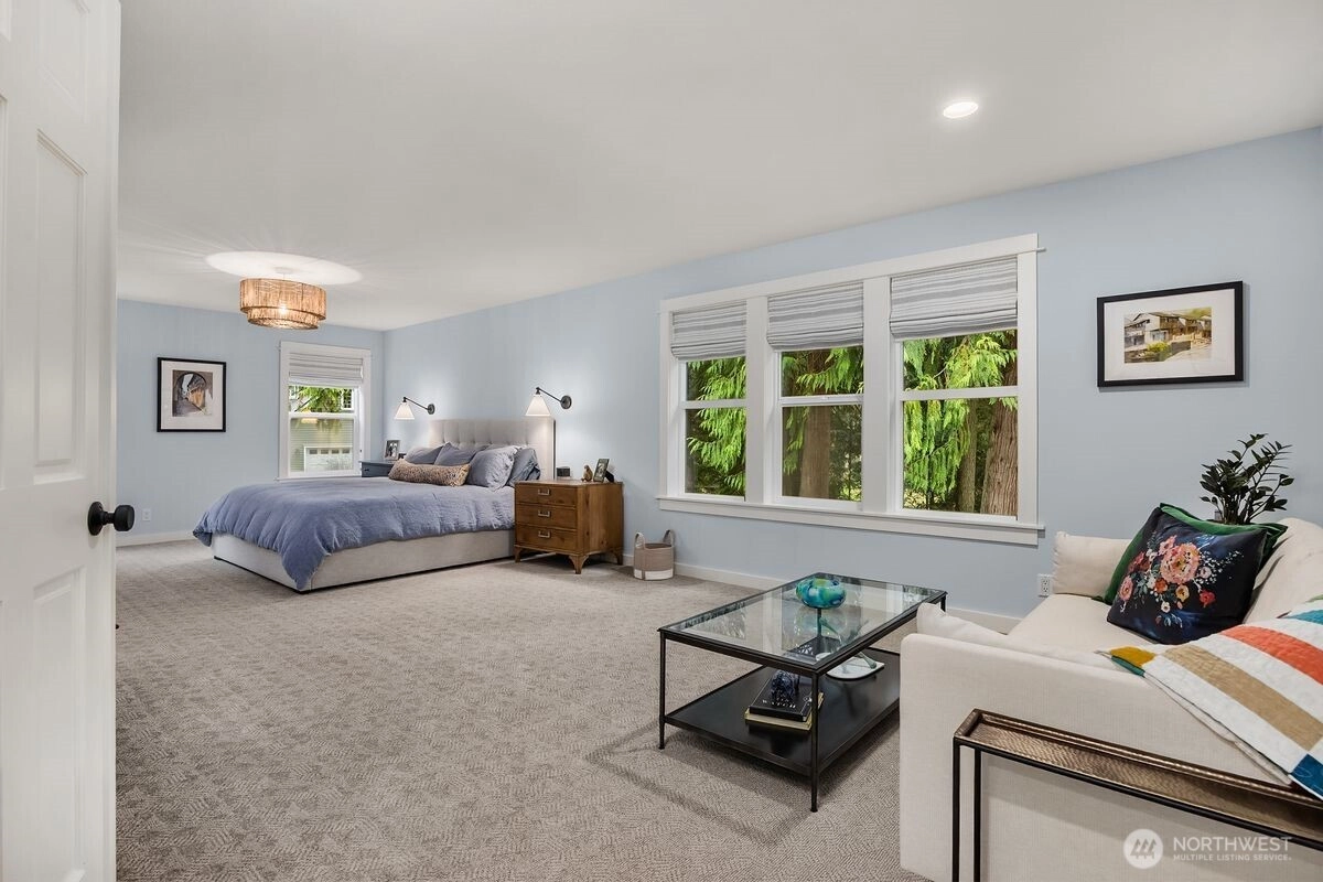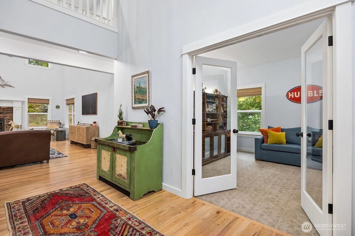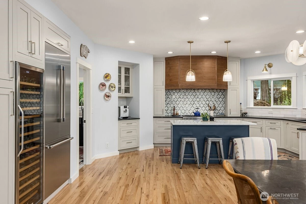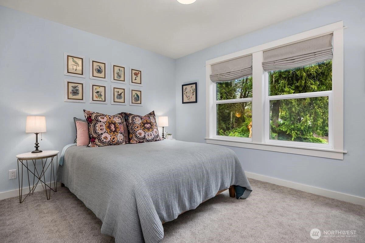 Understated elegance meets timeless design in this beautifully updated residence in Hidden Cove Estates. A gracious floorplan blends comfort and sophistication, ideal for entertaining and everyday living. Vaulted ceilings and expansive windows fill the home with natural light and frame the private backyard. The remodeled kitchen features an artisan walnut range hood, marble tile backsplash, and luxury appliances and finishes. Upstairs offers 4 bedrooms total including an ensuite guest bedroom and a spacious en-suite primary retreat with a new, luxurious marble tiled shower, new soaking tub and vanities. The main level includes a private study with fireplace and built-in cabinets plus a flexible office or family room with French doors. A wood-framed greenhouse, fenced in garden beds and Tesla Powerwall battery backup enhance sustainability and convenience. Set on a private, professionally landscaped .85-acre lot with neighborhood trail access leading to Hidden Cove Park to enjoy the dock and waterfront. Extraordinary privacy with open space to the west yet all the benefits of a beautiful, established neighborhood.