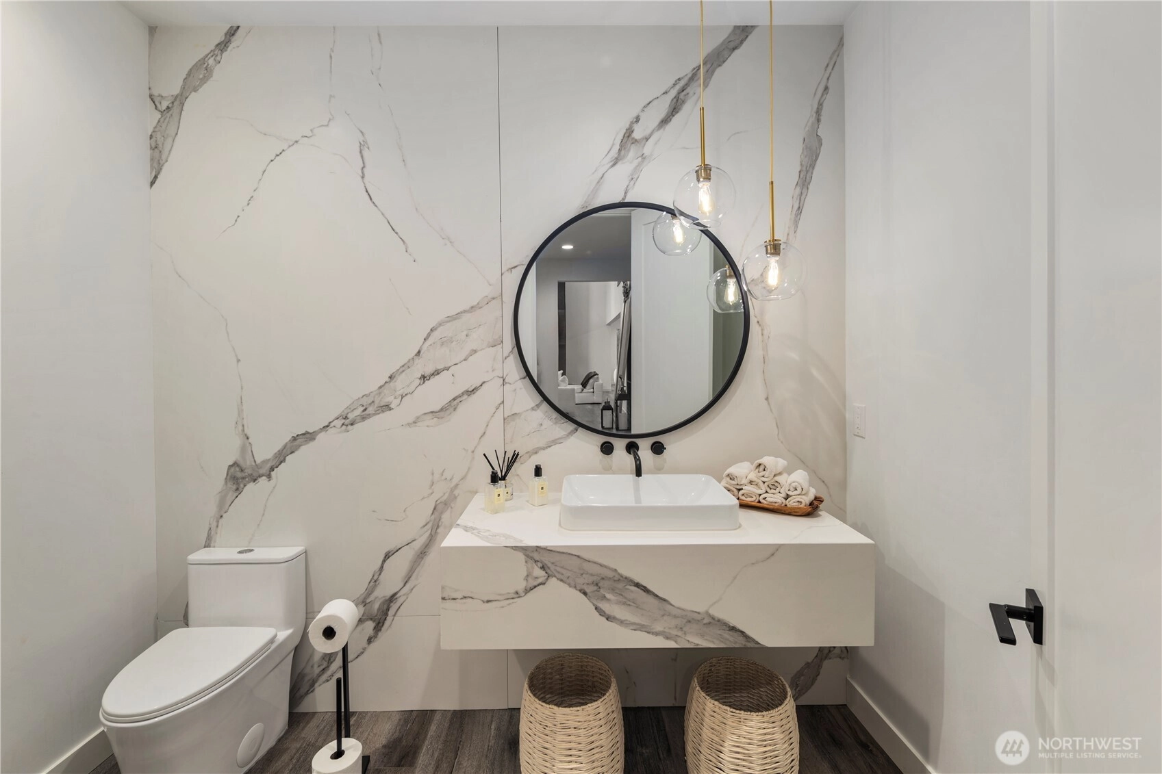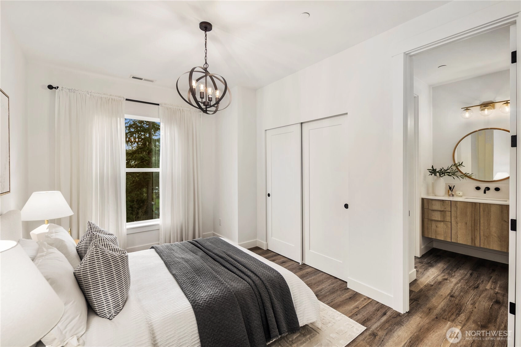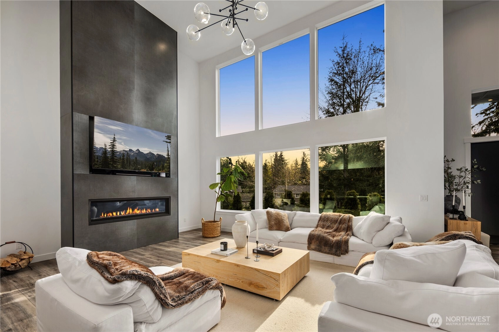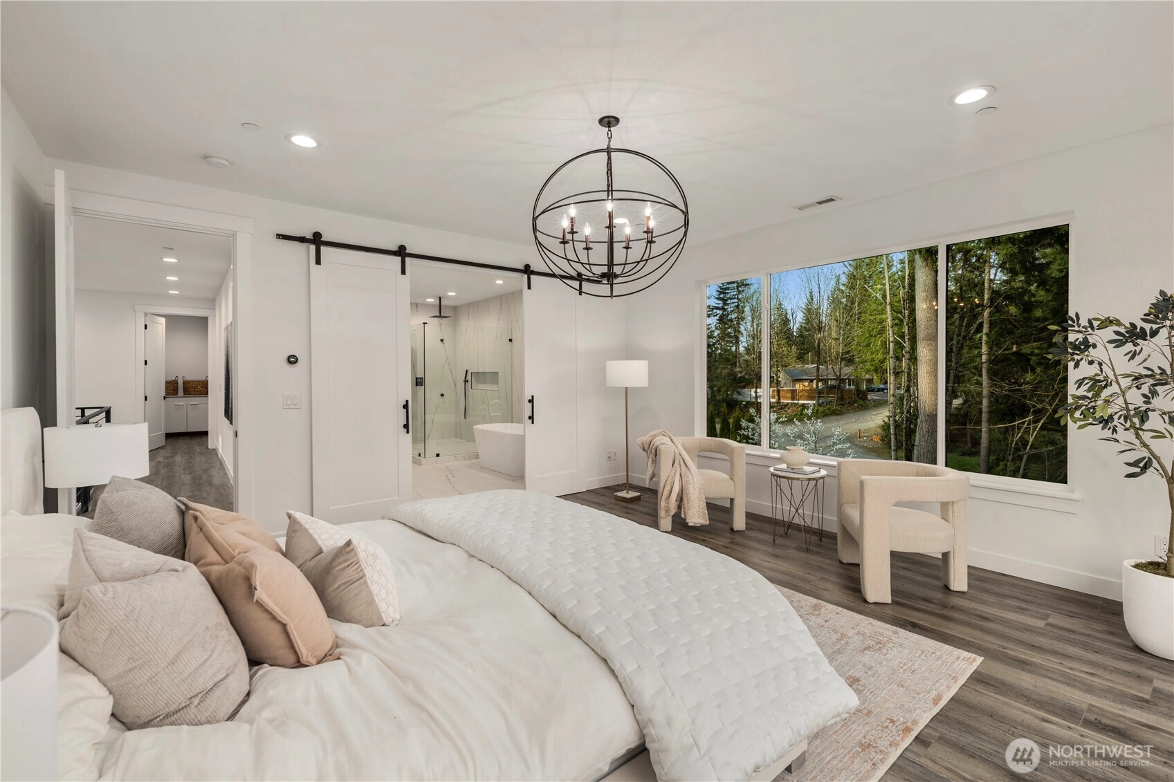 An extraordinary fusion of modern luxury and natural beauty, this 4,300 sqft Snoqualmie estate is a true sanctuary. Privately nestled on nearly an acre the home showcases soaring ceilings, a striking floating staircase, and exquisite designer finishes throughout. The custom European-inspired kitchen features sleek white cabinetry, state-of-the-art Miele appliances, and a dramatic 14’ waterfall island. Indulge in the spa-like primary suite with a double shower, soaking tub, and expansive walk-in closet. A main-level office, generous lower-level living space with separate entrance, and outdoor terraces, create a lifestyle of comfort and distinction. Effortless access to I-90, Bellevue, and award-winning schools. Timeless elegance, redefined.