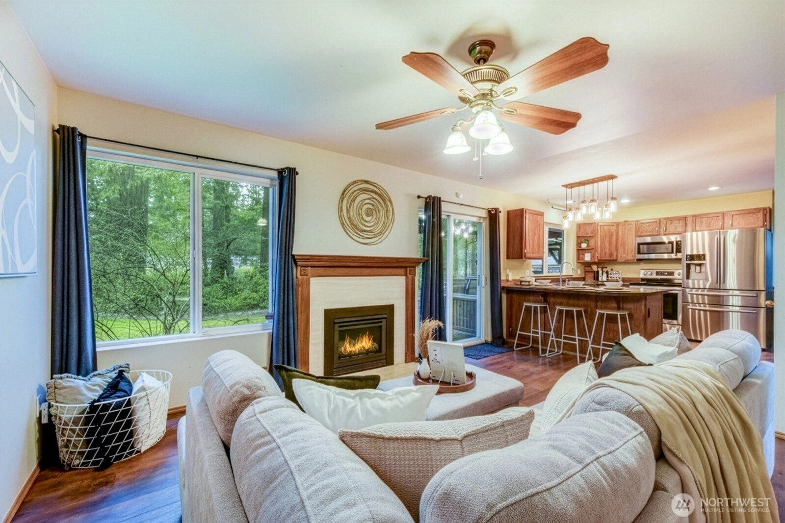 Tucked at the end of a quiet cul-de-sac, this home offers rare privacy, a large driveway & an expansive backyard that truly set it apart. The extended driveway provides abundant parking in addition to dedicated RV parking on one side & covered boat parking on the other. An oversized 2-car garage w/ bonus workshop area adds incredible flexibility for storage, hobbies or projects. Inside, the kitchen is designed for gathering, featuring granite countertops, SS appliances, generous bar seating & a bright breakfast nook for everyday dining. A dedicated dining room offers additional space for hosting & special occasions. Both the kitchen & living room overlook the private backyard, creating a bright, seamless indoor-outdoor connection. Durable wide-plank LVP flooring extends throughout the home, upstairs & downstairs, delivering a cohesive & modern look. A cozy gas fireplace adds warmth, while the dedicated home office is a standout feature for today’s work-from-home lifestyle. The spacious primary suite includes an ensuite bath & walk-in closet. Step outside to enjoy the large, private yard w/ open lawn, mature landscaping, berry bushes & a gazebo w/ firepit—ideal for entertaining or relaxing evenings. Fresh exterior paint & a recent roof enhance the home’s value & provide added peace of mind. Located in the Tahoma School District w/ no HOA, easy access to Hwy 18 & 169 & minutes to Costco.