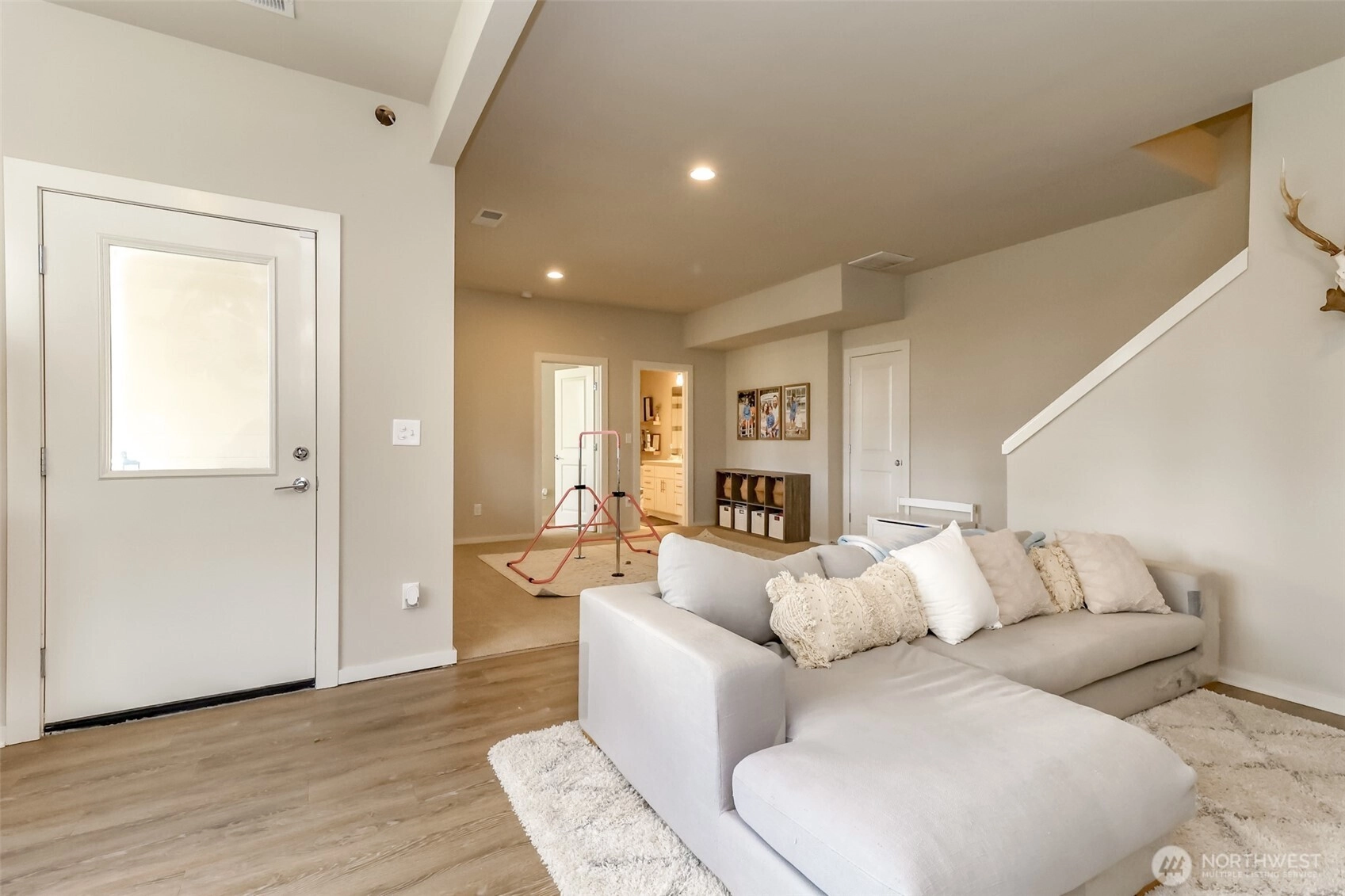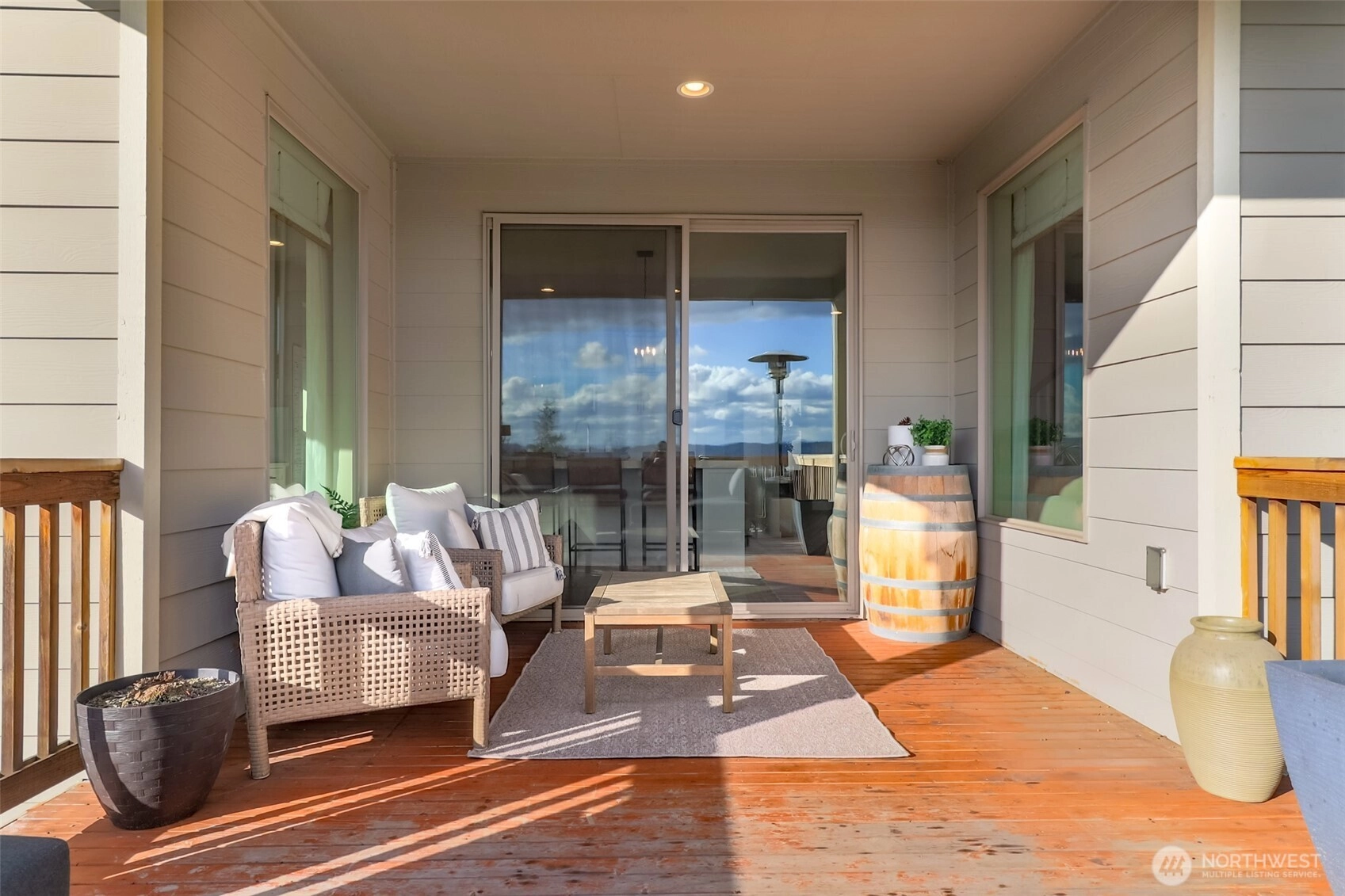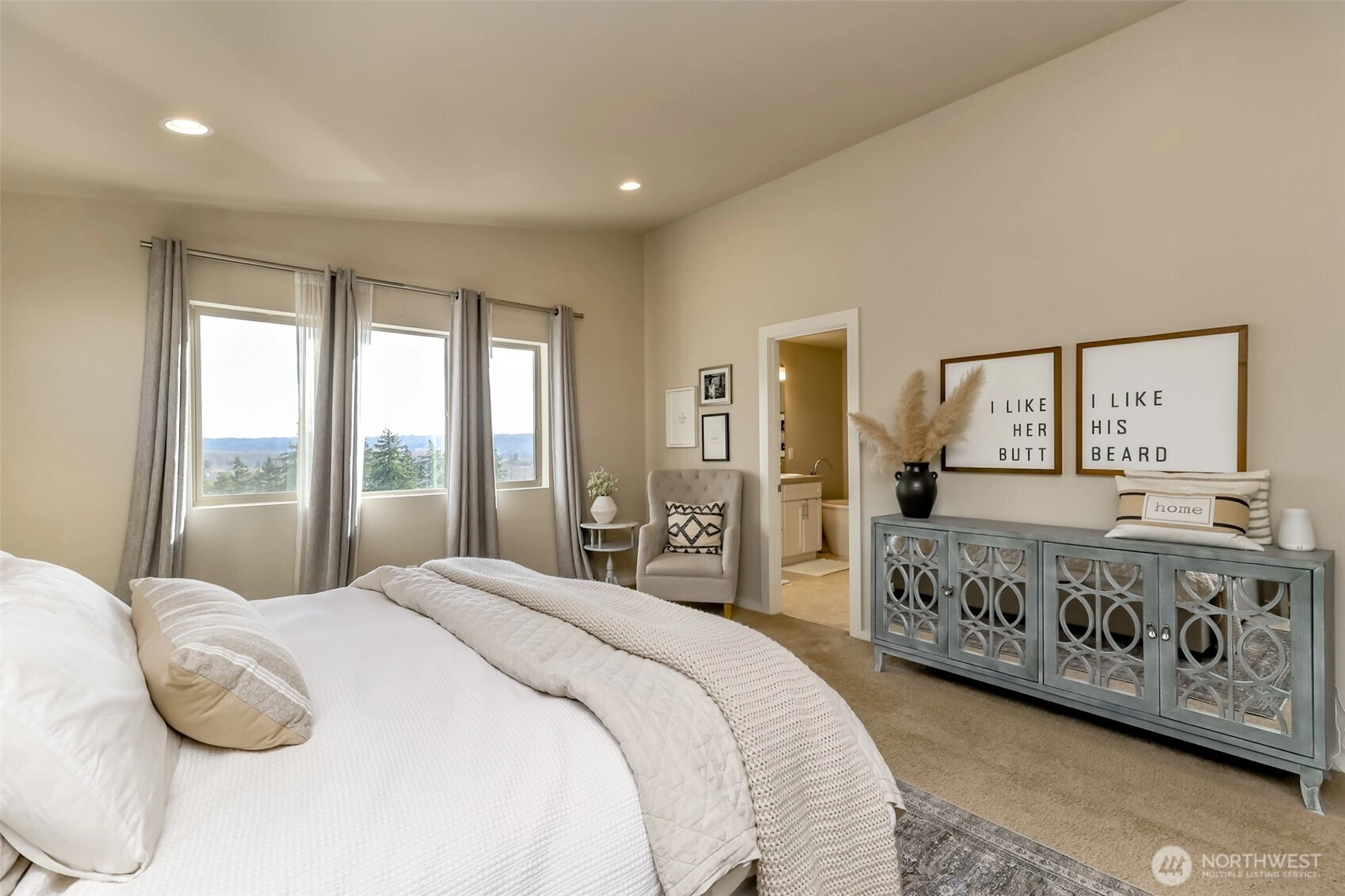 All square footage is not created equal. The offering of this exceptional Edgewood view residence delivers refined living across three fully finished levels. Thoughtfully designed for flexibility and elevated entertaining, the home blends luxury finishes with spaces ideal for multigenerational living. The main level showcases an open-concept kitchen, dining, living area and coffee bar designed for gathering and making memories. Complemented by a ¾ bath, mudroom, and private den or guest suite. Expansive outdoor living extends seamlessly from the interior, creating a true indoor-outdoor experience. Upstairs, the grand primary suite offers a retreat-like setting with a spa-inspired bath and generous proportions. Two additional oversized bedrooms, a full bath, and a spacious laundry room with utility sink provide both comfort and function. The lower-level lives as private quarters, featuring open living space, a full bedroom and bath, and a stunning covered stamped-concrete patio with outdoor gas fireplace—perfect for extended living, long-term guests, or private retreat space. Beautifully designed grounds provide privacy and tranquility. Sweeping views of the mountains, sound, and city are captured from every floor. High-end LVP, crisp white millwork, shiplap detailing, custom railing, clean white quartz, and designer ceramic tile reflect quality craftsmanship throughout.