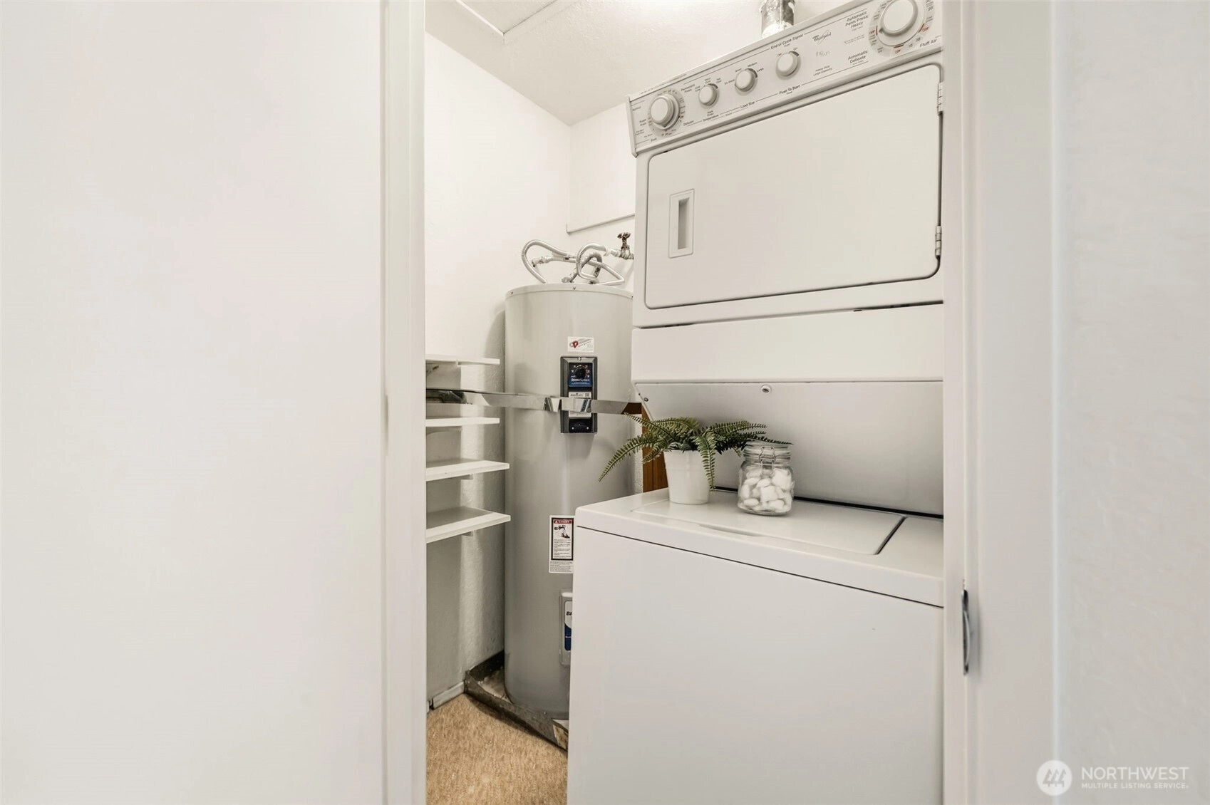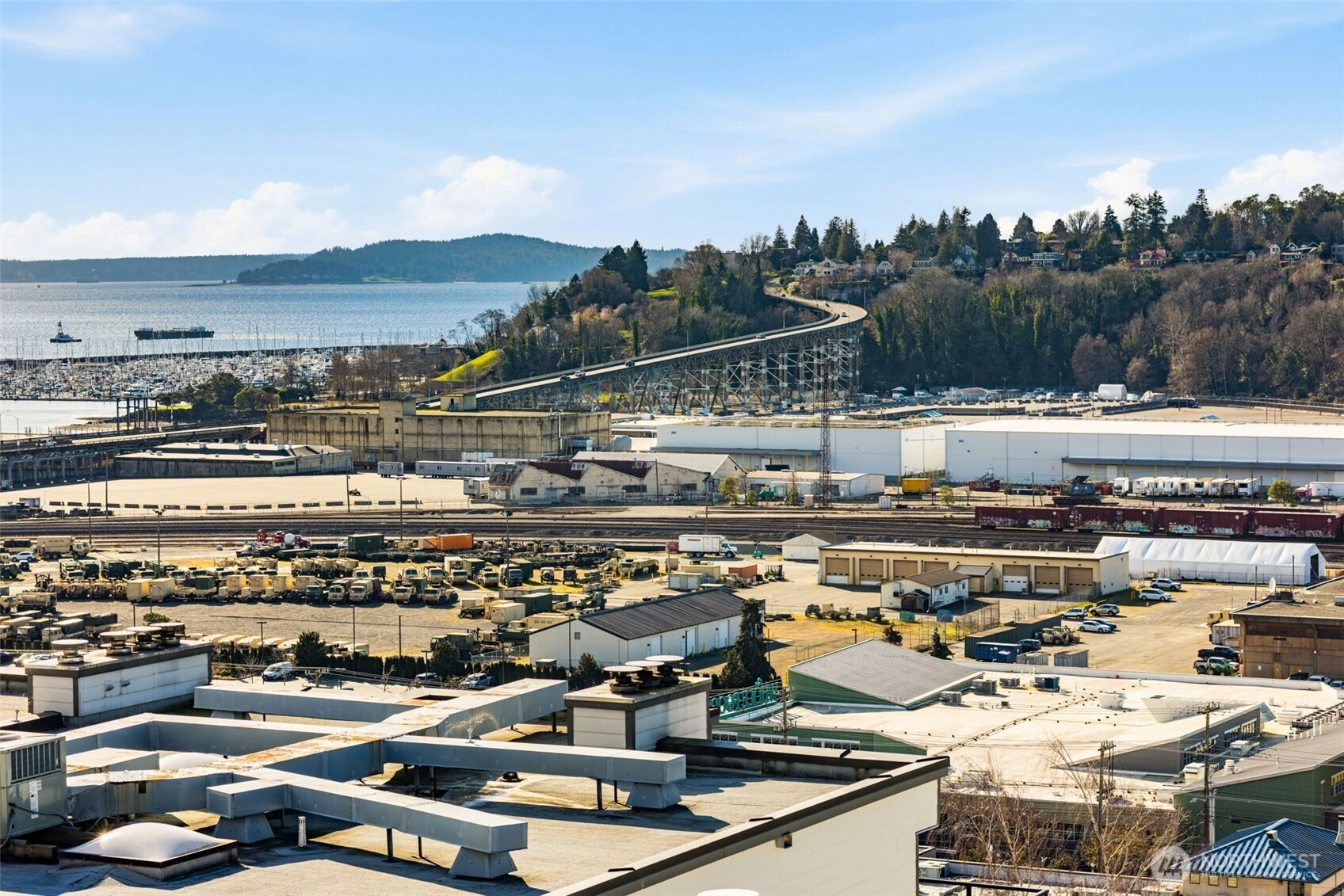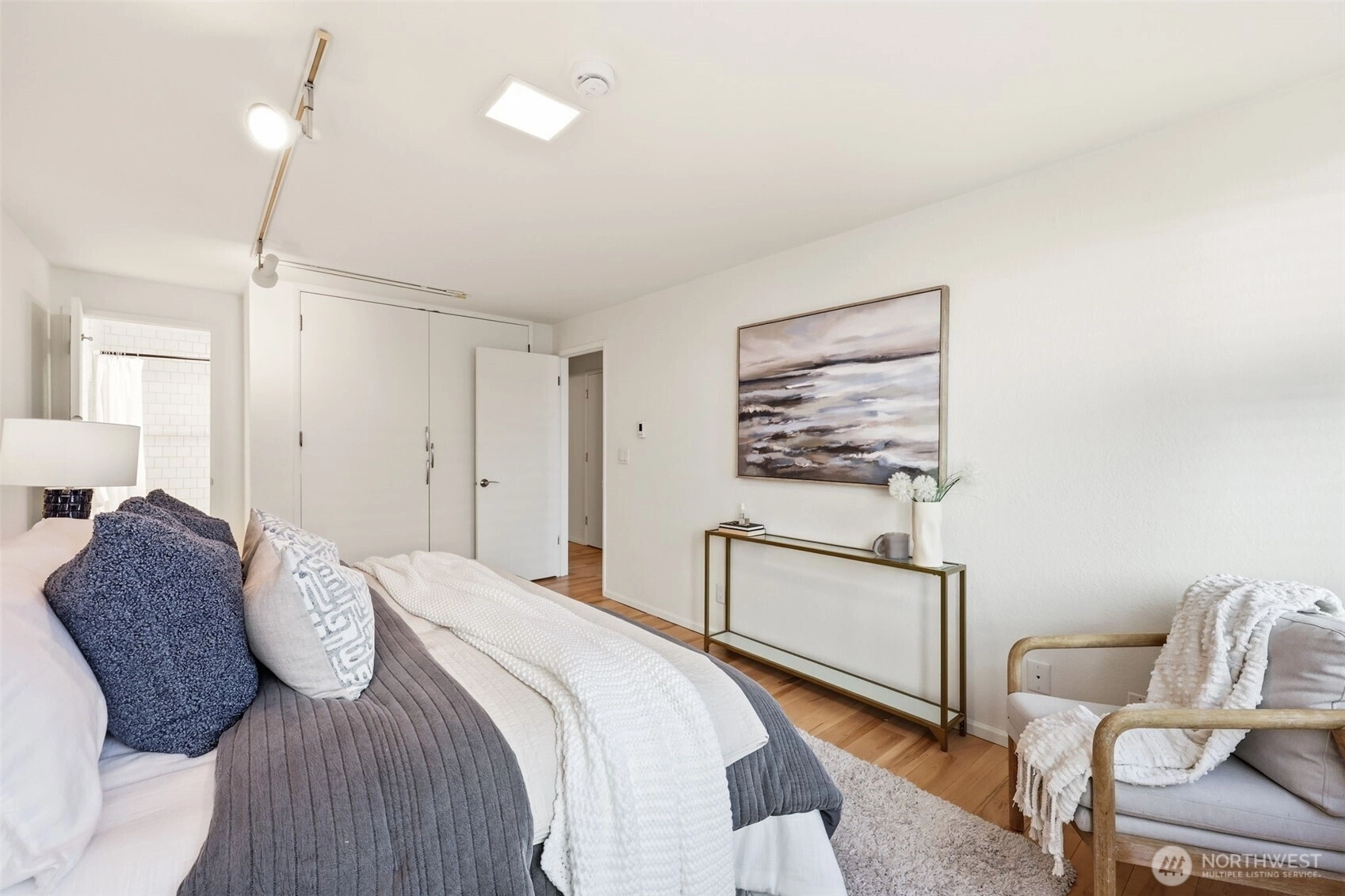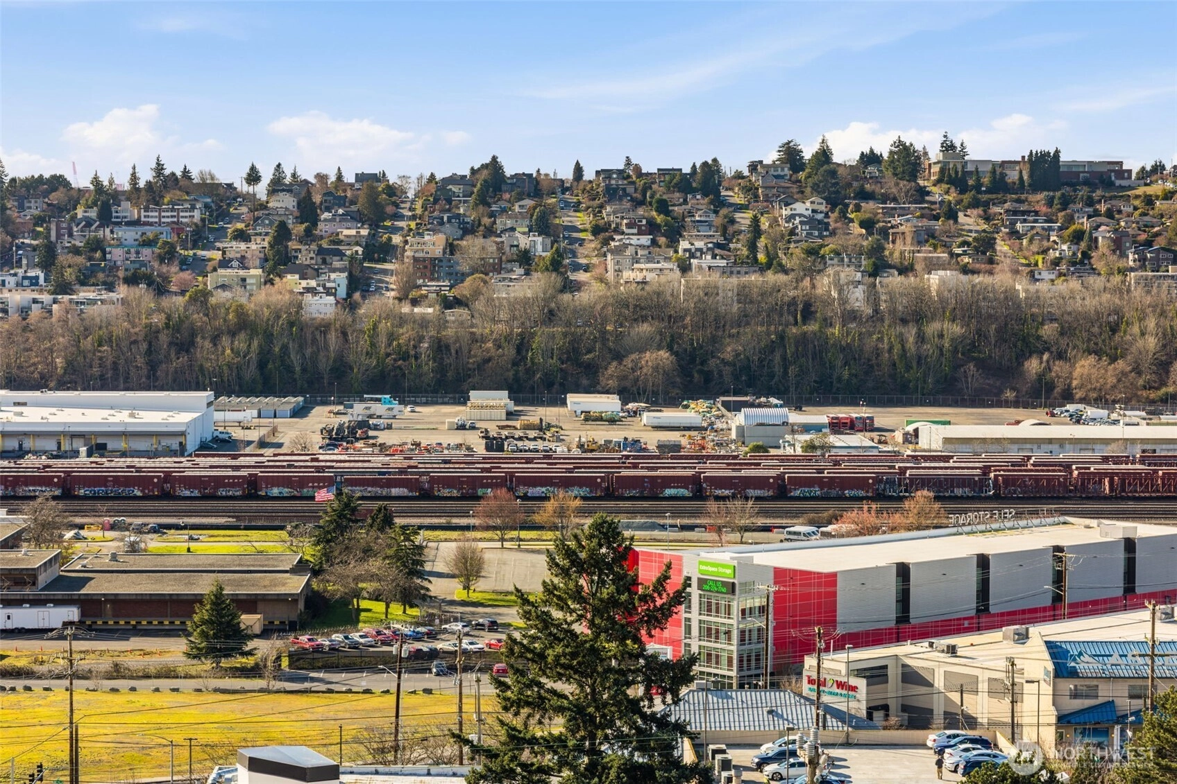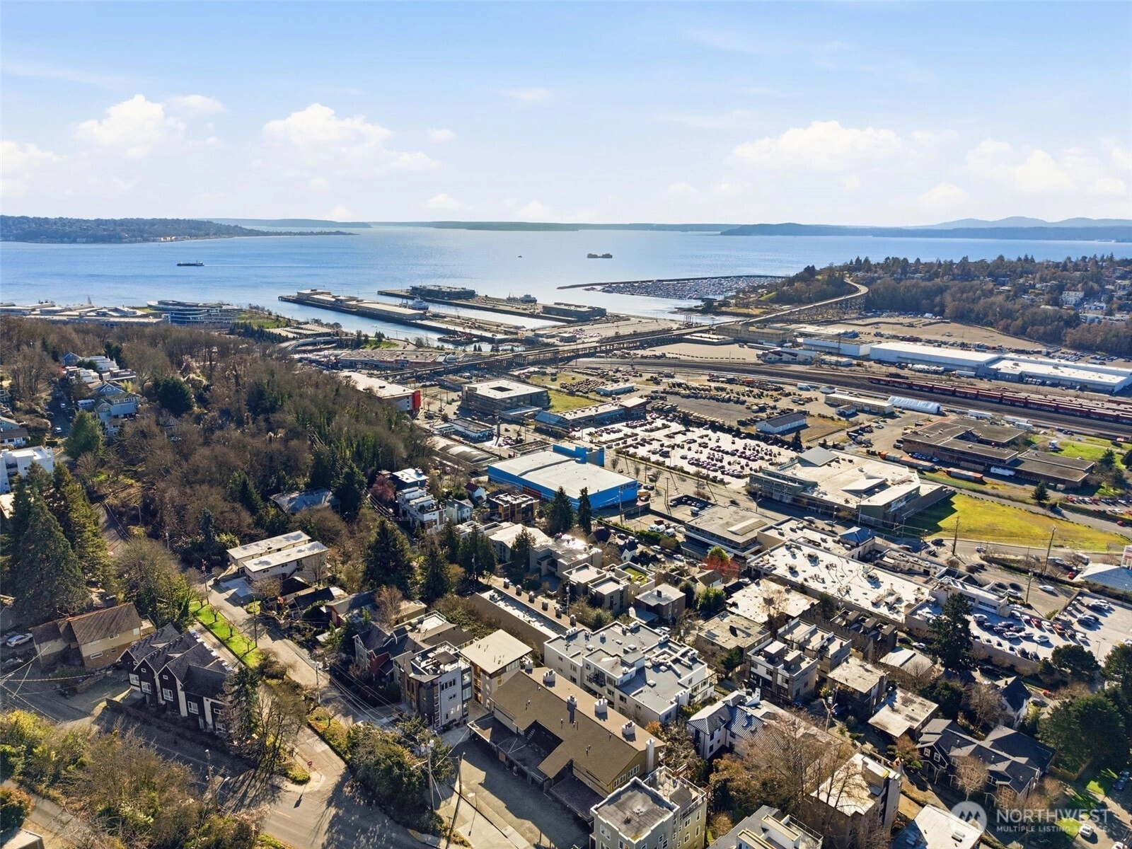 A rare opportunity to experience elevated living with abundant sun exposure and iconic views in the sought-after, West Queen Anne neighborhood. One of only two top-floor residences in the building with a vaulted ceiling; this 2 bedroom 1.75 bathroom condo features west facing windows that frame water and sky. Enjoy sweeping Elliott Bay and Magnolia Bridge views from the main living areas and expansive, private deck. Engineered maple hardwood floors flow throughout the interior, grounding each room with warmth and durability. The kitchen balances timeless cabinetry with newer quartz countertops, creating a functional space that looks both classic and refreshed. Corian window sills and wood louvered shutters enhance character and add privacy in the bedrooms. Each bathroom was thoughtfully remodeled with quality finishes and tasteful design. Comfort is enhanced year round with wood burning fireplace, two A/C units, King wall heaters and energy-efficient thermostat. In-unit laundry, assigned covered parking space and additional storage closet complete the package. Major building improvements including new siding, decks, windows (2018) and a new roof (2024) provide long-term peace of mind in this well managed, 12 unit HOA community. Conveniently located near Whole Foods, Ken’s Market, Interbay Golf and many great shops and restaurants. An incredible location offering easy access to Queen Anne, Interbay, Downtown Seattle and local transit.